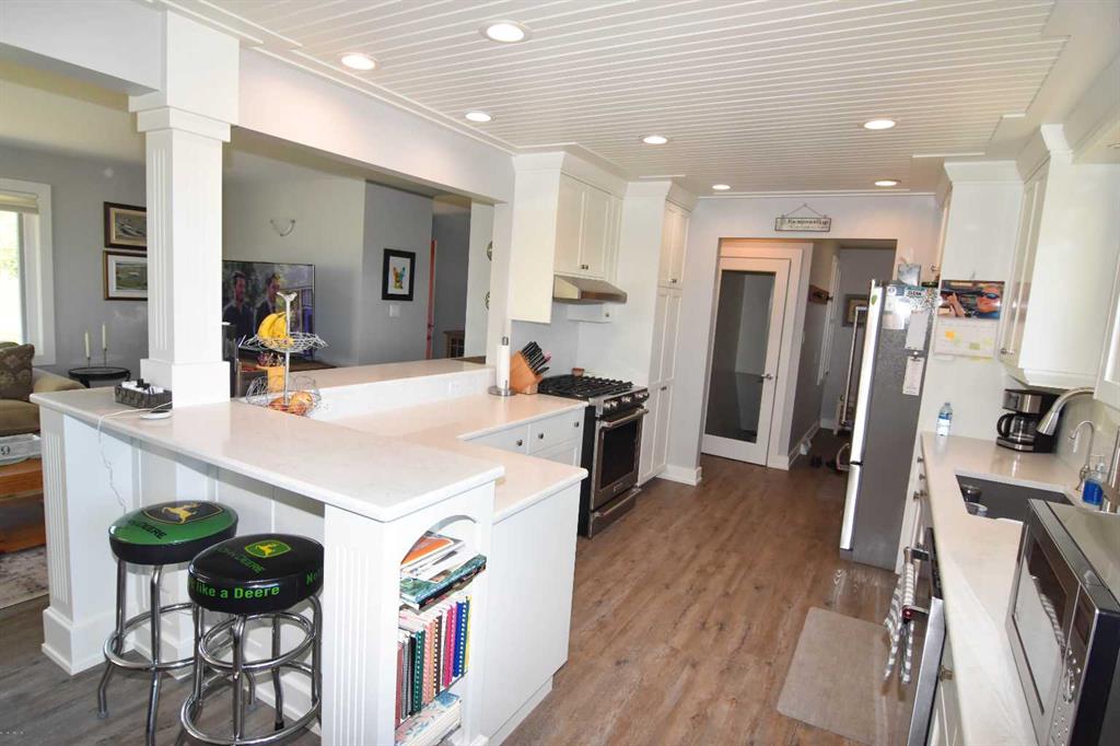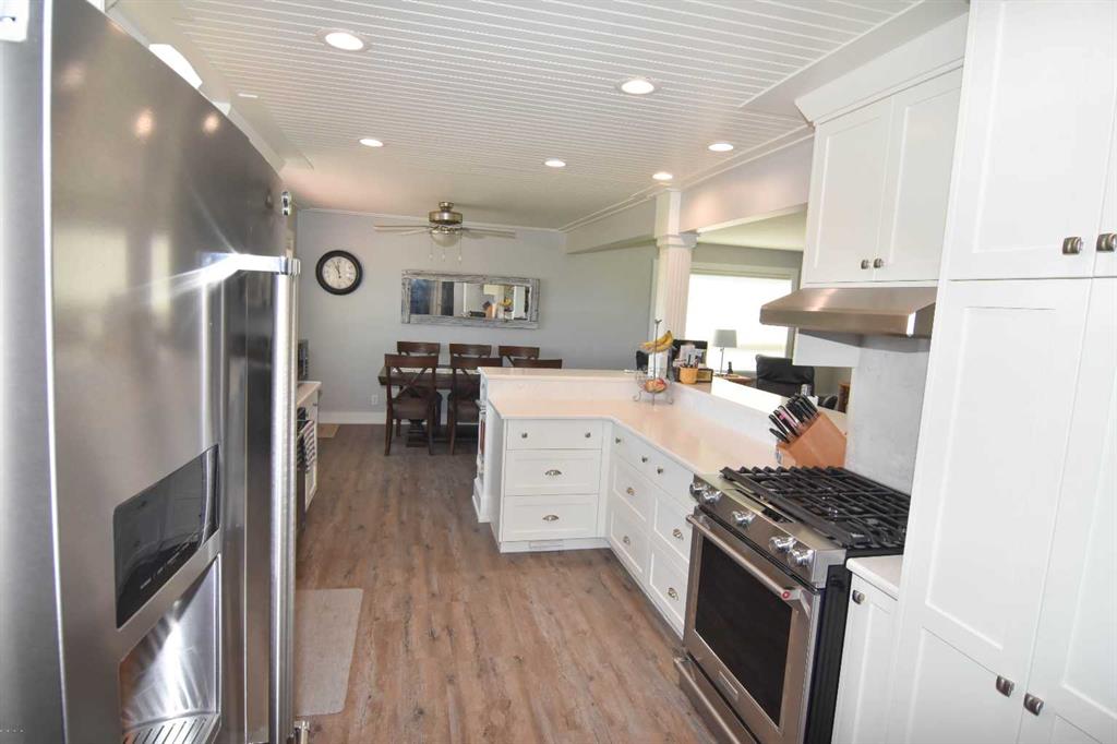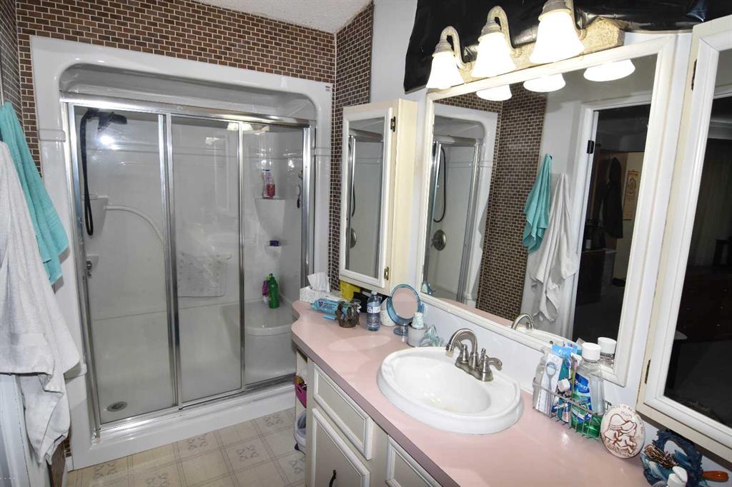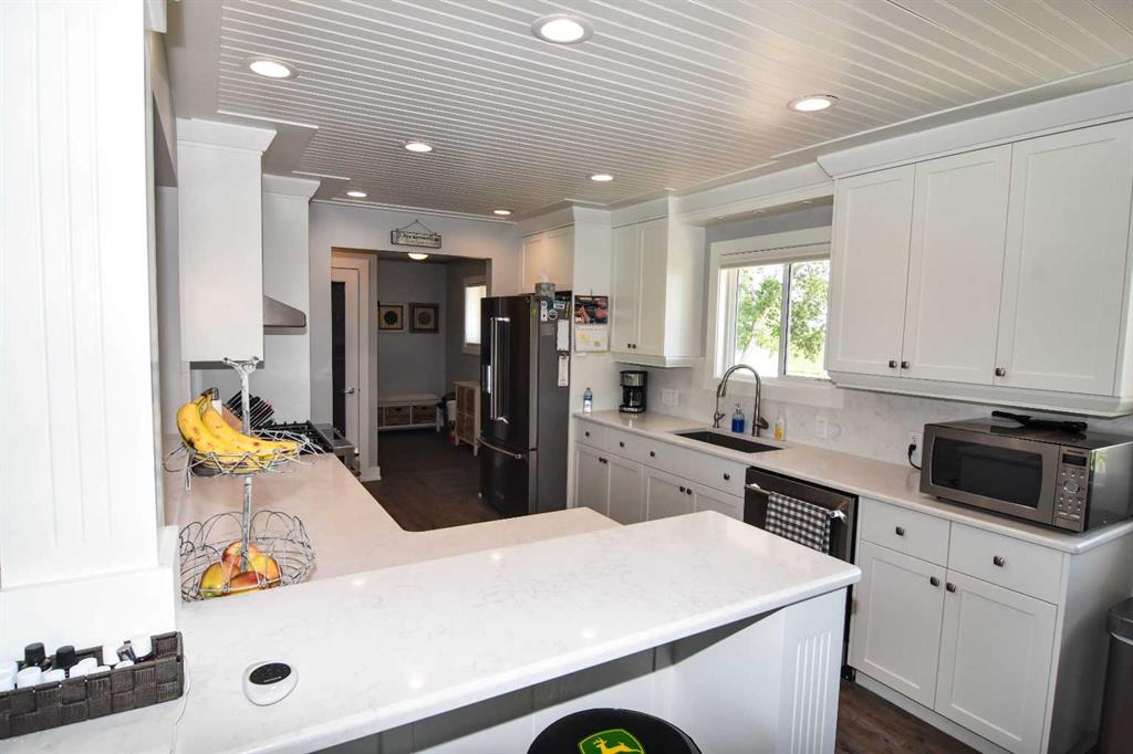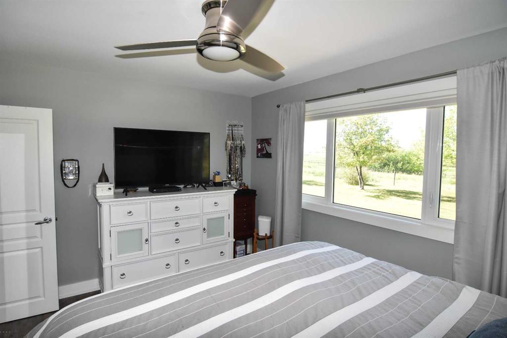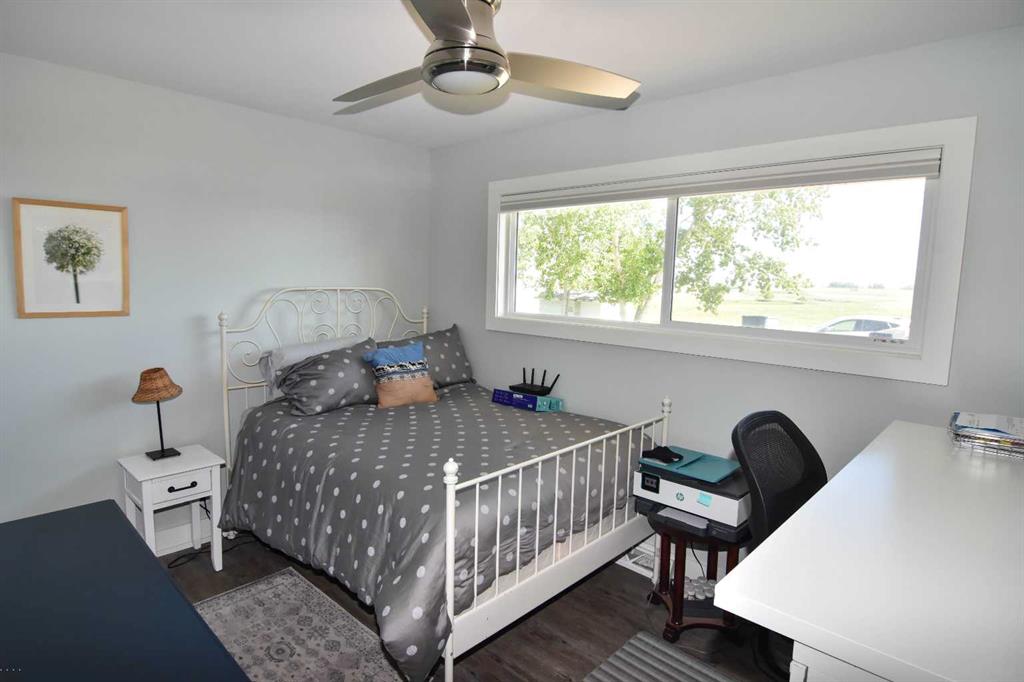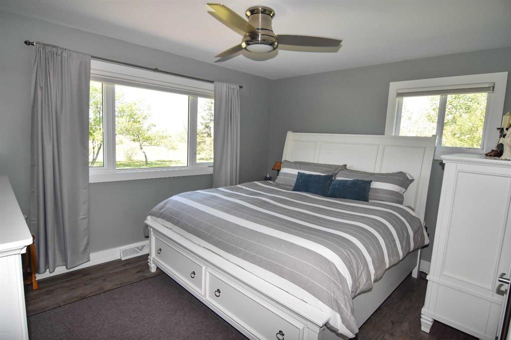DISCLOSURE: The five bedrooms and three bathrooms are shared between both homes. See RMS in the Documents Tab for floor plans and measurements of both homes: The main home has two bedrooms and one bathroom (plus one roughed-in bathroom in the basement). The modular home has three bedrooms and two bathrooms TWO-HOME ACREAGE WITH A LARGE SHOP, 10-MINS NE OF STRATHMORE. This 12.2-acre, well-treed, cross-fenced property features not one, but two homes and is ideal for horse lovers, with five rail-fenced pastures, two shelters, and two automatic stock waterers. Each home has its own private driveway with large trees separating the two homes for privacy, log gate entry. The main home is a recently renovated 2-bedroom, 1-bath bungalow with a bright open-concept kitchen/living/dining layout, featuring quartz countertops, stainless steel appliances (gas stove). The white custom kitchen cabinetry offers loads of storage with soft-close cupboards/drawers/pantry. Large windows allow for plenty of natural light. All main floor windows have remote open/close Hunter Douglas blinds. The basement has loads of potential, including a roughed-in bathroom. New central air (2025). Septic tank and furnace replaced (2024). Well pump replaced (2023). Main home has two decks (one large wrap-around deck in back and one smaller deck out front). Roof re-shingled (2021). The second home is a 3-bedroom, 2 full-bath modular home, perfect for rental income/mortgage helper OR making this a two-family property. Open-concept kitchen/living/dining layout. Includes fridge/stove/DW/WD and upright freezer. New hot water tank (2024).Roof re- shingled (2021). The modular home has three decks and a shed for additional storage or workshop. The large 40 x 80 x 20 shop has two 14-foot overhead doors and two man-doors. The shop sits on cement pony walls and is roughed-in with plumbing for water/sewer. The shop also has a 30-amp RV plug-in, numerous overhead lights and plenty of electrical outlets. Lightning protection is installed on the roof. Beside the shop are two sheds and a hitching post, ideal for a tack room or convert one shed to a chicken coop.