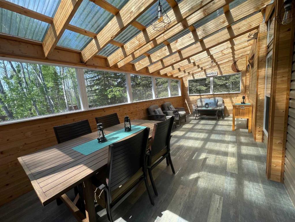 Cute as a Button…. and so much more... This stunning property is nestled in a private setting just a short walk from the lake. Located in the nice quiet secluded Hutch Lake Cottage area, only a 25 minute drive north of High Level. Boasting a beautiful, new to you All Season Park Model awaits your arrival. One comfortable oversized primary bedroom offers enough space that it is home to a King Size bed. Tucked away in a closet is where you will find a stackable washer/dryer. The main bathroom offers extra storage space and comes complete with a walk in shower. The open floor plan is home to a combined kitchen, dining area with the living room close by. Beautiful bright windows surrounds this home. Imagine enjoying those hot summers evenings and bug free environment in a screened in porch/addition that welcomes you into this "Prestige Property".... WOW... How Glamping has changed over the years. This is a Steal of a Deal, So don't let this one pass you by, all you need to do is grab groceries and your suit case and "Move Right" in.