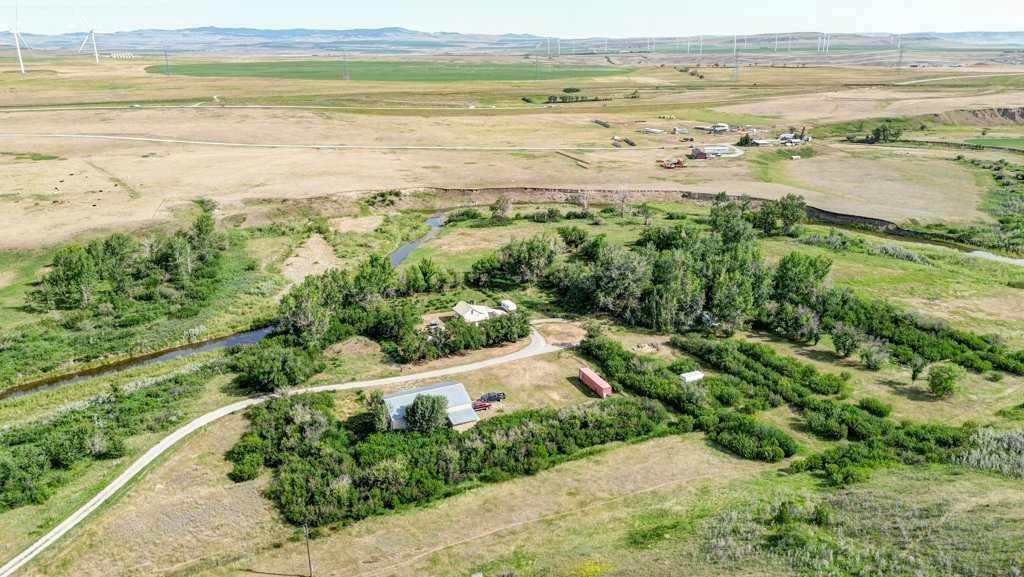 Welcome to the MD of Pincher Creek where you will find this beautiful 32 acre Pincher Creek front property located just minutes east of town. The 100 year old farmhouse offers abundant character from the wood beams in the living room to the hardwood floor and original window & door trim. The natural gas fireplace located in the open dining/living room has a red stone front that was sourced from Red Rock Canyon in Waterton. The country kitchen is warm and inviting compliments of the wood burning stove. There is a 4 piece bathroom/laundry on the main floor along with the primary bedroom. The front entry sun room with southern exposure is the perfect place to relax with a book and to start and grow garden veg and flowers. The upper level offers 1 bedroom and a small family room that could be a third bedroom. Private and tucked out of the wind this 32 acre parcel offers plenty of possibilities for agriculture, animals or just for private enjoyment. Plenty of room for friends and family to visit with their RV's. The 58'X38' shop with 2 overhead doors offers multiple possibilities as well. The gas line and water line are adjacent to the shop and can easily be connected. Close to town, minimal distance on gravel, creek and privacy. What more could you ask for in a country property!