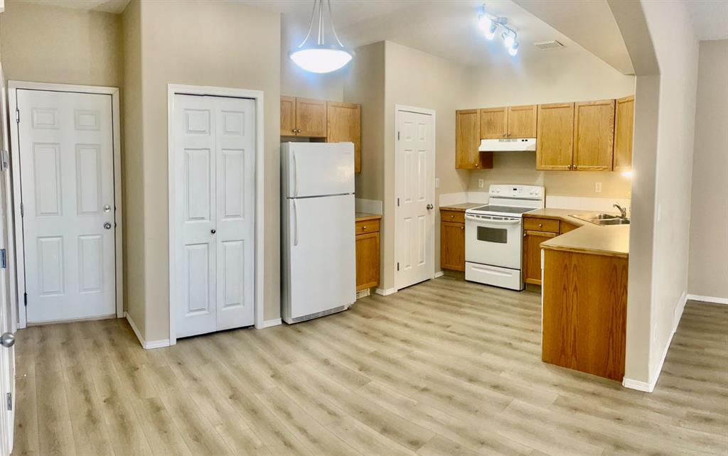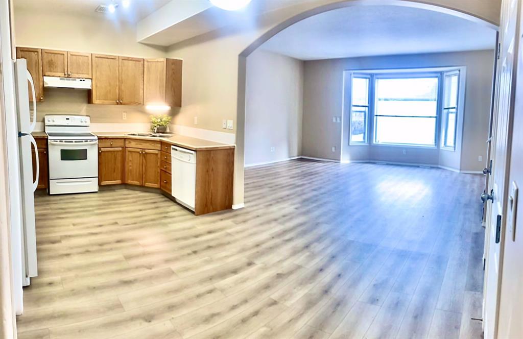 NEWLY RENOVATED END UNIT with brand-new flooring throughout. This charming 3-bedroom, 3-bath home is located in the desirable Sylvan Lake, close to schools and everyday amenities—an excellent option for first-time buyers or investors. The main floor offers a spacious living area, convenient half bath, and a functional kitchen with ample cabinetry and a large pantry. Added value includes a double garage and a practical layout for everyday living.
