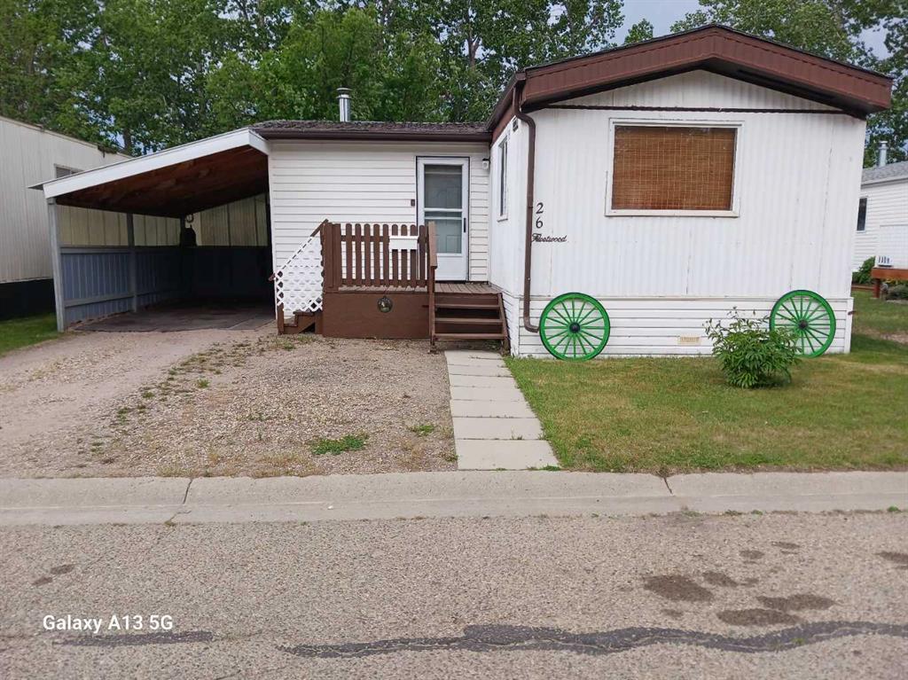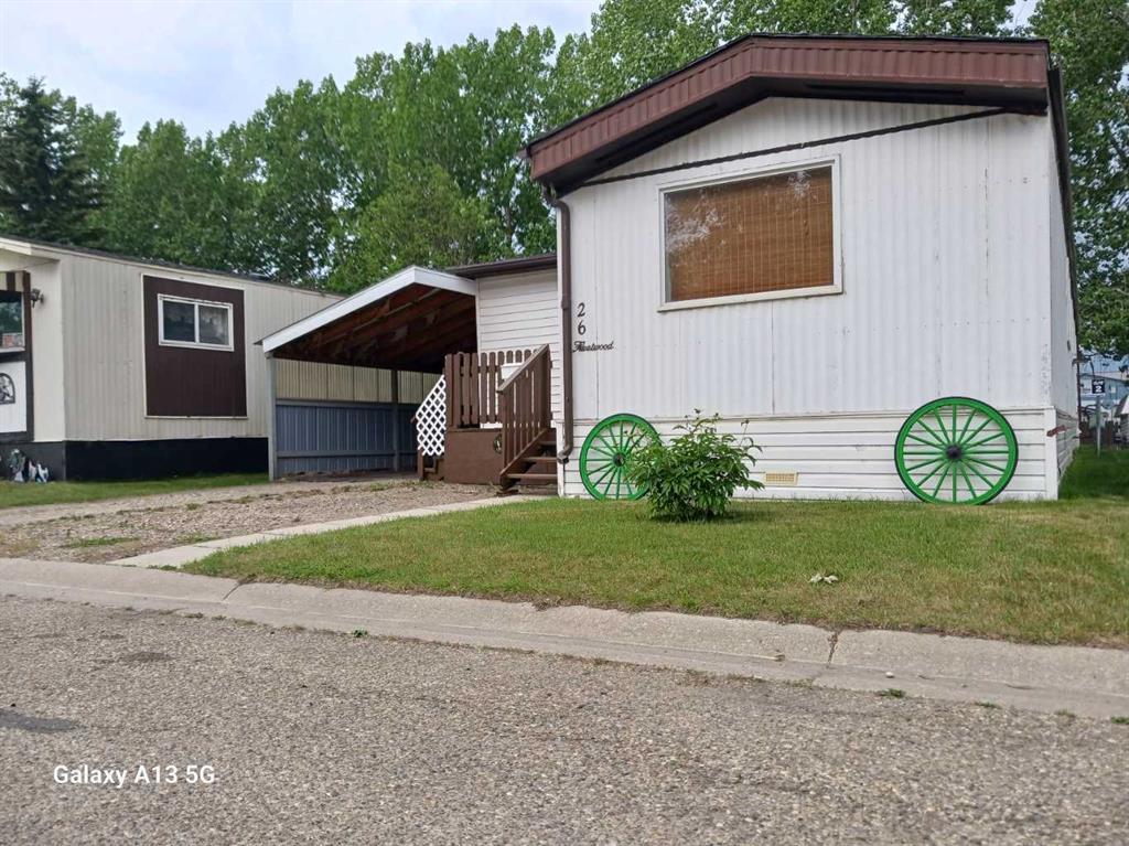 Big value with even bigger potential. A 1978 Fleetwood mobile home in Westwood manufactured mobile home park. The mobile home measured up to be 14'x66' , solid, clean, well built addition with wood burning stove measured up to be 16'x12', east facing front, freshly painted deck is 8'x8', back deck facing south west is 12'6"x 11'6", carport measured up to be 19'4"x 9'10", back porch measured 11'x8", garden shed #1 is 12'x8', garden shed #2 is 10'x8', 3rd garden shed is oddly cool and round. Newer refrigerator, newer stove, newer washing machine, newer stick and peel linoleum in kitchen, living room has carpet. The primary bedroom offers a cheater door to a 4 piece bath, bedroom #2 has it's own 3 piece ensuite and most windows upgraded over the years to a vinyl window. If you're looking for affortable living that has a little extra square footage and you get a carport, numerous sheds, 2 decks, fenced yard and the wonderful small town feel of Innisfail, Alberta, then you should look at this home. Home needs shingles, pet friendly park with park approval. Seller is in a great position to accomodate a buyer's quick possession. Current pad rent will be approximately $765/month and includes garbage, sewer, water, park care and upkeep. Home is ideal for young peoples starting out, perfect place to retire or if you just need to bounce into a new atmosphere with new surroundings this might be where you want to be.