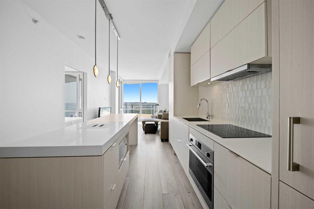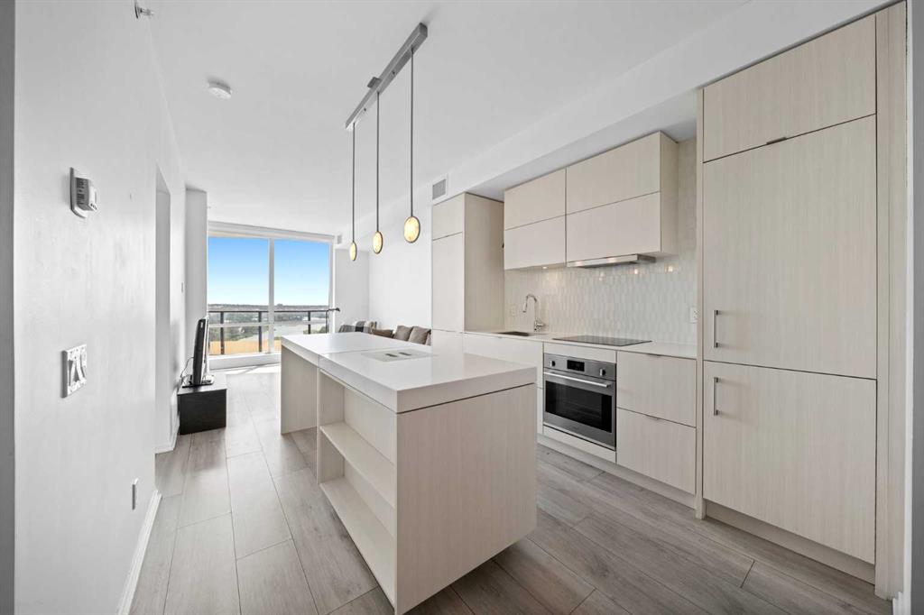 Unobstructed Bow River Views • High-Floor Privacy • Fully Enclosed Den (Fits Bed) • $412,000 City Assessment + $37K Titled Underground Parking Assessment for 2025 Rising 20 floors above the river, this East-facing 1 Bedroom + fully enclosed Den delivers the panorama, light, and lifestyle that define East Village living at its best. From sunrise over the Bow River to the downtown skyline glowing at night, every room frames a sweeping, uninterrupted view, no towers to block it. Inside, the layout is one of Verve’s most functional: an enclosed Den with a sliding door that works as a true office or comfortably fits a twin bed, offering rare versatility for guests, hybrid work, or extra income potential. The modern kitchen features quartz countertops, stainless steel appliances, and a large island with seating. Floor-to-ceiling windows maximize natural light, while central A/C, in-suite laundry, and a private balcony add everyday comfort. This home also comes with titled underground heated parking and a separate storage locker, adding everyday convenience and long-term value. Residents enjoy access to Verve’s premium amenities: • Sky Lounge & Rooftop Observation Deck (25th Floor) • 6th-floor indoor lounge with fireplace, games & full kitchen • Landscaped outdoor terrace with BBQs & firepit • Modern fitness studio • Bookable guest suites • Concierge, security, visitor parking & bike storage The location is unmatched. Steps to the RiverWalk, Central Library, Studio Bell, Superstore, cafés, the CTrain (within the free-fare zone), and East Village’s growing dining scene. An off-leash dog park is less than 200m away. For investors, recent high-floor one-bedroom leases at $1,850–$2,100/month demonstrate strong rental demand. For end users, limited high-floor inventory makes this home a rare chance to secure a river-facing residence in one of Calgary's fastest-evolving neighbourhoods. A lifestyle upgrade, an investment advantage, and a view you will never forget—welcome to Verve.