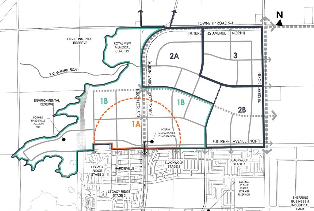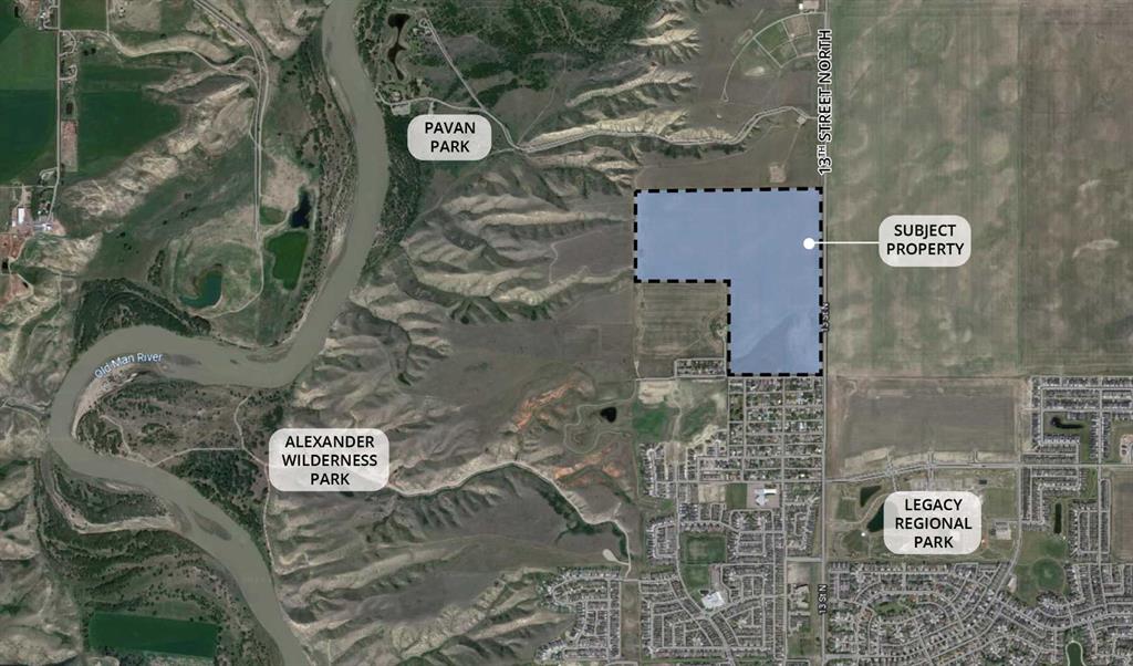 The Royal View ASP area is located on the north side of the City of Lethbridge. It includes the lands bounded to the north by the future 62nd Avenue North (Lethbridge boundary), to the south by the future 44th Avenue North, to the east by 28th Street North, and to the west by the Oldman River tributary coulees. Neighbouring communities, such as BlackWolf, are currently being developed along with a regional park. Key infrastructure will be coordinated with these developments including 44th Avenue road alignment, major power distribution and storm water management. This future residential development land is included in the Royal View Area Structure Plan (ASP). The ASP is based on a vision that embraces quality, innovation, and sustainability to instill connectivity within the community and its natural surroundings. The site is located near residential amenities including Legacy Gate Centre, Uplands Common Shopping Centre, and Wal Mart Supercentre as well as recreational areas such as the Alexander Wildness Park, Lethbridge Sports Park, and Legacy Park.