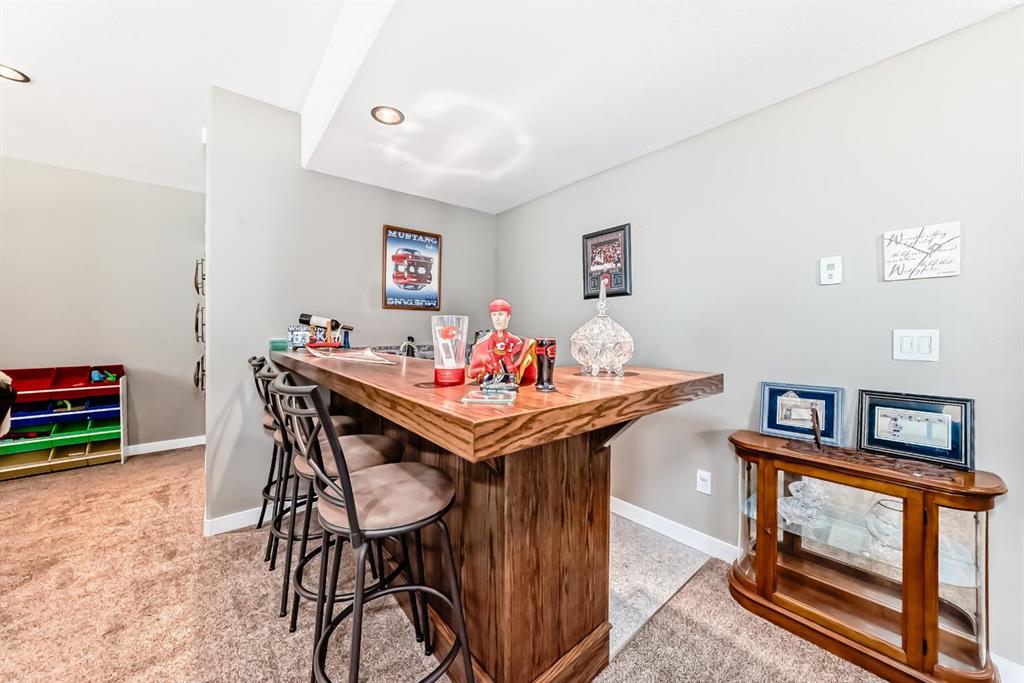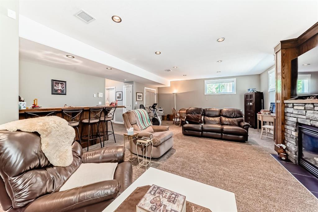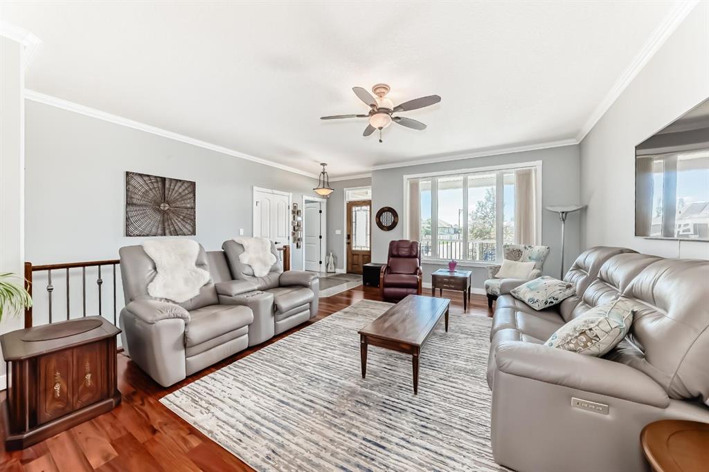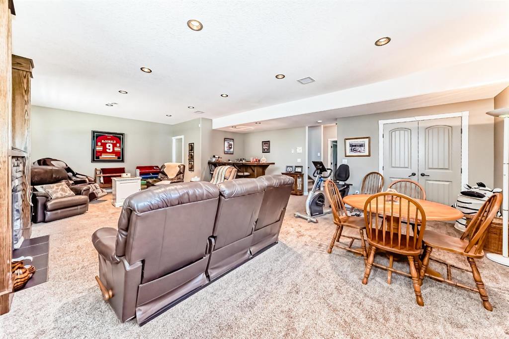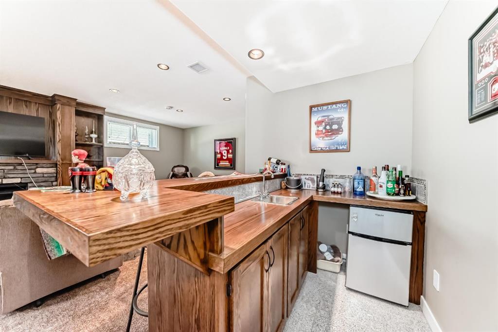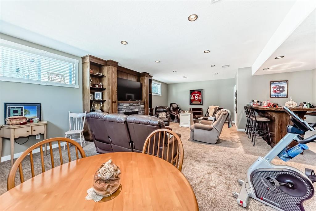 Gorgeous Bungalow on Winter Drive In the Town of Olds. This beautifully maintained home offers the perfect blend of style, space, and comfort. The bright, open entry leads to a functional mudroom/laundry area and an 25 x 26 sq.ft attached double garage. The open-concept main floor is ideal for entertaining, featuring a cozy living room with clear sight lines to the kitchen and dining area. The kitchen is a chef’s dream with stainless steel appliances, granite countertops, large center island with eating bar, rich mocha cabinetry and ample counter space. French doors off the dining area open to a spacious covered deck—perfect for year-round enjoyment. The main level includes a 4 pce bathroom, a versatile bedroom or office and a generous primary suite with a walk-in closet and 5 pce ensuite featuring double vanity, jetted tub and separate shower. The fully finished basement boasts a large family room with custom built-in shelving, fireplace, a wet bar, two additional bedrooms and another 4 pce bathroom. Enjoy in-floor heating during the colder months and central A/C in the summer. The fully fenced and landscaped yard includes a garden shed and a large covered deck. Located in a quiet, family-friendly neighborhood close to schools, shopping, and walking paths. Book your private showing today!!