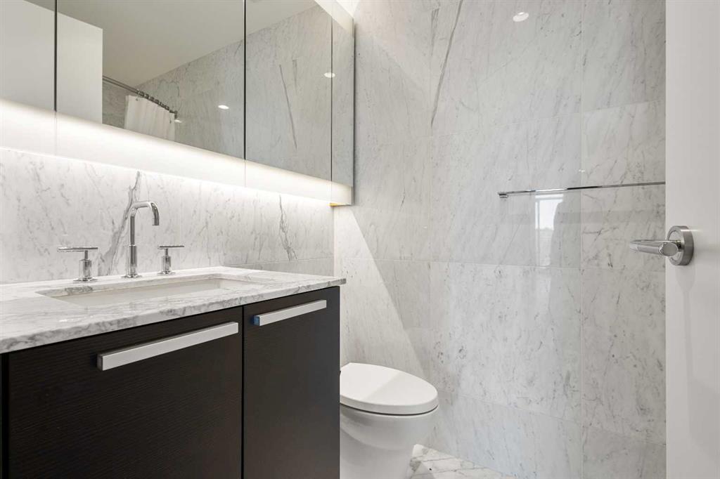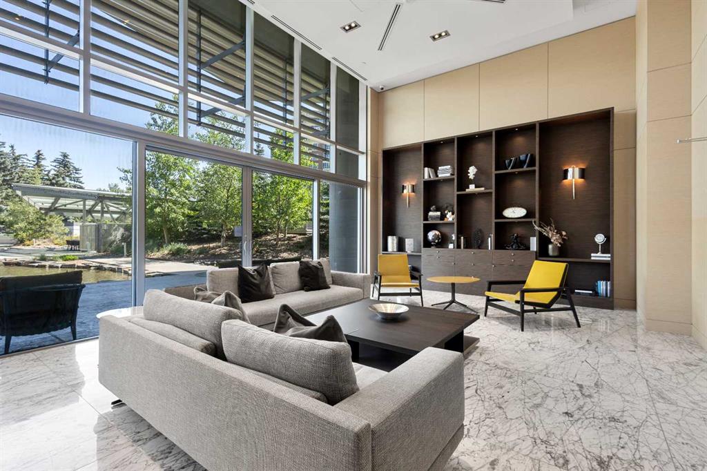 Welcome to The Concord – Calgary’s pinnacle of luxury living, perfectly situated along the Bow River, beside the Peace Bridge and Prince’s Island Park. This iconic residence sets a new standard for refinement, sophistication, and lifestyle. Arrive in style through the secure underground parkade, where your vehicle is pampered with a private wash before settling into your titled, fully upgraded 2-car private garage featuring custom cabinetry, epoxy floors, EV connection, and Wi-Fi connectivity. Take your private elevator directly to your riverfront unit, where floor-to-ceiling windows frame captivating Bow River views. The open-concept living area is adorned with wide-plank hardwood floors, timeless wainscoting, and elegant wallpaper, centered by a sleek gas fireplace. The chef-inspired Poggenpohl kitchen features Bianco Statuario marble, Miele appliances, and an oversized fridge—seamlessly blending into the spacious living and dining area. Step onto the oversized balcony for breathtaking park and river views. The master bedroom offers panoramic views, a custom Poliform walk-through closet, and a spa-inspired ensuite with a 66” freestanding tub, 10mm glass shower, double vanity, and in-floor heating. A second bedroom, marble-clad main bath with soaker tub, and a glass-enclosed den complete the thoughtful layout. Smart home automation, Control4 system, motorized blinds, built-in speakers, security cameras, and designer lighting offer effortless comfort and peace of mind. Exclusive Concord amenities include: Private winter skating rink with Zamboni; Outdoor kitchen with BBQ & firepits; Social lounge with full bar & kitchen; Guest suite; 24-hour concierge; Gym + yoga studio; Car wash bays. Experience riverside luxury living redefined - book your viewing today!
