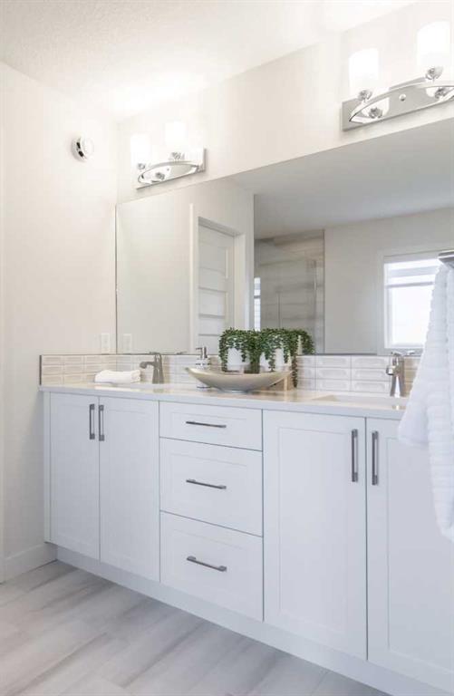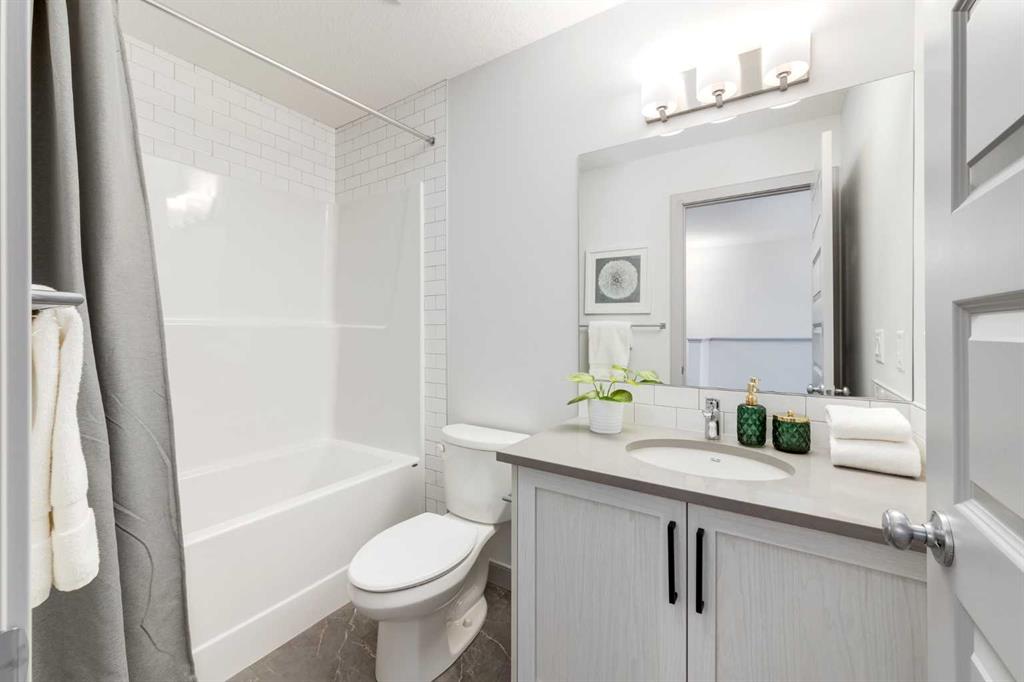 Immediate possession! Built by Calgary and area builder Alliston at Home, this standout 3- bedroom, 2.5-bath beauty sits in the heart of Crossfield’s sought-after Iron Landing community—just steps from Veterans Peace Park and within walking distance to Crossfield Elementary and W.G. Murdoch Schools. Welcome to your next home—a beautifully designed space where comfort meets style! Step inside and be wowed by the bright, open layout. The living room is full of natural light thanks to large windows and a stunning open-to-above feature. Sleek upgraded railings and durable vinyl plank flooring give the space a fresh, modern vibe that’s easy to maintain. The kitchen is a showstopper—complete with stainless steel Whirlpool appliances, quartz countertops, an integrated kitchen island, and plenty of crisp white cabinetry. Whether you’re cooking for the family or entertaining friends, this space is as functional as it is beautiful. The connected dining area flows right out to a large backyard—perfect for summer BBQs and outdoor hangs. Upstairs, you’ll find three bedrooms and a versatile bonus room—ideal for a playroom, office, or chill zone. The spacious primary suite features a walk-in closet and a luxe ensuite with dual sinks, quartz counters, and a three-wall tiled walk-in shower. Two additional bedrooms share a stylish 3-piece bathroom—great for growing families or hosting guests. The unfinished basement is full of potential, with a side entrance, rough-ins for a bathroom, wet bar, and secondary laundry—ideal for a future legal suite (pending town approval). Enjoy sunny days in your south-facing backyard or get your hands dirty in the garden. The front yard landscaping comes with a tree from the developer—just one more thoughtful detail that makes this house special and ready to call home. With a double attached garage for all your parking and storage needs, this home truly has it all. It’s the perfect blend of space, style, and suburban serenity—just ten minutes outside the city. Photos are representative.