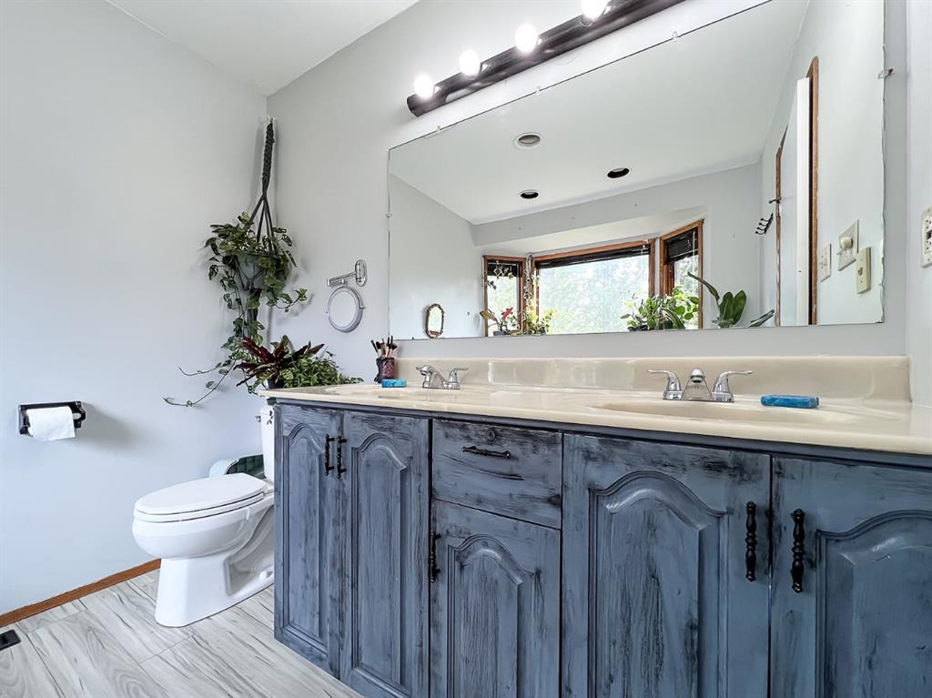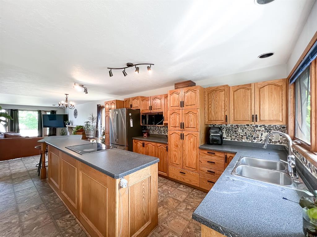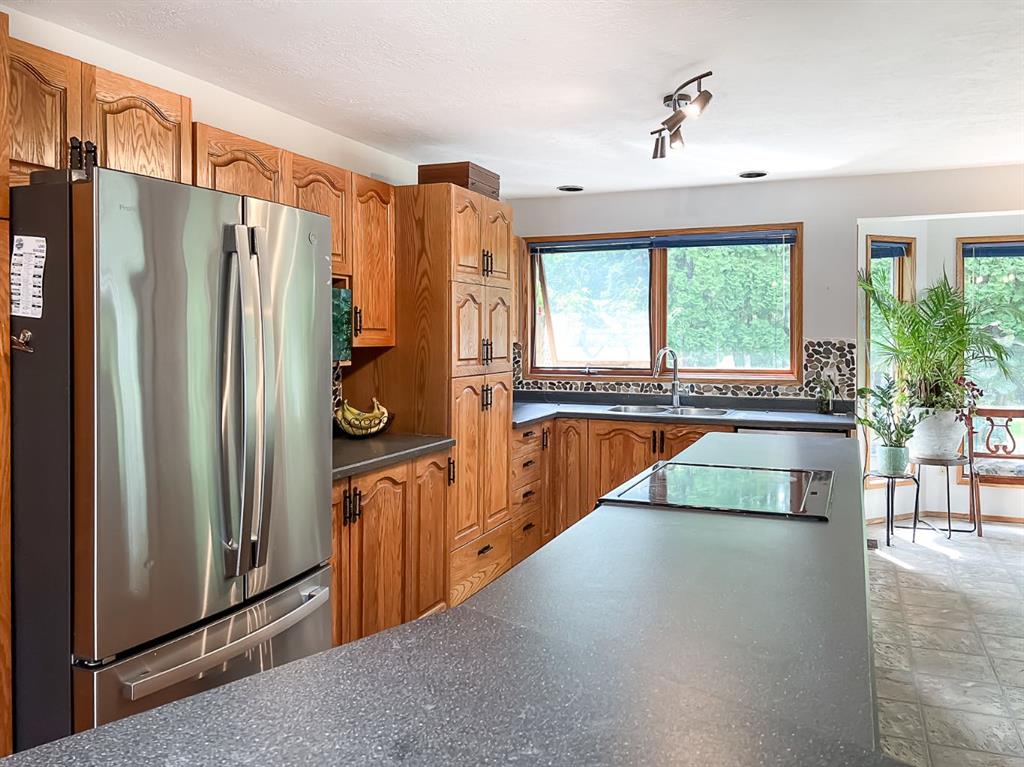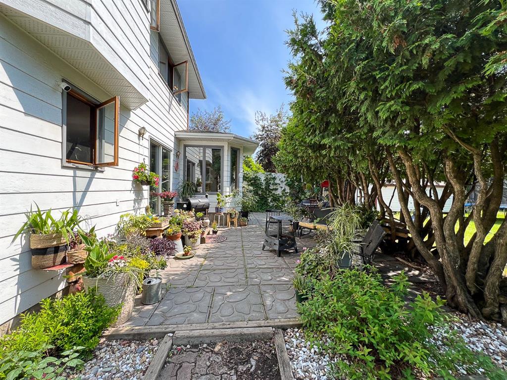 The Best of Both Worlds Acreage Feel, In-Town Convenience! If you've been searching for the peace and privacy of acreage living without giving up the perks of town, this is it. Nestled on a beautifully landscaped, oversized creek-backed lot, this stunning 2,080 sq ft two-storey home offers the perfect blend of space, seclusion, and serenity. From the moment you arrive, the exceptional curb appeal stands out. Lush, overflowing perennials and mature landscaping create a warm, inviting welcome to the front door. Step inside to a thoughtfully designed layout that combines comfort with functionality, ideal for both daily living and entertaining. The main floor features two spacious living areas, each with a cozy fireplace, rich hardwood floors, and expansive windows that flood the space with natural light while framing serene views that bring the outdoors in. At the heart of the home, the oak kitchen boasts a massive center island, an eat-up bar, and a sunlit dining nook that overlooks your private backyard oasis. Upstairs, the primary suite features a walk-in closet and a luxurious en-suite bathroom with dual sinks and a jacuzzi tub, the perfect spot to relax. Two additional bedrooms and a 4-piece bathroom complete the upper level. The fully finished basement adds even more living space, with a rec room, a spacious bedroom with a wet bar, two versatile bonus rooms (perfect for a gym, office, or hobby area), a 3-piece bath, and ample storage. Step outside, and you'll find everything you could want in a yard: a private dining patio, a cozy firepit area, and an expansive lawn perfect for kids, pets, and summer BBQs. Surrounded by mature, thoughtfully placed trees, the yard feels completely private and peaceful, your hidden retreat. With fruit trees, vibrant perennials, established garden beds, and two storage sheds, this is truly a gardener's paradise, offering beauty and practicality at every turn. The heated, finished, double-attached garage provides a great workspace or year-round parking. With new shingles, all Poly-B plumbing fully removed and replaced, hot and cold outdoor taps, and fibre optic internet, this home is as functional as it is beautiful. This home offers the rare combination of acreage-style living in a quiet residential neighbourhood. Don't miss your chance to make it yours—book your showing today!