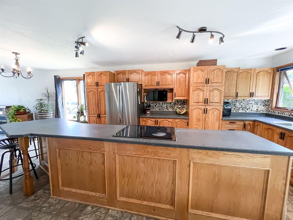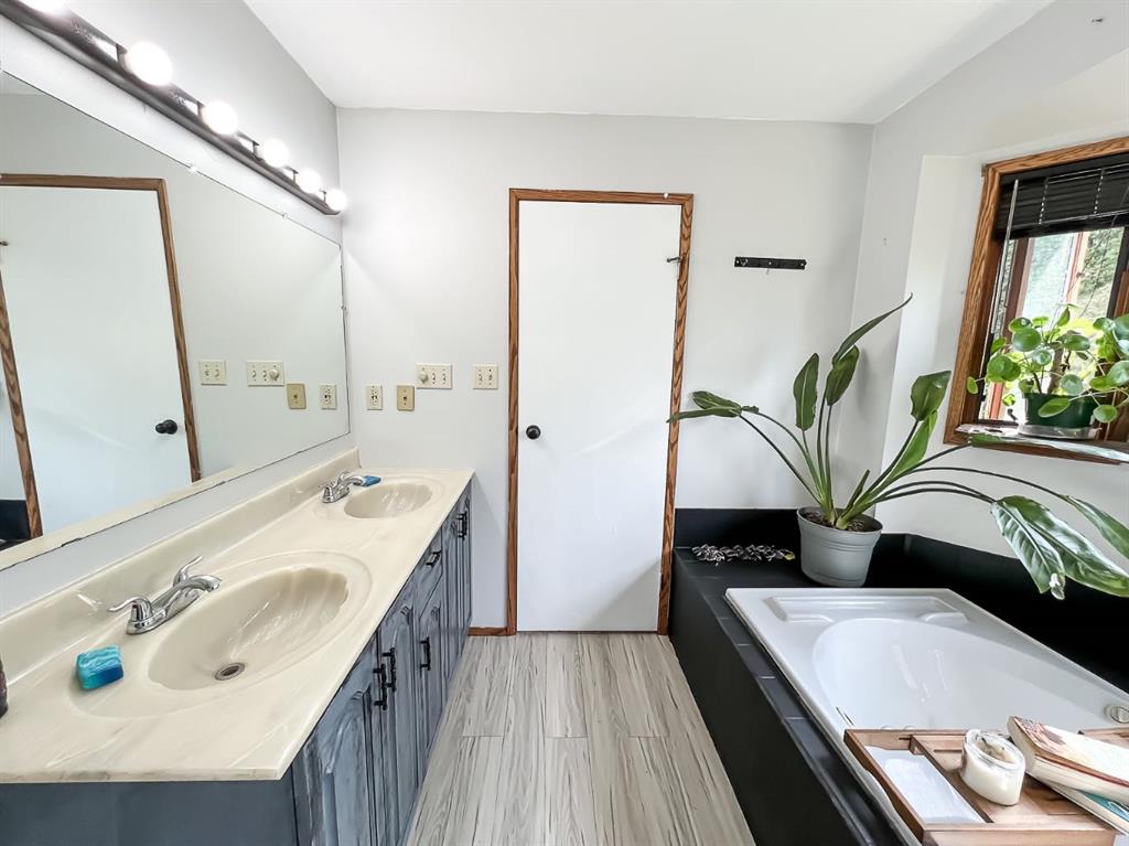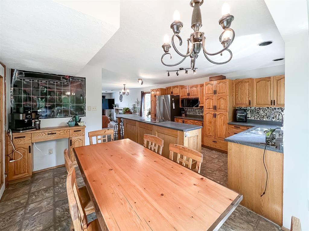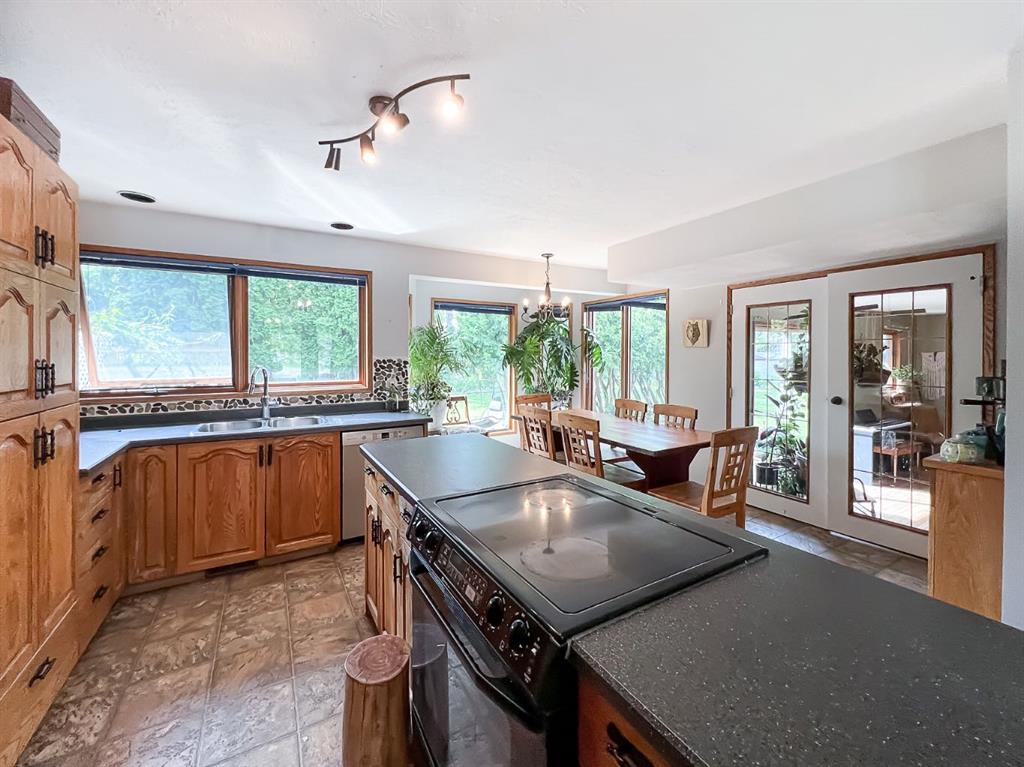 The Best of Both Worlds Acreage Feel, In-Town Convenience! If you've been searching for the peace and privacy of acreage living without giving up the perks of town, this is it. Nestled on a beautifully landscaped, oversized creek-backed lot, this stunning 2,080 sq ft two-storey home offers the perfect blend of space, seclusion, and serenity. From the moment you arrive, the exceptional curb appeal stands out. Lush, overflowing perennials and mature landscaping create a warm, inviting welcome to the front door. Step inside to a thoughtfully designed layout that combines comfort with functionality, ideal for both daily living and entertaining. The main floor features two spacious living areas, each with a cozy fireplace, rich hardwood floors, and expansive windows that flood the space with natural light while framing serene views that bring the outdoors in. At the heart of the home, the oak kitchen boasts a massive center island, an eat-up bar, and a sunlit dining nook that overlooks your private backyard oasis. Upstairs, the primary suite features a walk-in closet and a luxurious en-suite bathroom with dual sinks and a jacuzzi tub, the perfect spot to relax. Two additional bedrooms and a 4-piece bathroom complete the upper level. The fully finished basement adds even more living space, with a rec room, a spacious bedroom with a wet bar, two versatile bonus rooms (perfect for a gym, office, or hobby area), a 3-piece bath, and ample storage. Step outside, and you'll find everything you could want in a yard: a private dining patio, a cozy firepit area, and an expansive lawn perfect for kids, pets, and summer BBQs. Surrounded by mature, thoughtfully placed trees, the yard feels completely private and peaceful, your hidden retreat. With fruit trees, vibrant perennials, established garden beds, and two storage sheds, this is truly a gardener's paradise, offering beauty and practicality at every turn. The heated, finished, double-attached garage provides a great workspace or year-round parking. With new shingles, all Poly-B plumbing fully removed and replaced, hot and cold outdoor taps, and fibre optic internet, this home is as functional as it is beautiful. This home offers the rare combination of acreage-style living in a quiet residential neighbourhood. Don't miss your chance to make it yours—book your showing today!