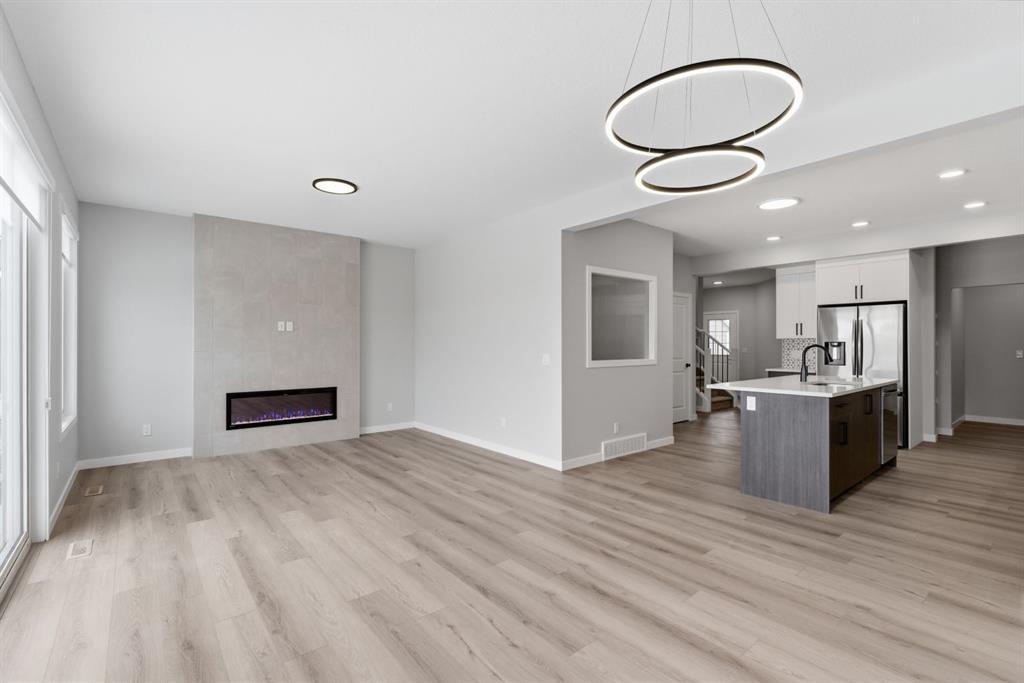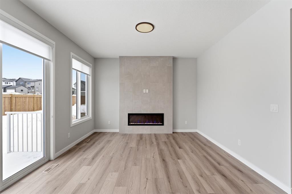 Welcome to this beautifully crafted home in the vibrant Sawgrass park community of Airdrie, built by the award-winning McKee Homes, renowned for their quality construction, attention to detail, and thoughtful design. This stunning and functional floor plan offers 3 spacious bedrooms, 2.5 bathrooms, and a main floor den, perfect for a home office, study area, or flex room to suit your lifestyle needs. The bonus room, located at the front of the home, provides a bright and quiet retreat ideal for relaxing, entertaining guests, or setting up a cozy family lounge. The heart of the home features a modern open-concept layout, where the kitchen seamlessly flows into the dining and living areas—ideal for everyday living and hosting. A convenient pantry provides additional kitchen storage, while the outdoor deck is perfect for BBQs, gatherings, or simply enjoying warm evenings. A separate side entrance adds extra versatility and opens the door for an excellent value and flexibility. With stylish finishes throughout, smart design, and the peace of mind that comes with building from a trusted local builder, this home truly delivers comfort, function, and long-term quality in one of Airdrie’s most desirable new communities.