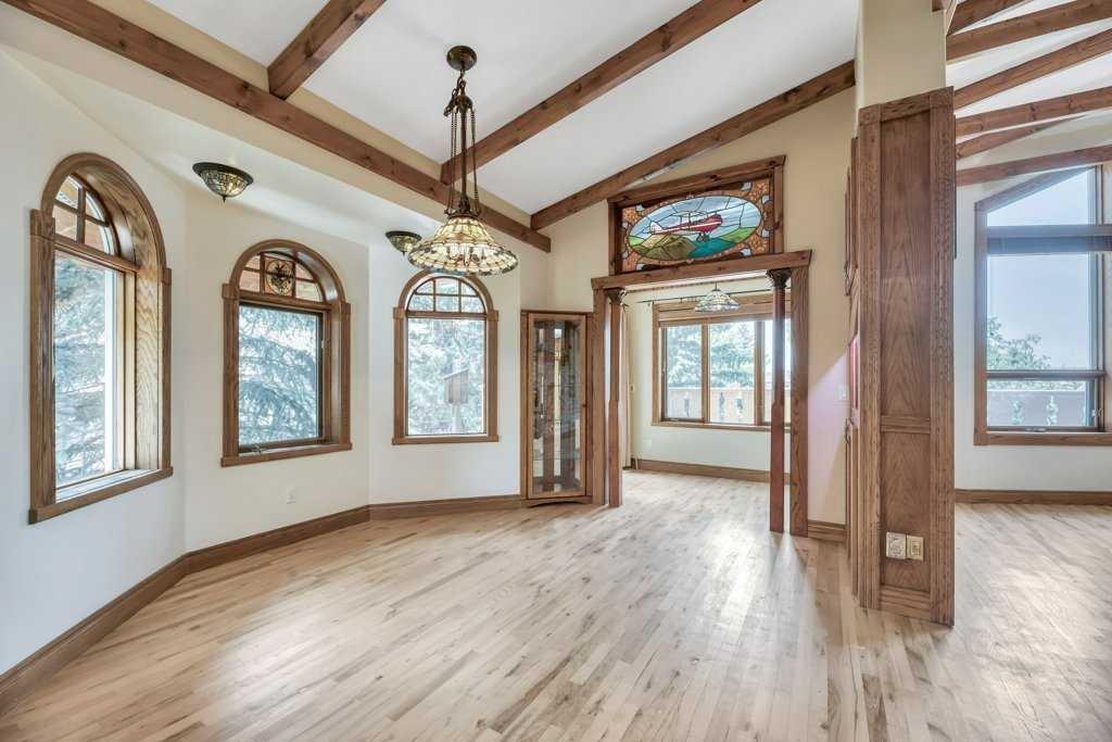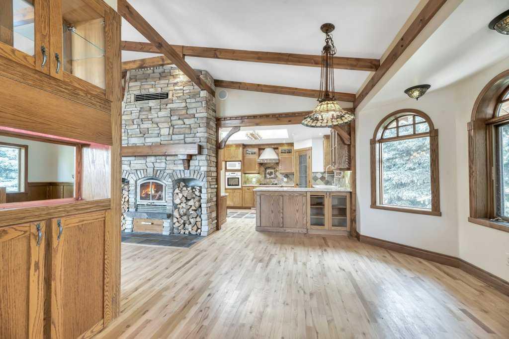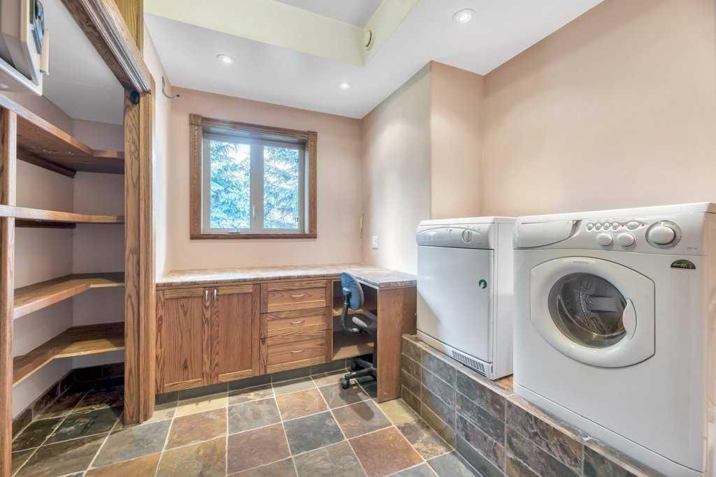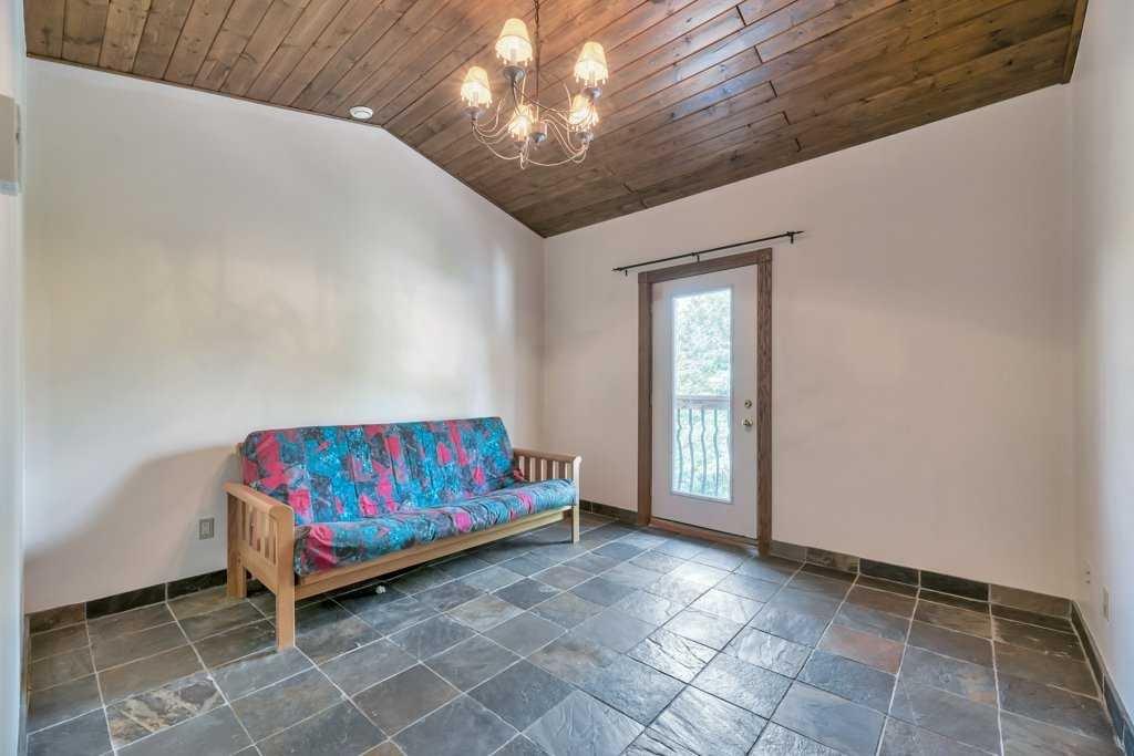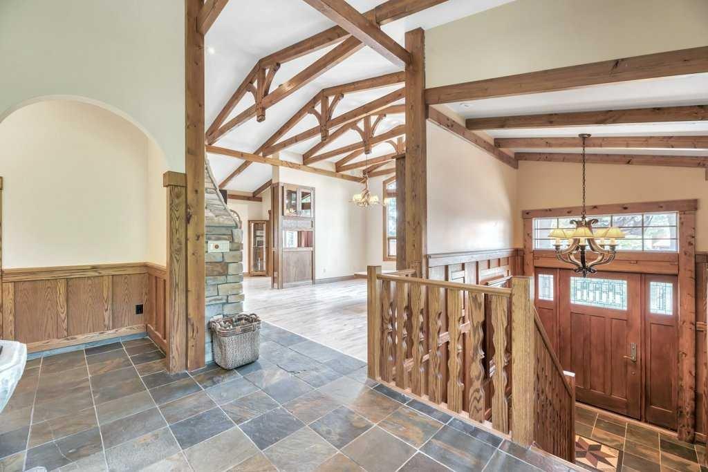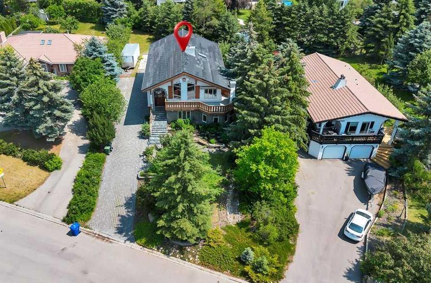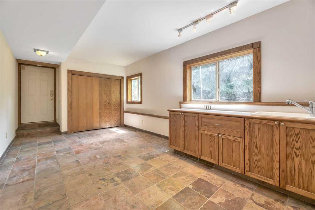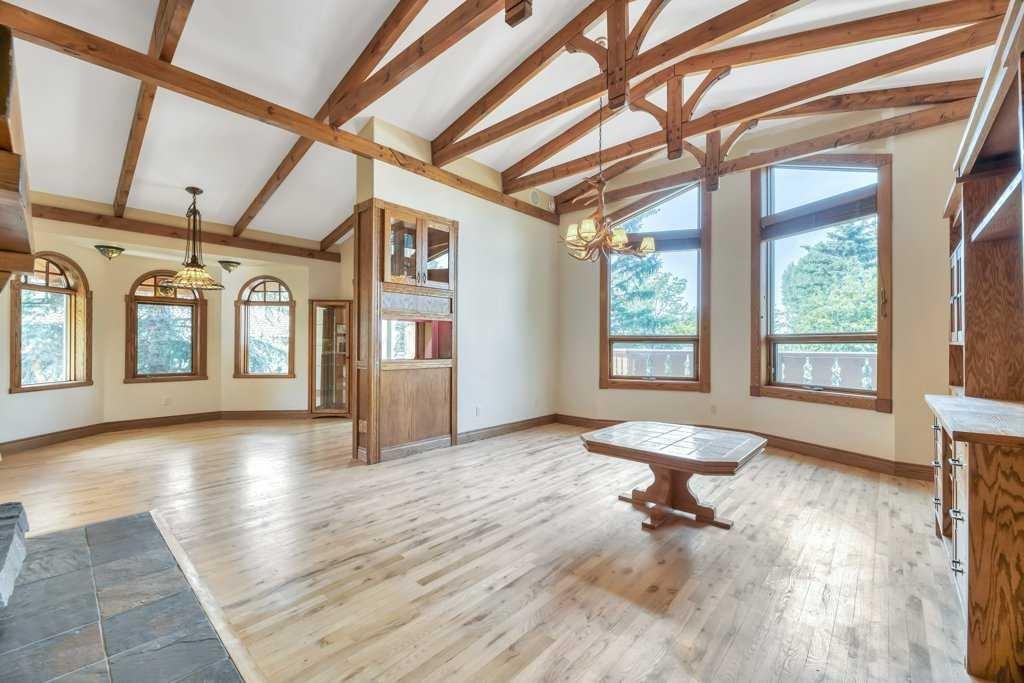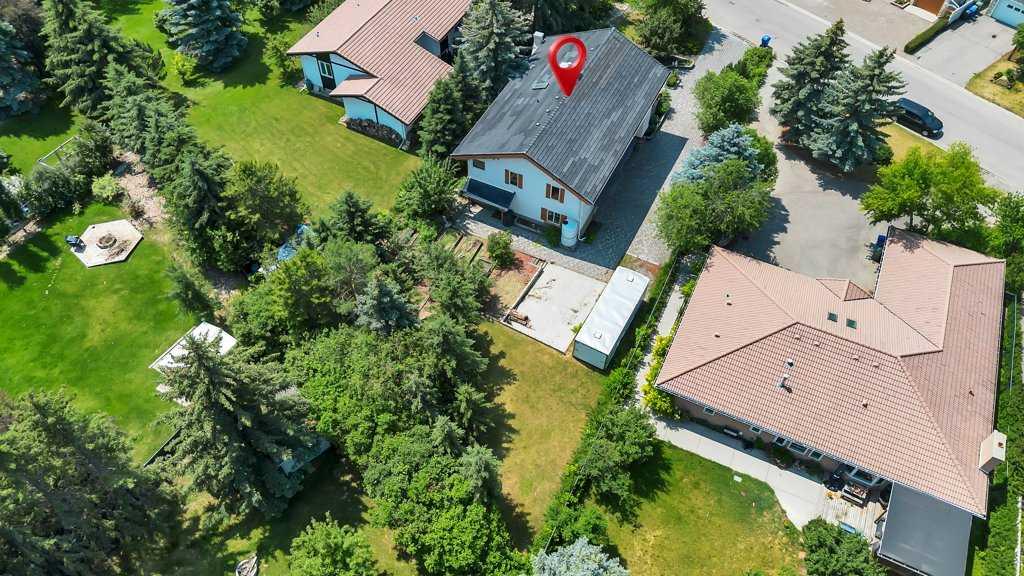 Nestled on a beautifully landscaped 1/3 acre lot adorned with mature trees, this German-inspired masterpiece offers timeless character & thoughtful design at every turn. Across the street from the lake, this one-of-a-kind home boasts stunning curb appeal with lush garden areas, complemented by abundant off-street parking & an additional poured parking pad with roughed-in in-floor heating — ready for a future garage. Inside, you're greeted by intricate custom woodwork, hand-carved detailing, slate flooring, cozy in-floor heating throughout both levels of the home & a custom front-entry fountain. The roof features tiles with a remarkable 50-year lifespan, ensuring peace of mind for years to come. As you ascend to the main level, be captivated by soaring vaulted ceilings with exposed wood beams, stained-glass accents & expansive west-facing windows that fill the space with natural light. The open-concept living & dining area centers around a charming wood-burning fireplace & beautifully crafted built-in cabinetry, blending comfort with artisan craftsmanship. Just off the dining area, a bonus room awaits — ideal as a reading nook, plant retreat, or serene home office. Step out onto the large west-facing deck to enjoy the built-in pizza oven, retractable awning & even a dumbwaiter to easily transport firewood from the ground level. The entire home has ample storage — cleverly built above the closets & on the sides of fireplaces. The kitchen is a chef’s delight, with ample prep space, a gas cooktop, built-in work station and a skylight for added light. There are 2 bedrooms on the main level feature soaring custom wood ceilings, with the primary suite offering his-and-hers closets, a cozy electric fireplace, dual window seats, and a luxurious five-piece ensuite. A convenient main floor laundry room with even more storage & a workspace as well as a stylish three-piece bathroom complete the main level. Downstairs, the lower level offers incredible flexibility, including a spacious cold room, 2 separate grade-level entrances, and two more bedrooms — each with distinctive features. One bedroom includes a mini bar, another boasts a kitchenette, open beam ceilings, electric fireplace, & walk-in closet (with a window) with space for a private office. The third versatile room could easily serve as a secondary kitchen or home office, with its own entrance & sink. A 3-piece bathroom rounds out this impressive lower level. The oversized, heated garage (19'9" x 27'5") includes an integrated workshop & abundant storage options. With instant hot water, quality finishes throughout, & exceptional attention to detail, this home offers a rare combination of craftsmanship, functionality & warmth — a true lakeside gem unlike any other.