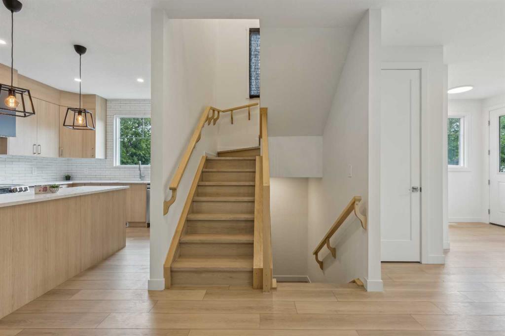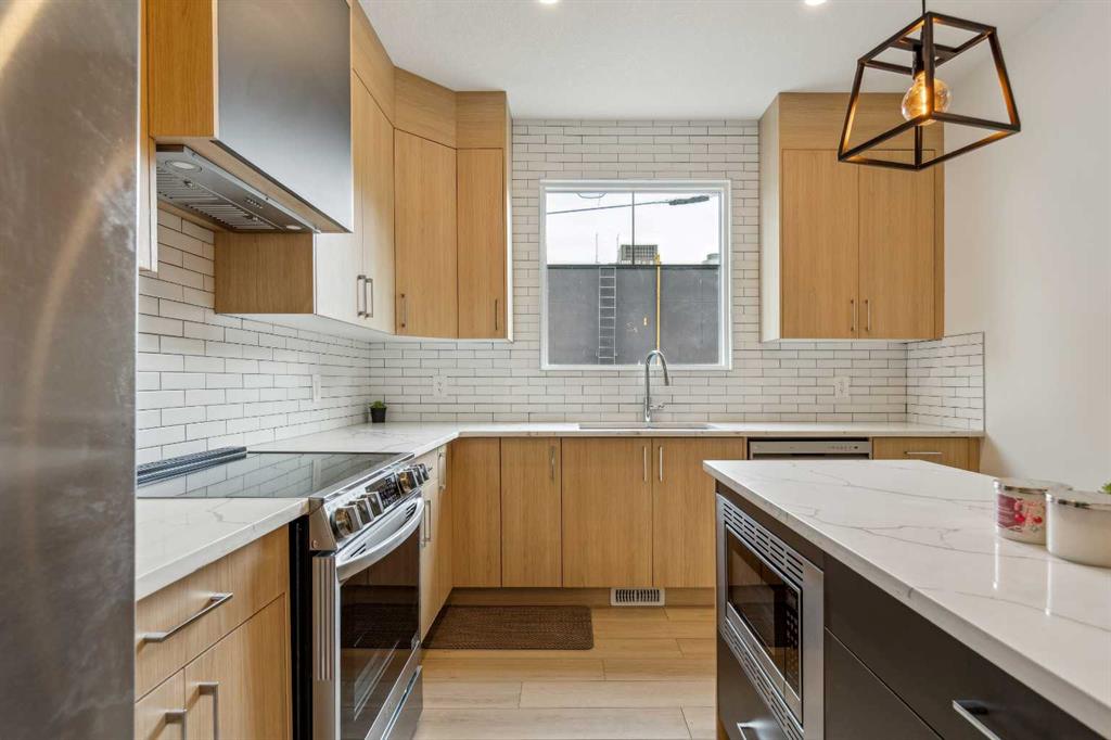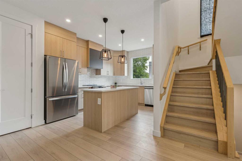 Welcome to this beautifully designed 2-storey home with a fully FINISHED BASEMENT, offering the perfect balance of modern comfort, upscale finishes, and an unbeatable location. Nestled on a quiet street just one block from Edmonton Trail and minutes from Bridgeland, East Village, and 16th Avenue, you’ll love the vibrant lifestyle this home offers—close to cafes, restaurants, shopping, parks, and more! With 1784 sq ft of thoughtfully designed living space, this home features 3 bedrooms/3.5 bathrooms, a luxury kitchen, and contemporary design throughout. On the main floor, the bright, open-concept layout is ideal for entertaining or relaxing. The kitchen is a true highlight, featuring ceiling-height custom cabinetry, sleek quartz countertops, designer tile backsplash, a central island with bar seating, built-in pantry, and a premium stainless steel appliance package. A cozy dining area easily fits a 4-6 person table, while the spacious living room offers a gas fireplace, large window, and stylish feature wall for the perfect ambiance. Upstairs, you’ll find two generously sized bedrooms, each with its own private ensuite. The primary suite includes a walk-in closet with custom shelving and a 4-piece ensuite with dual sinks and a tiled walk-in shower. The second bedroom features walk-in closet and a 4-piece bathroom with a tub/shower combo. A convenient laundry area and linen closet complete this level. Downstairs, the fully developed basement featuring a spacious recreation room with a full wet bar, a third bedroom with a built-in closet, and a full 4-piece bathroom—perfect for guests or a home office. Located steps from the Renfrew Aquatic Centre, local parks, community skating rinks, schools, walking paths, and lookout points, this is inner-city living at its best. Quick access to Deerfoot Trail makes commuting a breeze, and you’re only minutes from Calgary Zoo, Telus Spark, and all the best the inner city has to offer. This home truly has it all—modern finishes, a functional layout, and a location that can’t be beat. Don’t miss this rare opportunity—book your showing today!