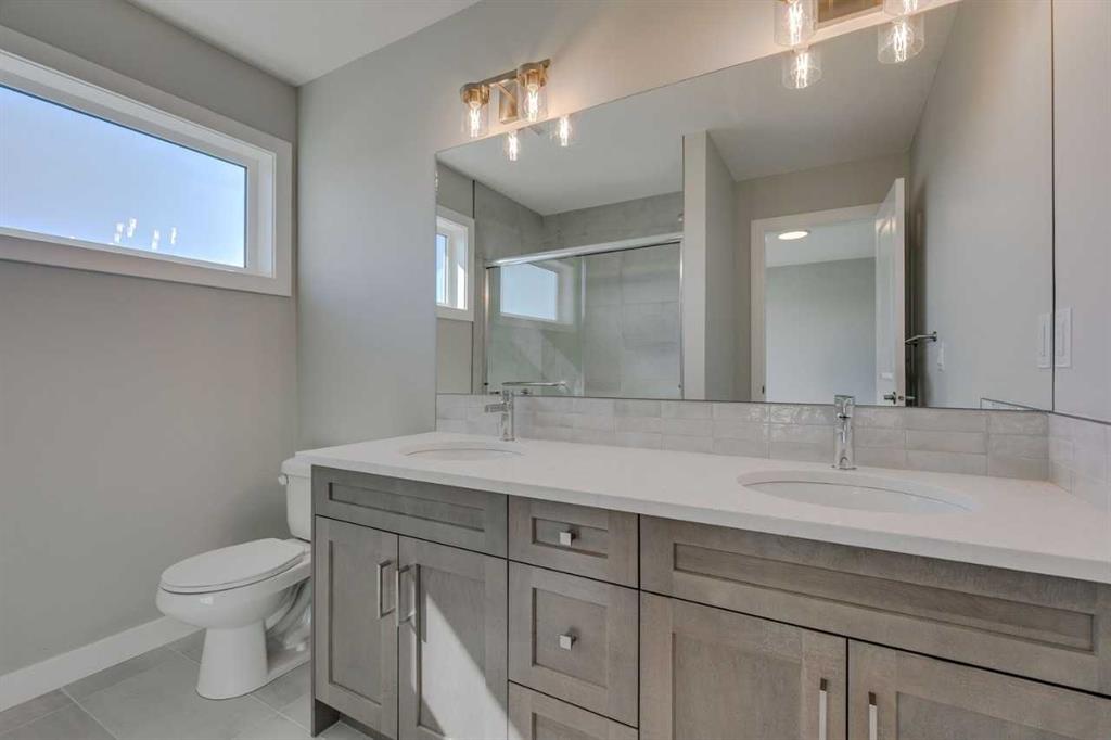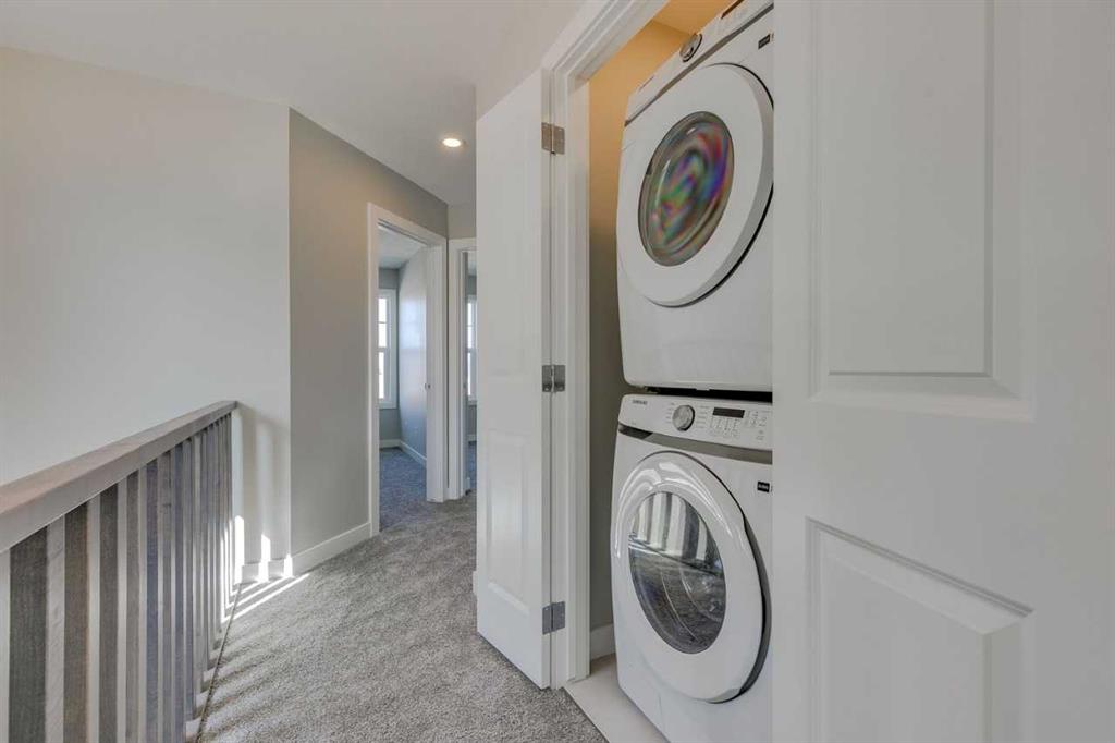 Discover the Eton, a move-in ready home in Chestermere with 1,490 sq ft of stylish living space. This craftsman-style home features Hardie board siding, black-framed windows, and an open-concept layout with luxury vinyl plank flooring. The rear-facing kitchen connects seamlessly to the backyard and includes Winter-stained maple cabinetry, quartz countertops, Samsung stainless steel appliances, a chimney hood fan, a large island, and a picture window above the granite sink. A functional back entry and walk-in pantry add convenience, while the front-facing great room is bright and inviting. Upstairs, the rear primary bedroom includes a dual-sink ensuite, complemented by upper-floor laundry and two additional bedrooms. Situated in Clearwater Park, one of Chestermere’s newest master-planned communities, residents enjoy exclusive access to the Clearwater Community Clubhouse. Cardel Homes offers better design and quality, making this a standout opportunity for modern living. Photos are representative.