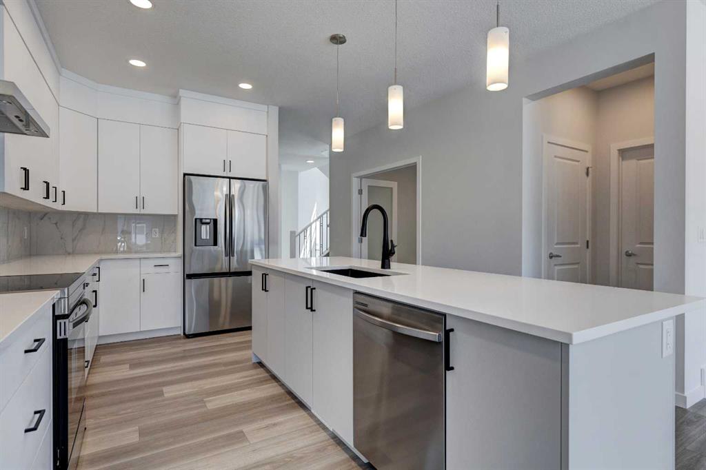 Welcome to the stunning Newbrook by Excel Homes, where thoughtful design, modern upgrades, and energy-efficient construction come together to create the perfect family home. Boasting 2271 SF & nestled on a quiet street , while being zoned R-G with a separate side entrance and rough-ins for a future 2 bedroom legal suite (subject to city approvals)—making it as versatile as it is beautiful. From the moment you step inside, the open-to-above foyer sets a dramatic tone, inviting you into the expansive main floor where oversized windows fill every corner with natural light. The open-concept plan is anchored by a gorgeous kitchen, featuring a large central island, an abundance of crisp white cabinets and drawers, a pantry, and a convenient broom closet—ideal for both everyday living and entertaining. The adjacent flex room is perfectly placed for a home office, playroom, or study, while the mudroom off the garage keeps things organized. Nine-foot knockdown ceilings and luxury vinyl plank flooring add style and function throughout the main level. Upstairs, the thoughtful layout continues with four generous bedrooms, including a luxurious primary retreat with a stunning five-piece ensuite and a walk-in closet. The vaulted ceiling in the bonus room and the open-to-below design add architectural flair, creating an airy, elegant feel on the upper level. The basement offers even more potential with its separate side entrance and suite rough-ins, giving you the opportunity to develop a legal secondary suite (with city permits & approvals) down the road. Every detail of this home has been upgraded for comfort and efficiency, including thermally-fused cabinetry, stone countertops in the kitchen and all bathrooms, dual sinks in both the ensuite and main bath, pot lighting throughout, a gas line for your BBQ, Ecobee thermostat, HRV, solar panel rough-in, and more. Built to Built Green® standards, this home not only saves you money on utilities but also reduces your environmental footprint—all while delivering the exceptional quality and craftsmanship that Excel Homes is known for. Don’t miss your chance to own this incredible property, designed to fit your family’s lifestyle today and for years to come.