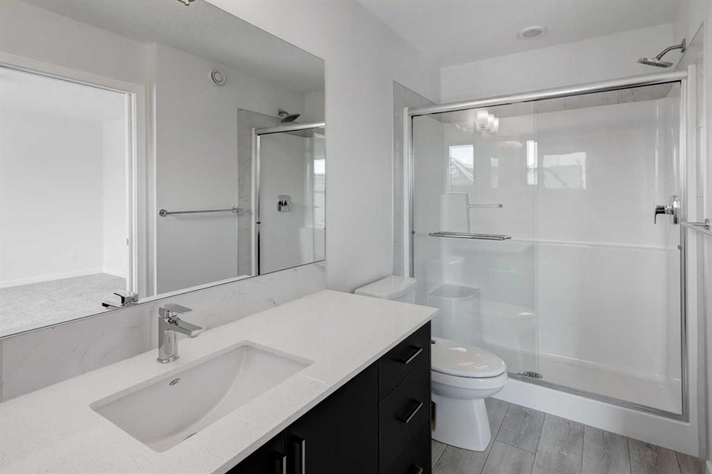 Introducing the COHEN: an amazing, BRAND NEW attached home by EXCEL HOMES offering 1733 SF above grade of upgraded luxury! Nestled in the vibrant Northeast community of Livingston. Step into a life of luxury and convenience with this stunning residence, where every detail has been meticulously crafted for comfort and style. Enjoy the benefits of living in an established neighborhood that brings a plethora of amenities right to your doorstep, along with swift access to major highways. The COHEN offers a sprawling 1733 square feet of thoughtfully designed living space, perfect for both families and entertaining. The open floor plan, complemented by neutral designer tones, creates a welcoming atmosphere that is both elegant and comfortable. The chef-quality kitchen stands as the heart of the home, equipped with ceiling-height cabinets, pot/pan drawers, and upgraded stainless steel appliances, including chimney fan and built-in microwave. The expansive engineered stone countertops, a large island with seating, and a convenient pantry make it a dream kitchen for those who love to cook and entertain. The main floor also features versatile luxury vinyl plank flooring. Uniquely ON THE MAIN FLOOR, you'll find a BEDROOM & FULL 4 PCE BATHROOM. Ascend to the second level where leisure meets luxury in the large central bonus room — ideal for movie nights and family gatherings. The primary bedroom is a true retreat, boasting a walk-in closet and a spa-like ensuite with stone vanity tops. Additionally, two more generously sized bedrooms provide ample space and easy access to the main bathroom. The convenience continues with a laundry room (w/folding counter), strategically located on the same floor. The possibilities extend into the undeveloped basement that has separate SEPARATE SIDE ENTY & ROUGH IN'S FOR 2 BEDROOM LEGAL SUITE (with city permits & approvals)... the utilities are tucked away for easy development. Step outside to a southeast-facing backyard that's perfect for relaxation and outdoor activities. You'll love the convenience of the REAR DOUBLE DETACHED GARAGE (not yet built - seasonal item)! Don't miss the chance to own this never-lived-in gem with quick possession available. Experience the blend of luxury, comfort, and convenience in Livingston—welcome to your new dream home at the COHEN. This home will include front & back yard sod. Also includes complete interior sprinkler system to main and upper floors!
