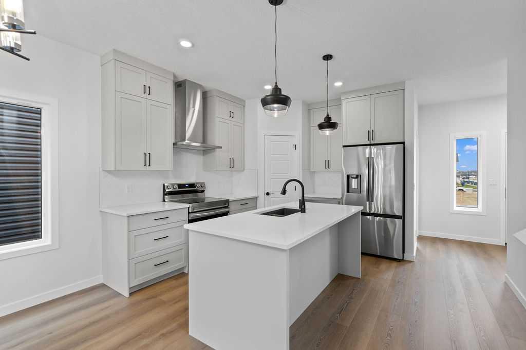 Airdrie' s number 1 voted builder is providing this amazing opportunity for a quick possession laned home with a main floor bed and full bath along with a 20 x 22 ft. concrete pad! This prairie design home offers 4 bedrooms and 3 full bathrooms! The Laurelvale model is one of our most popular models and comes with all the bells and whistles, full set of appliances, side entry, garage pad and front plus side yard landscaping! enjoy over 1600 SF of living space with the comfort of having your own front and backyard. Come take a look today with your favorite realtor or visit our show home located at 902 & 909 Chinook Winds Meadow SW.