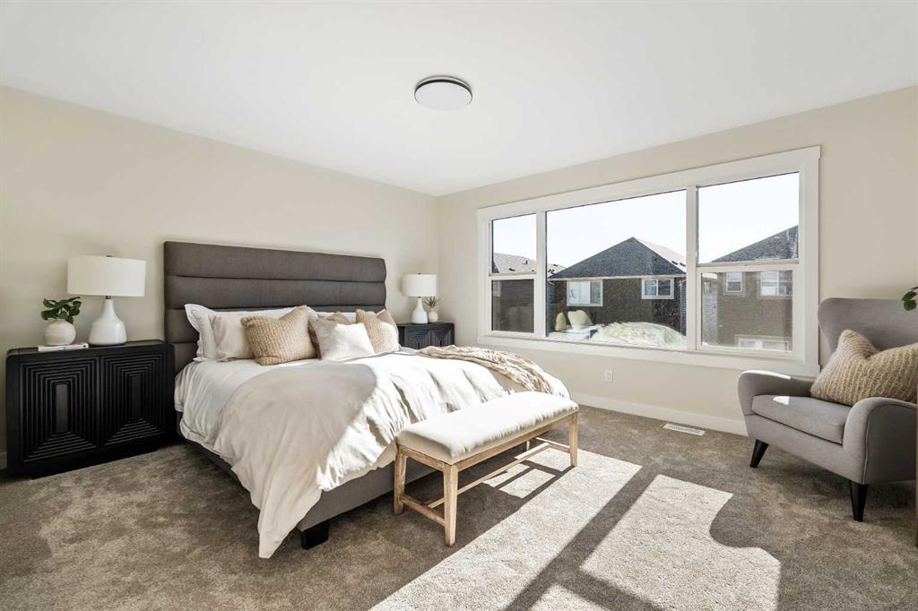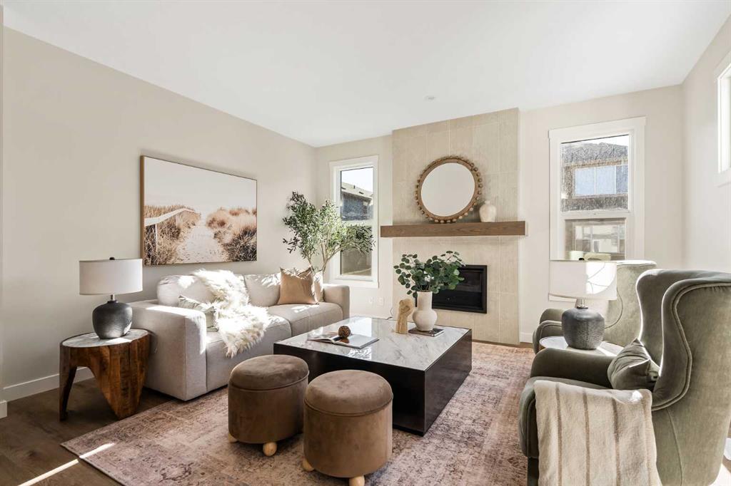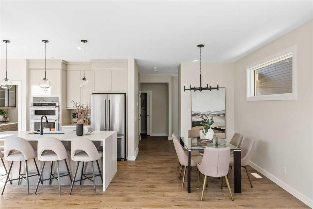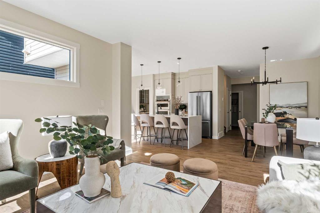 The beautiful Dawson model is a brand new home that features 2 living areas, 3 bedrooms, 2.5 bathrooms and nearly 2,300 square feet of developed living space + an undeveloped basement that awaits your imagination! Located in the heart of Chinook Gate and ideally situated on a large conventional lot with a south-facing backyard, this new home is perfect for a growing family. The double attached garage leads to an expansive mud room that has access to the front of the home and the large walk-through pantry/coffee bar that leads into the kitchen - adding to everyday convenience. The gourmet kitchen is complete with a cooktop, chimney hood fan, built-in wall oven & microwave, and features a central island with additional seating space. The kitchen overlooks the dining area and living room - making this the perfect family home or entertainment space! A central cantilevered gas fireplace in the main level great room is perfect for cozy winter nights. Double patio doors and windows on either side of the fireplace allow for the south-facing backyard sunshine to flow throughout the main living area all day long. The main level is complete with a large foyer, 2 pc powder room and two sets of double closets for ample storage. On the upper level, the bonus room is at the front of the home, overlooking the front street and providing the perfect tv space. The large primary suite is at the back of the home, overlooking the backyard, and is complete with walk-in closet and a 5 pc ensuite including a walk-in tiled shower, soaker tub, double sinks and a private water closet. Two more generous-sized bedrooms, each complete with their own walk-in closets, a full bathroom and laundry room complete the upper level. The undeveloped basement is a clean slate with bathroom rough-ins in place, making future development that much easier! Situated on a conventional lot (not a zero lot-line) that is over 3,700 ft2 in size, with a south-facing backyard, this beautiful new home is perfect for a growing family! This brand new home includes builder warranty + Alberta New Home Warranty - allowing you to purchase with peace of mind in the new community of Chinook Gate.