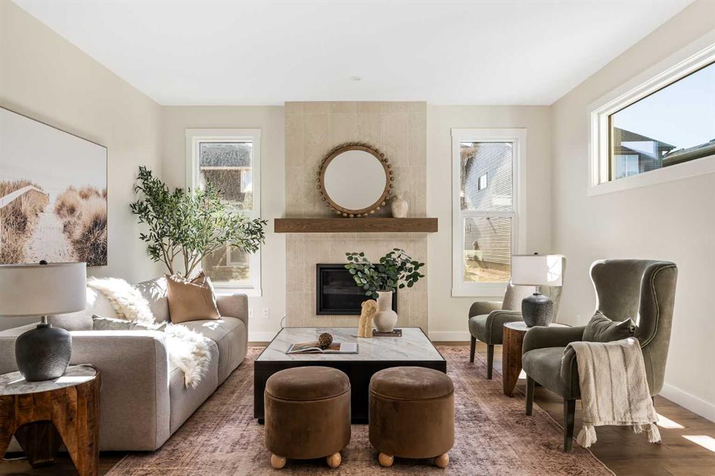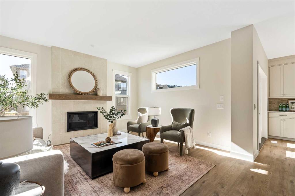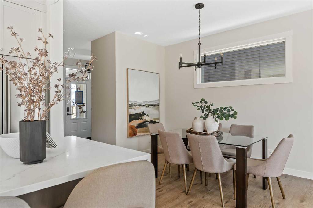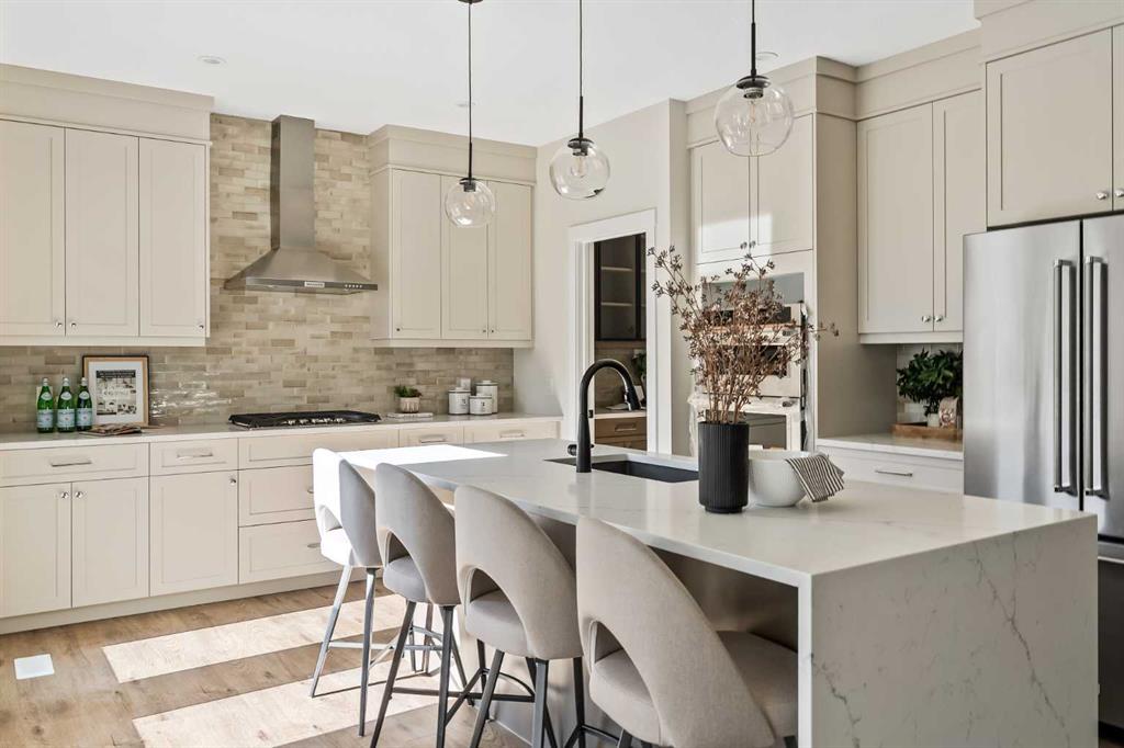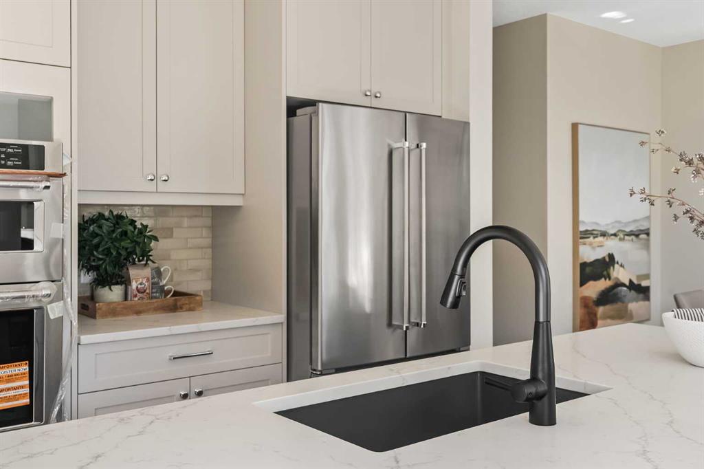 The beautiful Dawson model is a brand new home that features 2 living areas, 3 bedrooms, 2.5 bathrooms and nearly 2,300 square feet of developed living space + an undeveloped basement that awaits your imagination! Located in the heart of Chinook Gate and ideally situated on a large conventional lot with a south-facing backyard, this new home is perfect for a growing family. The double attached garage leads to an expansive mud room that has access to the front of the home and the large walk-through pantry/coffee bar that leads into the kitchen - adding to everyday convenience. The gourmet kitchen is complete with a cooktop, chimney hood fan, built-in wall oven & microwave, and features a central island with additional seating space. The kitchen overlooks the dining area and living room - making this the perfect family home or entertainment space! A central cantilevered gas fireplace in the main level great room is perfect for cozy winter nights. Double patio doors and windows on either side of the fireplace allow for the south-facing backyard sunshine to flow throughout the main living area all day long. The main level is complete with a large foyer, 2 pc powder room and two sets of double closets for ample storage. On the upper level, the bonus room is at the front of the home, overlooking the front street and providing the perfect tv space. The large primary suite is at the back of the home, overlooking the backyard, and is complete with walk-in closet and a 5 pc ensuite including a walk-in tiled shower, soaker tub, double sinks and a private water closet. Two more generous-sized bedrooms, each complete with their own walk-in closets, a full bathroom and laundry room complete the upper level. The undeveloped basement is a clean slate with bathroom rough-ins in place, making future development that much easier! Situated on a conventional lot (not a zero lot-line) that is over 3,700 ft2 in size, with a south-facing backyard, this beautiful new home is perfect for a growing family! This brand new home includes builder warranty + Alberta New Home Warranty - allowing you to purchase with peace of mind in the new community of Chinook Gate.
