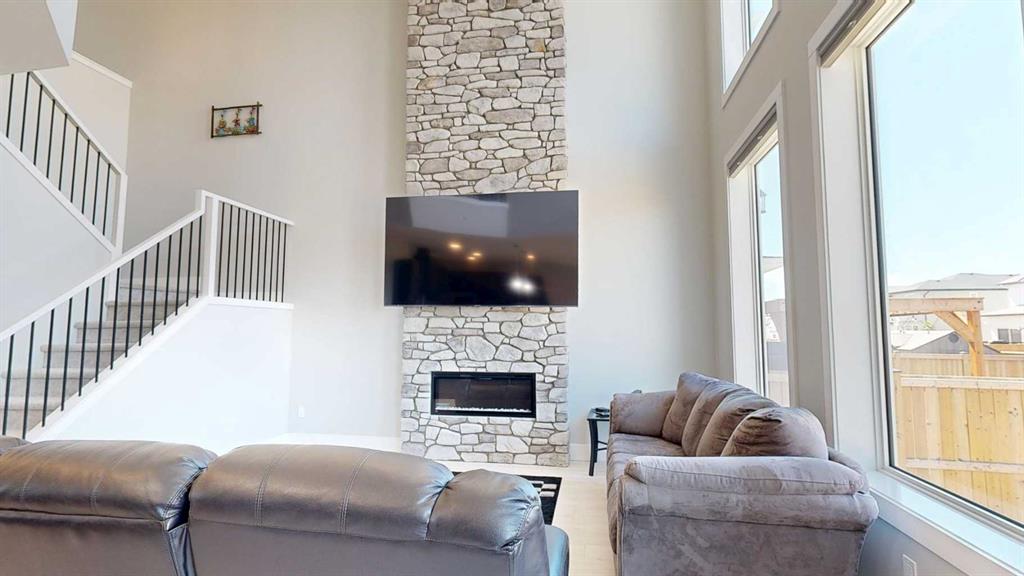 Welcome to this charming, Almost New Two-Storey home with 3 Bedrooms, 2.5 Bathrooms, Bonus Room, AND Office, Double attached garage, and a Walk-up basement with Separate Entrance located in a very desirable, family oriented neighborhood in southside community, and walking distance to elementary school and quick access to major shopping centers! As you walk up to the front entrance, you’ll be amazed by a spacious and covered veranda which leads to a very welcoming foyer. Enjoy the open floor plan with 9’ ceiling height throughout Main floor and living room with ceiling Open-to-Below with a total livable space of 3295 Sq.Ft. The Beautiful Modern style Kitchen is The Heart Of The Home complete with large quartz island, elegant Cabinets, customized hood fan, customized refrigerator doors to blend in with other cabinets, extra built-in countertop in front of pantry, Gas cook top stove, and all Stainless Steel Appliances. The Open-to-below 18’ concept along with big windows looking on to the backyard let lots of natural light come in throughout the day. This immaculate living room has a customized wall decorated with stone around fireplace throughout from main floor all the way to the top of the ceiling. This gives a unique view from hallway upstairs and even when looking down to see the living area on main floor. There is a half bath and an Office on the main floor along with built-in shelf space for closet which can be used as work space or a play room for kids. Going up the stairs, there is a spacious Bonus room which is a great spot for hanging out with friends, movie nights, or just to read a book with natural light from window. In addition, upper Floor consists of 2 big bedrooms, 3-piece bath, and a massive Master Bedroom with a 5-piece en-suite that is fully tiled, has a fancy Bath-tub, Walk-in Shower, extra vanity, and a Walk-in closet. Going downstairs to the enormous basement with a Roughed-in bathroom, laundry set up, there is a full future potential of building a 2 bedroom+family room Legal suite with a Separate Entrance which walks up to grade on to a Large Fenced Backyard with a back alley. Built in 2021, this home is fully equipped with Central AC, low-maintenance front yard, and fully-fenced Backyard ideal for Kids and Pets. Home in Pristine Condition: owners only lived here for few months since they bought it brand new, no pets, never smoked. This home is still under New Home Warranty. To checkout this beauty, Contact your favorite REALTOR® today!