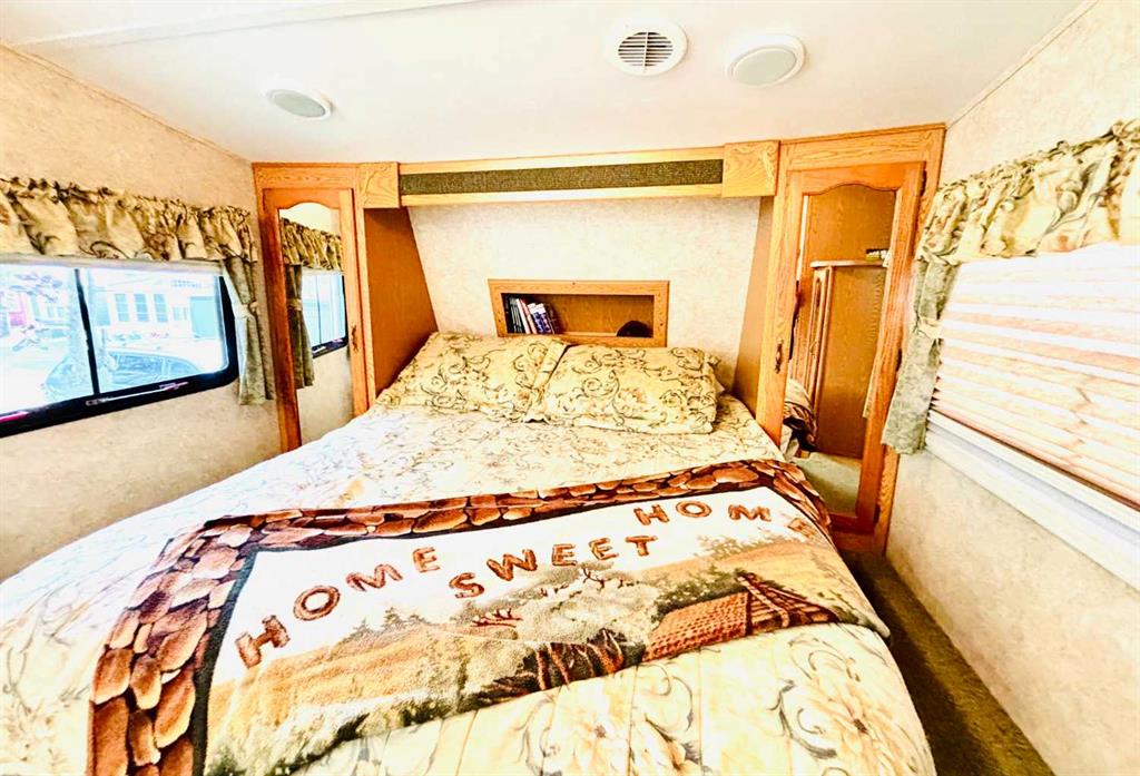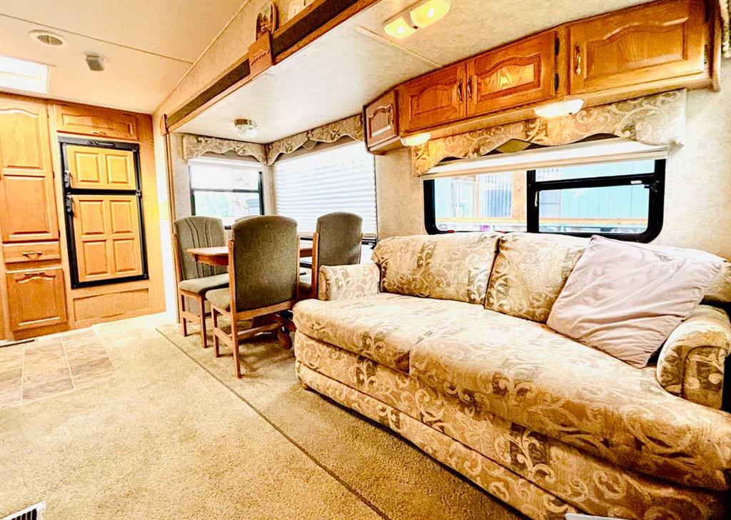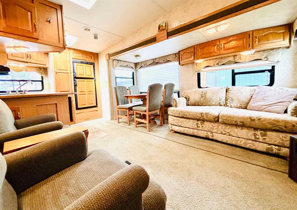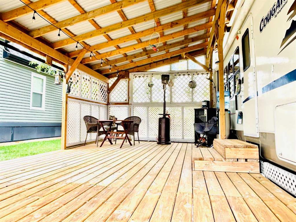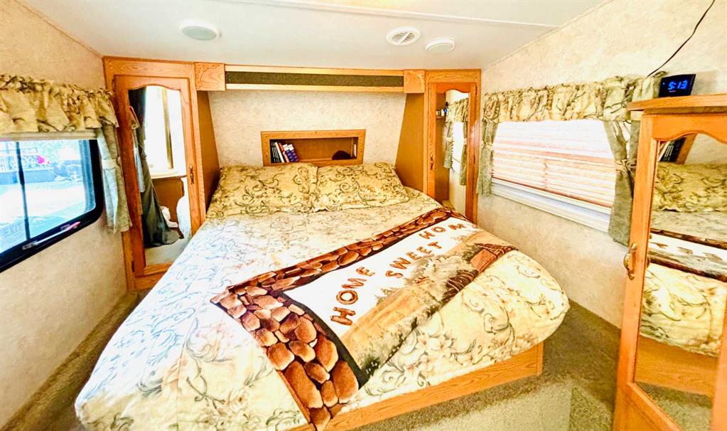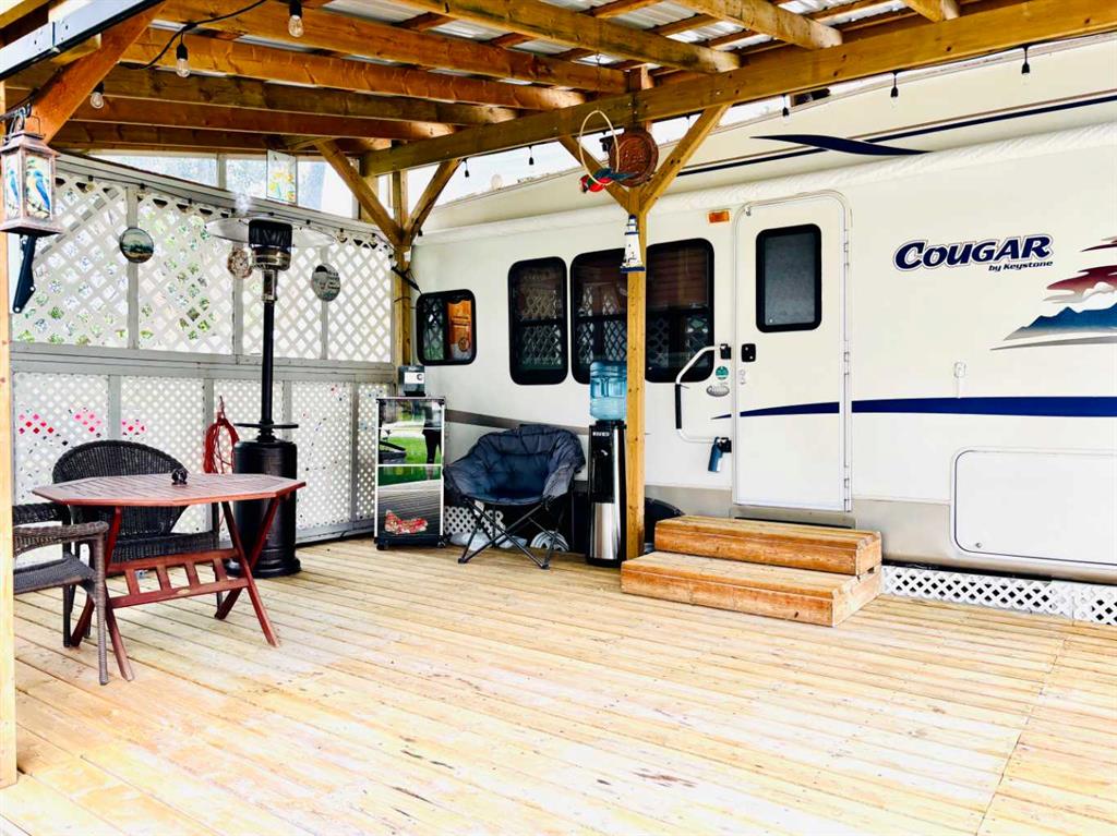 An affordable retreat - all summer long!! Perfect for the solo escape or the outdoorsy couple who want to relax at the lake. Just pack your bag and send your troubles away. In a friendly gated community, only steps to the beach, social events and walking trails; relaxing serenity awaits your arrival. This well designed lot features an upgraded shed with fridge and storage, large deck with tin roof and weather coverings, a private fire pit area, low maintenance landscaping and backs onto a field for optimum privacy. Aspen and Lilacs complete your outdoor oasis. The original owners of the 2006 Cougar Series 5th Wheel have this lakeside beauty meticulously cleaned, maintained and move in ready! The slide allows for the roomy feel while the corner kitchen allows ample sunlight and views while prepping those delicious summer meals! Notice the wood cabinetry showcasing the build quality throughout. Air conditioning enhances this luxurious camping style and the living room even features a pull out couch for extra guests! Your summer retreat awaits you!