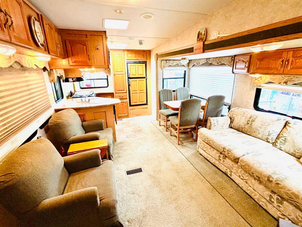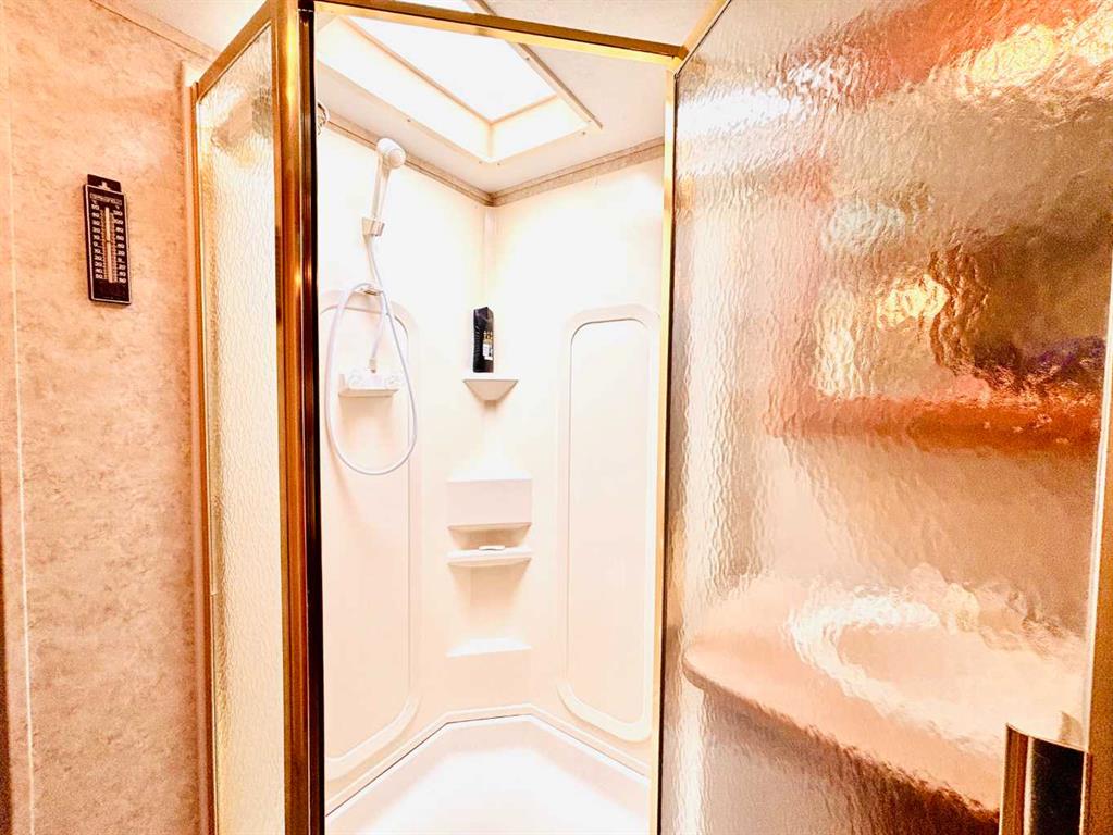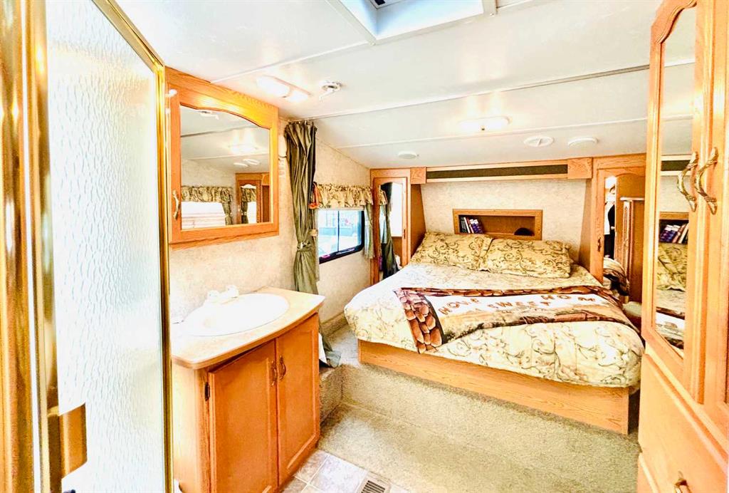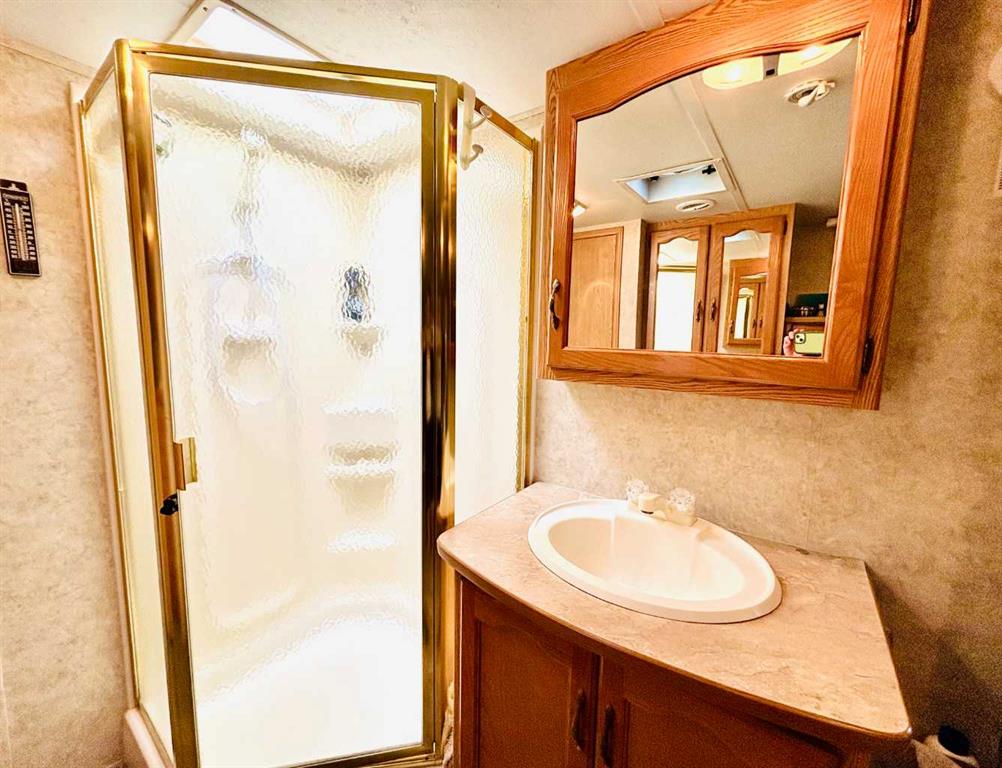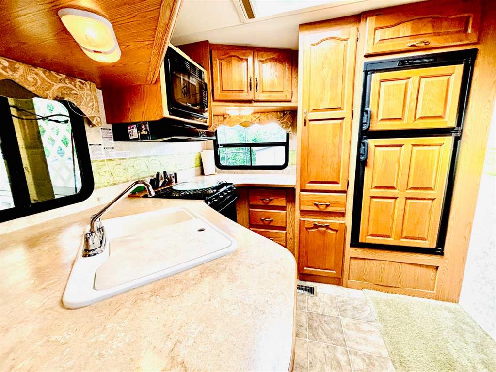 An affordable retreat - all summer long!! Perfect for the solo escape or the outdoorsy couple who want to relax at the lake. Just pack your bag and send your troubles away. In a friendly gated community, only steps to the beach, social events and walking trails; relaxing serenity awaits your arrival. This well designed lot features an upgraded shed with fridge and storage, large deck with tin roof and weather coverings, a private fire pit area, low maintenance landscaping and backs onto a field for optimum privacy. Aspen and Lilacs complete your outdoor oasis. The original owners of the 2006 Cougar Series 5th Wheel have this lakeside beauty meticulously cleaned, maintained and move in ready! The slide allows for the roomy feel while the corner kitchen allows ample sunlight and views while prepping those delicious summer meals! Notice the wood cabinetry showcasing the build quality throughout. Air conditioning enhances this luxurious camping style and the living room even features a pull out couch for extra guests! Your summer retreat awaits you!