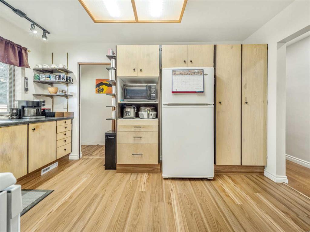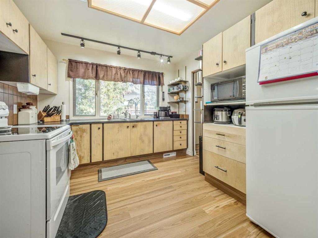 This beautifully maintained home in a sought-after South Lethbridge neighborhood offers five spacious bedrooms and two bathrooms, perfectly suited for families or anyone looking for space and style. Enjoy comfort and convenience with included appliances such as two fridges, stove, dishwasher, microwave, washer, dryer, and central air conditioning. The formal living room creates a welcoming focal point, complete with a cozy wood-burning fireplace that adds warmth and character, while the backyard fire pit sets the scene for relaxed evening gatherings. Recent upgrades shine throughout the property, including hot water on demand, underground sprinklers, fresh exterior paint, upgraded eaves troughs, and new shingles installed two years ago with a approximate 30-year lifespan. The garage door opener—with two remotes—was replaced two years ago for added peace of mind. With additional features included like window coverings, blinds, multiple ceiling fans, dual furnaces, water softener and a solar energy system for significant energy savings, this move-in ready gem blends practicality with polish in a welcoming community near parks, schools, and amenities