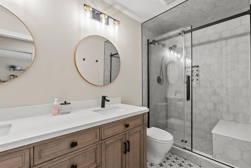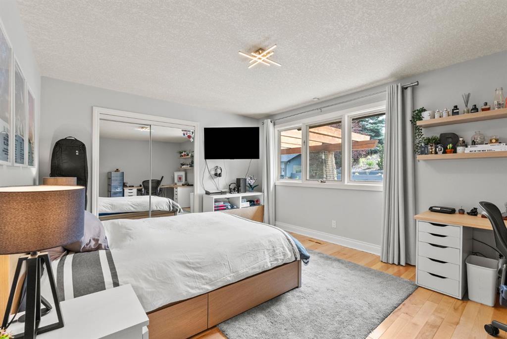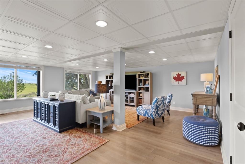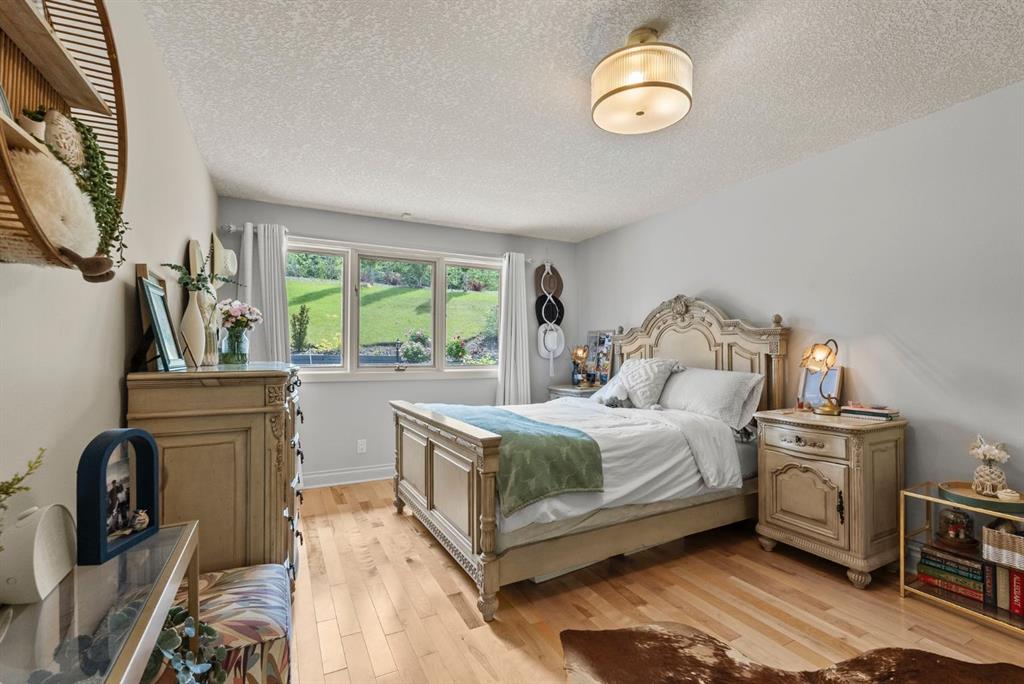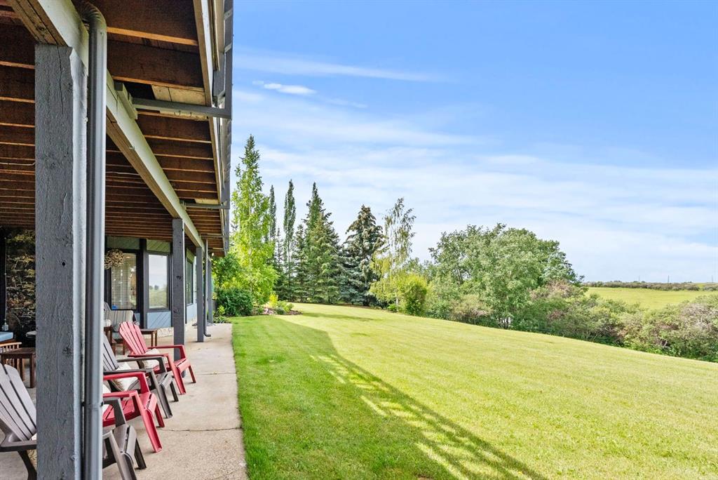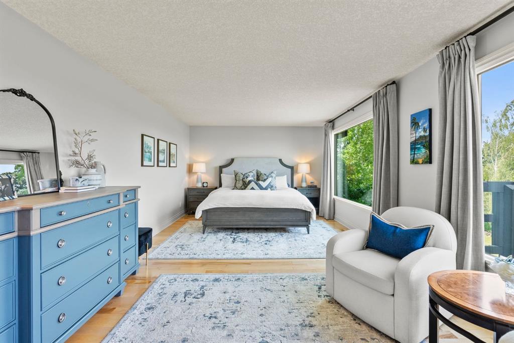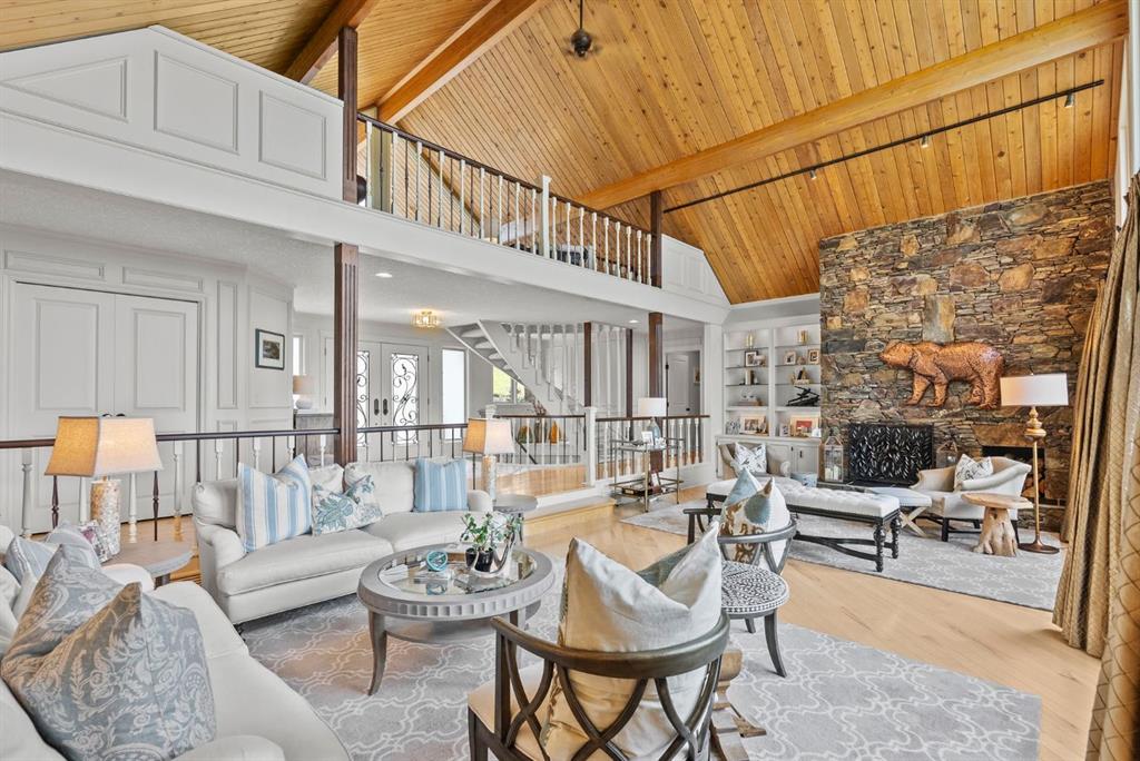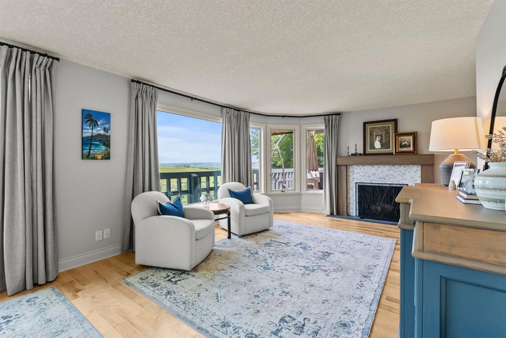 A truly distinctive offering in the prestigious enclave of Artists View West, where homes rarely come to market. This architecturally distinctive, mid-century inspired hillside bungalow is anything but cookie-cutter, blending timeless character with thoughtful modern renovations. Offering over 7,800 sq ft of finished living space, a full walkout basement, and panoramic mountain views, this home delivers exceptional scale, charm, and privacy—just minutes from Calgary’s west edge. Solidly and securely constructed by the well-known Peters Brothers Construction, the home reflects a level of craftsmanship and build quality that continues to stand the test of time. The main level showcases 22’ cedar ceilings, expansive picture windows, rich custom woodwork, and a dramatic stone wood-burning fireplace—hallmarks of enduring construction paired with modern comfort. The chef’s kitchen features high-end appliances, granite countertops, a large island with seating, custom cabinetry, and a statement copper range hood, opening to a breakfast nook with built-in banquette and fireplace. A formal dining room connects directly to an outdoor patio dining area designed to capture sweeping mountain vistas and sunsets. The layout is ideally suited for large families or multigenerational living, with a spacious main-floor bedroom wing and a private lower level offering flexible living arrangements. The primary suite includes a fireplace, spa-inspired ensuite with in-floor heating, and a generous walk-in closet. Two additional large bedrooms, a private office with coffered ceilings, an upper loft, and a spacious laundry/mudroom with custom cabinetry complete the main floor. The fully finished walkout basement further enhances the home’s versatility, featuring a nanny or in-law suite with private living area and ensuite, along with a large recreation room, bar/kitchenette, multiple family spaces, an additional wood-burning fireplace, steam shower, and extensive custom storage. Two dedicated mechanical rooms house 3 furnaces, 2 A/C units, and 4 hot water tanks, providing infrastructure capacity well suited to a larger household. Additional highlights include two separate 3-car garages—one attached and one detached, Armour shake shingles, sound-reducing insulation, paved driveway, fully fenced chain-link yard, underground irrigation system, mature landscaping, integrated security system, and multiple private outdoor living areas. Water service is via a co-op system (not city water). Ideally located 5 minutes to Highway 1 and Stoney Trail, approximately 20 minutes to downtown, Foothills Hospital, and the University, and under an hour to Canmore and Banff. Close to top public and private schools, city amenities, horse boarding, and the mountains. A rare opportunity to own a home of true character, scale, and flexibility in one of the west side’s most tightly held communities.