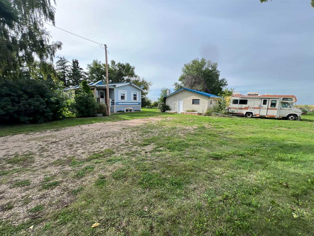 Looking For Your Perfect Little Gem? Here it is located on 2.57 acres in Gem, Alberta only a hop, skip, and jump to Bassano, Brooks, and Calgary. Hidden behind a row of mature trees this 1376 sq ft mobile home sits on it's own foundation. 3 bedrooms, 1 - 4 piece bathroom, a "U" shaped kitchen and sizeable living room that can accommodate the entire family. The exceptional 416 sq ft addition features a sizeable entry, dining room with 6 skylights and can can easily host a family of 12 or guests. Additional sq footage features a side entry complete with additional storage perfect for freezer, fridge coats, boots etc. The basement requires some minor finishing, it is framed, wired but requires drywall as well the bathroom requires finishing. The floor plan accommodates 2 bedrooms, bathroom, family room. 8" exterior walls in basement. Residential water is connected to Regional Water, surface water is EID irrigation. Mobile home has had "leaf filter" system integrated into the eavestroughs. This property has many smaller outbuildings that only a viewing of the property can justify. A garden area features many shrubs and fruit trees including raspberries, saskatoon berry, black current are only a few shrubs ready for harvest. This very private acreage needs a new owner to carry on the love and care for it the way the current owner has done over the past 25 years.