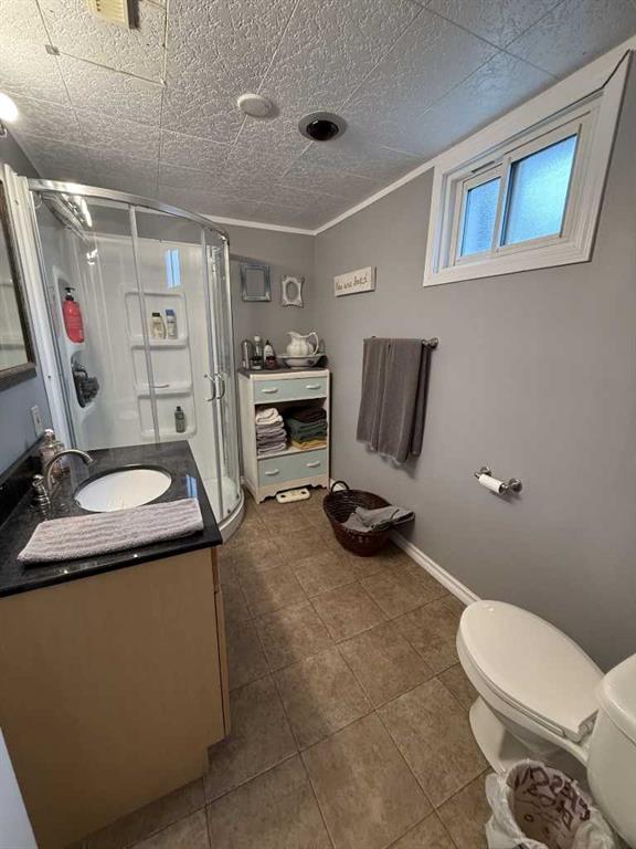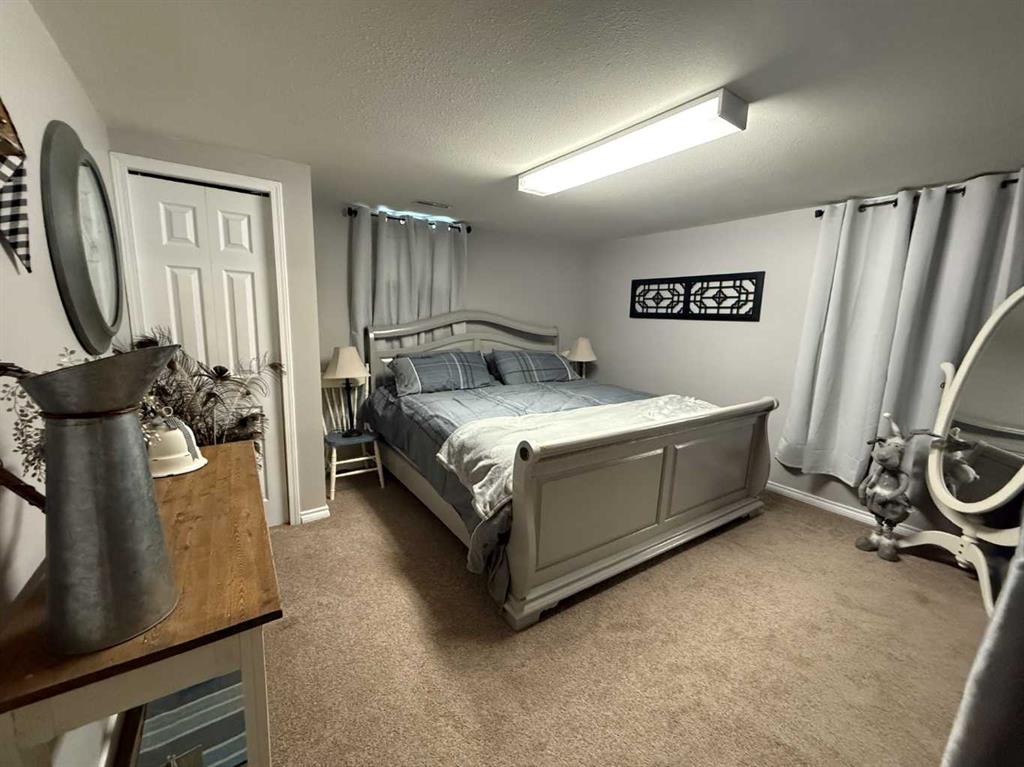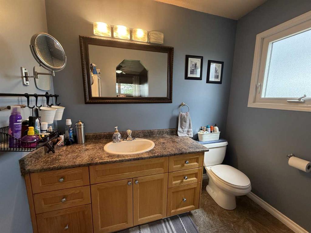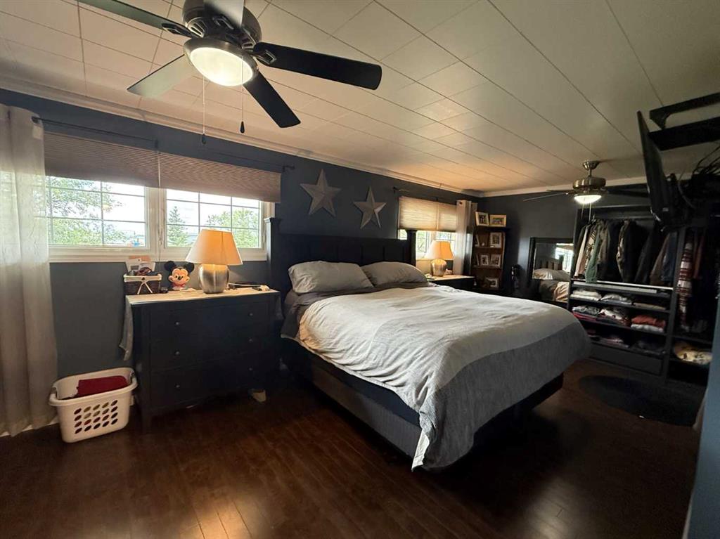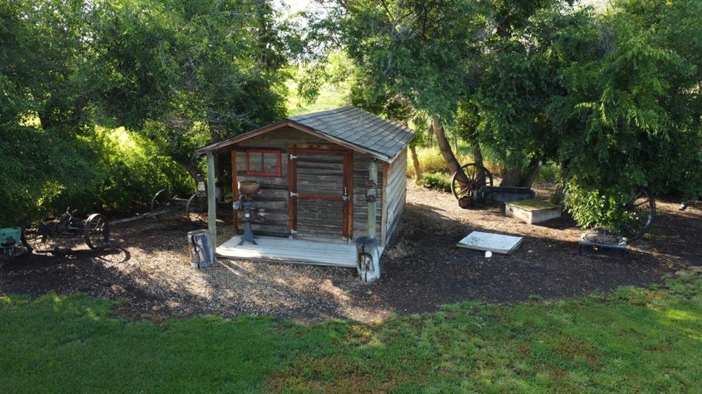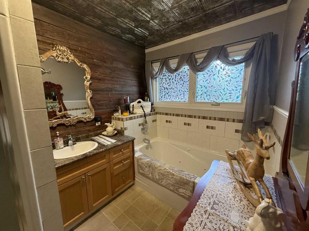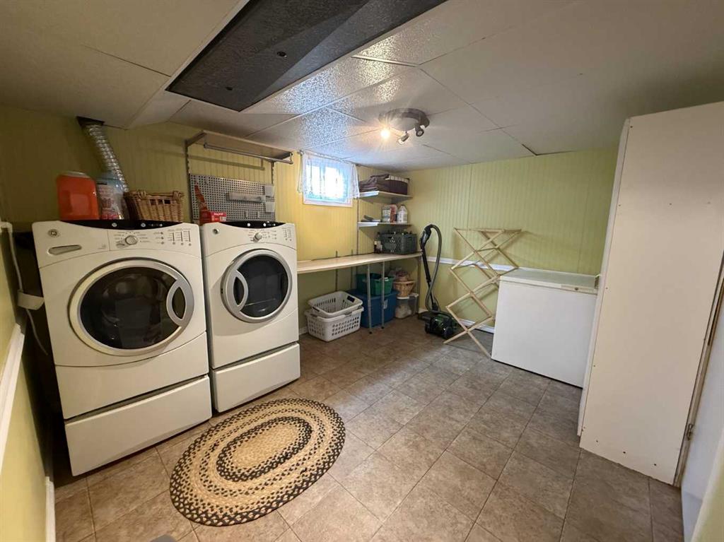Situated on an impressive 1.64 acres within the town of Hanna, this meticulously manicured property offers the best of both worlds—acreage living with in-town convenience. With no neighbors behind (just peaceful farmland views), this one-of-a-kind property is truly a private retreat. Perfect for hobbyists, mechanics, or anyone in need of extra space, this property features a 28x32 double garage, a 49x32 triple garage currently used as a workshop, a charming “she shed”/party shack, and a garden shed tucked at the back for tools and lawn care equipment. There’s also RV parking or space for all your extra toys behind the double garage. Step inside the extensively updated home and be welcomed by a spacious foyer with ample closet space. The main floor boasts a bright, open-concept kitchen designed for entertaining, complete with custom maple cabinetry with cherry accents, a walk-around island, walk-in pantry, and updated patio doors leading to the rear deck. The living room is equally impressive, featuring a cozy wood-burning fireplace set on cottage-style brick and another set of patio doors that open to your front deck—ideal for soaking in both sunrises and sunsets. The main floor also includes a large primary bedroom with a 2-piece ensuite, a second bedroom (currently used as an office), and a 4-piece main bathroom with a jetted tub. Downstairs, you’ll find a spacious family room, two additional bedrooms, a 3-piece bathroom, a large laundry area, and cold storage—plenty of space for the whole family or guests. Additional highlights include town water service with the convenience of a private well for watering the yard, central air conditioning to keep you comfortable all summer long, and thoughtfully curated perennial landscaping that adds color and charm to the yard year after year. Enjoy quiet evenings around the outdoor firepit, host gatherings on your front and back decks, and appreciate the quality craftsmanship and care that has gone into every corner of this home and property. With numerous upgrades throughout—including windows, exterior doors, and mechanical systems—this home is as functional as it is beautiful. This property truly has it all—privacy, space, and luxury—all within the town of Hanna. Whether you're looking to settle down, run a home-based business, or simply enjoy more room to breathe, this is the opportunity you've been waiting for. Call your REALTOR® today to book your private showing. Don’t miss out on this exceptional property!