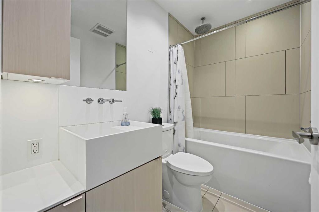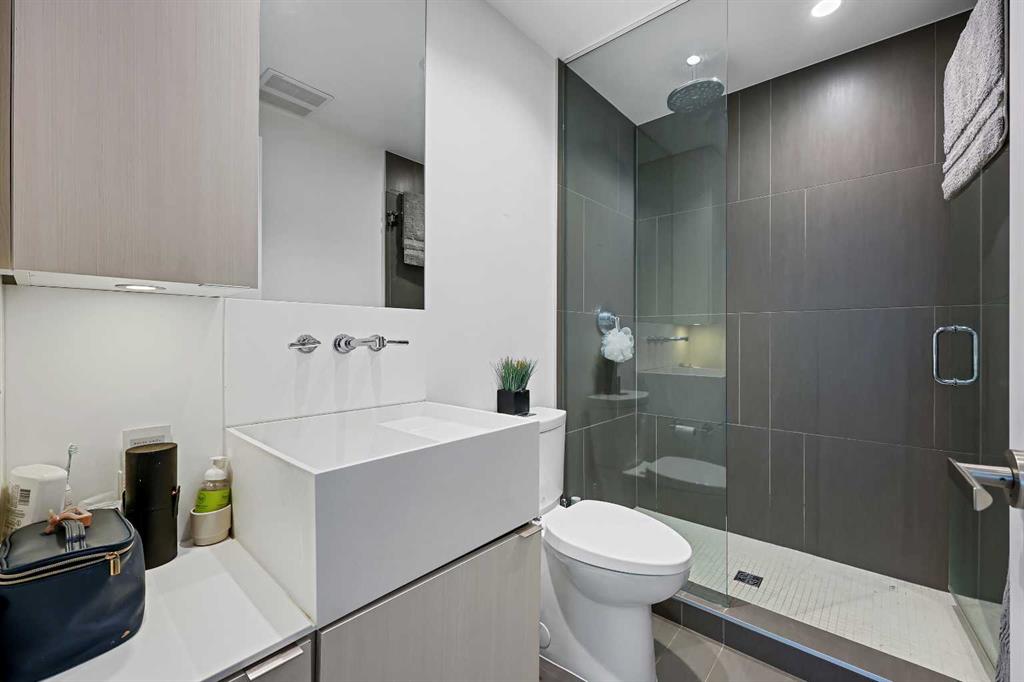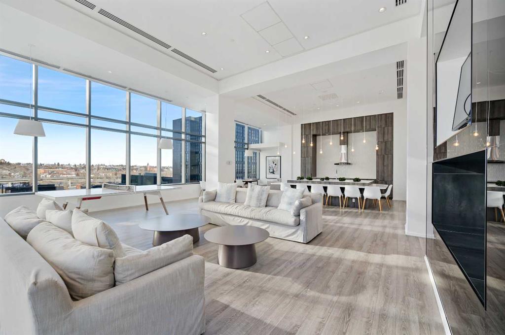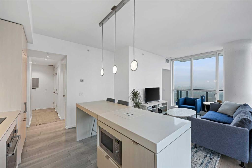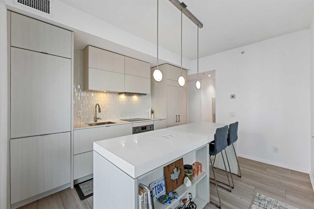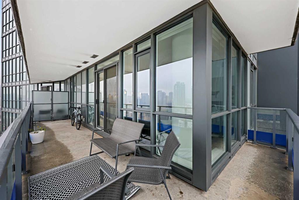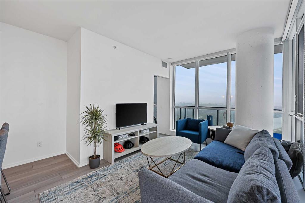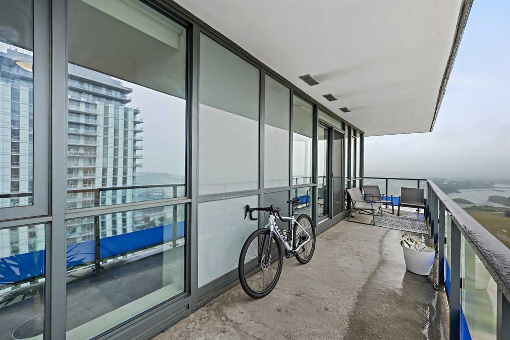 Experience elevated city living in this spectacular 21st-floor corner unit in the Verve, located in the vibrant heart of East Village. With unobstructed southeast views overlooking the Bow River, Fort Calgary, Stampede Park, and downtown skyline, this 2-bedroom, 2-bathroom residence combines location, light, and lifestyle in one of Calgary’s most walkable neighbourhoods. Floor-to-ceiling windows flood the open-concept space with natural light, while the set-back deep windowsills create an expansive, airy feel rarely found in high-rise condos. The 200+ sq ft wraparound balcony invites you to BBQ, lounge, and soak in the panoramic vistas day or night. Thoughtfully designed for comfort and style, the kitchen features sleek cabinetry, quartz countertops, a large island perfect for entertaining, and a built-in electric cooktop. The primary bedroom offers a tranquil retreat with stunning views and a modern 3-piece ensuite, while the second bedroom is ideal for guests, a home office, or den. A spacious 4-piece main bath, in-suite laundry room, and central air conditioning add to everyday convenience. The unit also includes a rare, oversized titled underground parking stall—big enough to fit a truck—and an assigned storage locker. The Verve offers exceptional amenities: a second-floor fitness centre, social lounge with kitchen and terrace, guest suites, and an exclusive 25th-floor rooftop patio and party room with unobstructed views. Perfectly positioned for active professionals, pet lovers, and investors alike. You're steps from the RiverWalk, bike paths, and an off-leash dog park across the street. The Central Library, Superstore, Studio Bell, and a growing list of East Village cafes, restaurants, and breweries are all within a 5-minute walk. Plus, you're in Calgary's free fare LRT zone for stress-free downtown commuting. Whether you're searching for a pet-friendly river-view condo, a modern downtown home with amenities, or a turnkey rental in a high-demand location, this top-floor end unit delivers it all. Don’t miss your opportunity to own one of East Village’s most desirable views. Book your showing today.