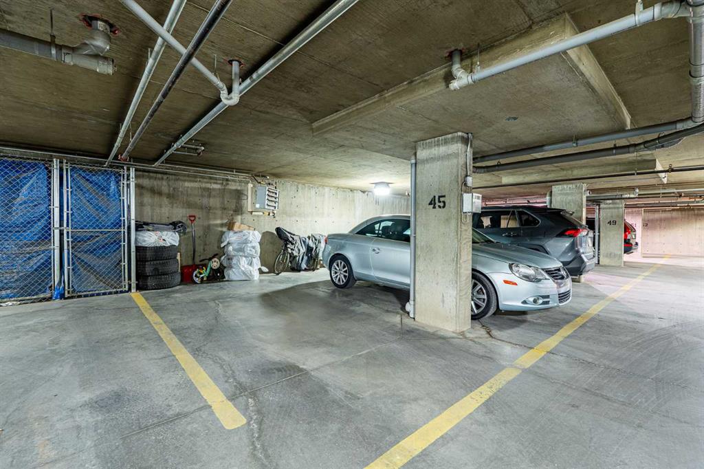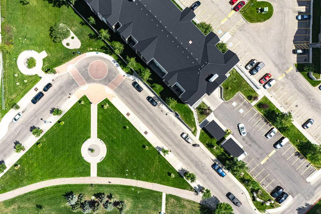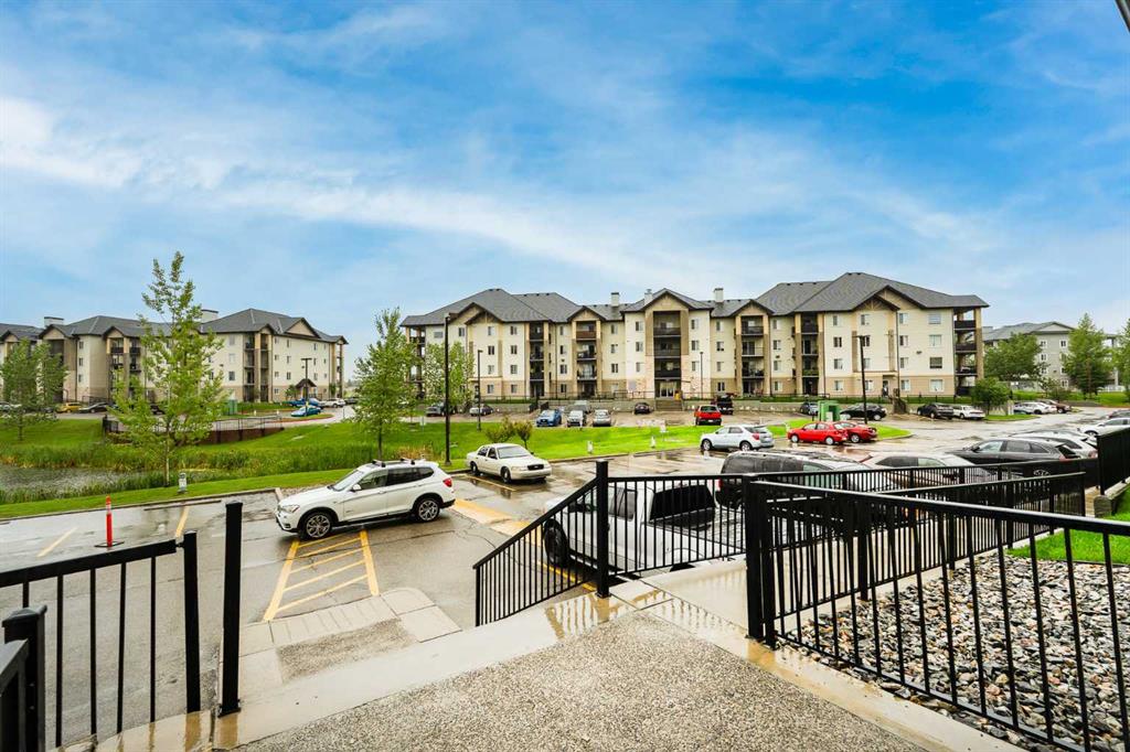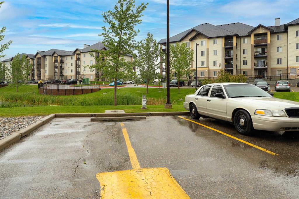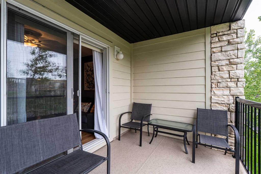 Unique chance! Experience the best of Downtown Airdrie living in this exceptional unit! Boasting 1,055 square feet of meticulously renovated space, this 2nd-floor condo offers an incredible opportunity. From the moment you step inside, you'll be captivated by the abundant natural light streaming through the expansive windows, creating an airy, open feel throughout the day. As one of the largest floor-plans in the entire development, this unit provides generous living and dining areas, seamlessly flowing into a stylish, functional kitchen. Home chefs will appreciate the upgraded wood cabinetry, sleek stainless appliances, and a convenient breakfast bar – perfect for entertaining or casual meals. This thoughtfully designed condo features two spacious bedrooms, including a primary suite with a walk-through closet and a private 3-piece ensuite. A second full 4-piece bathroom and a versatile den (ideal for a home office, gym, or quiet retreat) offer ultimate flexibility. The large living room with a gas fireplace leads to the spacious private balcony with gas barbecue hook ups and a fantastic view of the park! Enjoy the comfort of in-suite laundry and storage! The balcony includes a gas hook up for your BBQ and no building behind you for privacy. Adding to the convenience are two parking stalls: one titled, underground and heated, and another surface stall directly in front of the building. Located in a highly sought-after, well-managed complex with ample visitor parking, you'll enjoy quick access to walking paths, schools, shops, public transit, and major routes. This bright, inviting space is truly a must-see! Schedule your private showing today!
