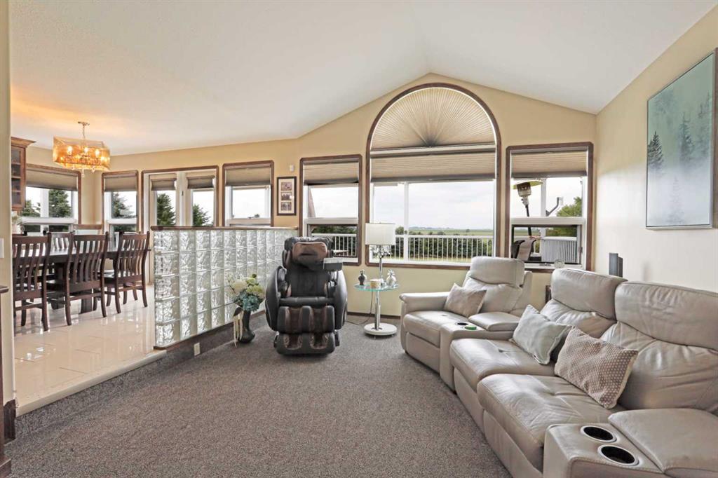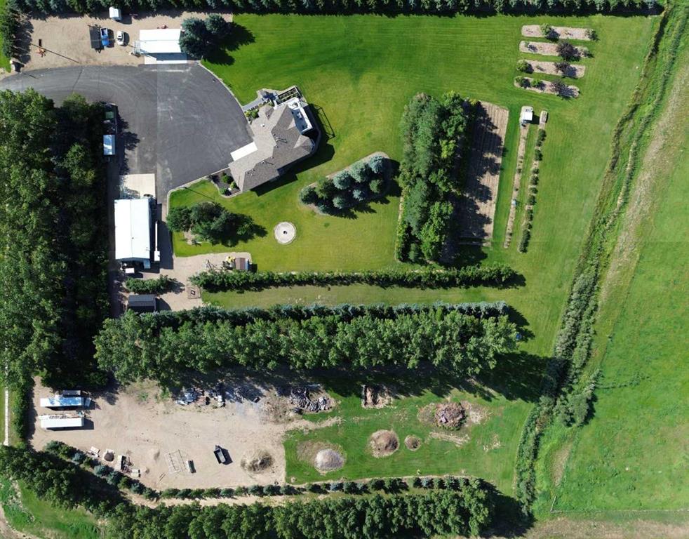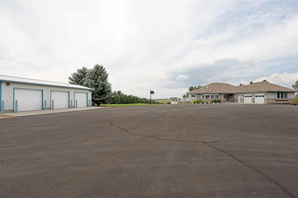 Acreage luxury in Newell County. This pristine acreage offers nearly 7 acres of beautifully maintained land and exceptional living space inside and out. The main floor features a spacious primary suite filled with natural light, complete with a 4-piece ensuite and a generous walk-in closet. A second bedroom includes a built-in Murphy bed, perfect for guests or flexible use, the main floor also has a large office ideal for working from home. The main level contains a second 4-piece bathroom, and the double attached garage includes a convenient 2-piece bathroom. The chef’s kitchen boasts high-end finishes and modern design. The well appointed dining area opens to a large deck that overlooks the peaceful backyard—perfect for entertaining or enjoying the serenity of the property. Downstairs, the fully finished walk-out basement includes a second full kitchen, three additional bedrooms, including one with its own 4-piece ensuite, and another full bathroom. Step out onto the covered patio and take in the expansive views of the acreage. Outbuildings include a large heated shop with a bathroom and hoist, ideal for projects or hobbies, and a detached triple car garage offering even more space for vehicles and storage. This property is loaded with high-end features designed for comfort, convenience, and peace of mind. The home boasts two garburators in the upstairs kitchen, set into durable Koehler cast iron sinks, with solid oak custom cabinetry, quartz countertops up and down, a built-in appliance pantry, and a dedicated food pantry. Multiple oak built-ins can be found throughout the home, adding both beauty and function. The mechanical systems are equally impressive, including a boiler system with in-floor heating in the basement and heated double car garage. Water is supplied by town water dripping into a cistern, complemented by EID irrigation water with an automatic sprinkler system across the main yard, plus fire protection irrigation along the highway frontage with strategically placed firehose access points throughout. A well is also available for utility use. Additional highlights include permanent exterior lighting for year-round enjoyment, central vacuum systems on both levels, and in-floor heating in the shop with its own boiler system, water softener, and a built-in vacuum system ideal for woodworking projects. This acreage also features a revenue-generating gas well, providing the owner with ongoing passive income. This is an exceptional opportunity to own a turnkey rural property with room to grow, work, and enjoy the outdoors—just minutes from Duchess and Brooks.