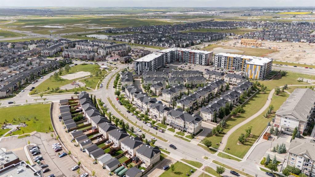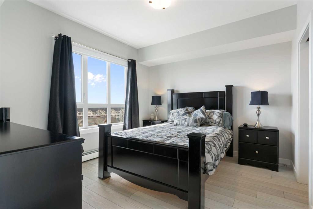 Open House October 4th from 1-3PM. Welcome to this stunning penthouse-level condo in the heart of Skyview Ranch, one of NE Calgary’s most sought-after family-friendly communities. This bright and spacious top floor 2 bedroom, 2 bathroom unit offers the perfect blend of comfort and style, ideal for first-time buyers, downsizers, or savvy investors. Step into an open-concept living space featuring a modern kitchen with sleek cabinetry, luxury wide plank flooring, quartz counters, a generous eat in breakfast bar, and plenty of room to entertain. The large west facing windows bring in natural light, creating a warm and inviting atmosphere. The generous primary bedroom includes a private 3 piece ensuite and a walk thru closet, while the second bedroom is perfect for guests, kids, or a home office. Completing this unit is an oversized west facing balcony with stunning views of downtown and the mountains. Additional features include in-suite laundry, dedicated underground parking, and access to nearby walking paths, parks, schools, and shopping. With easy access to major routes and transit, commuting is a breeze. Don’t miss your chance to own this top-floor gem in a growing and vibrant neighborhood!