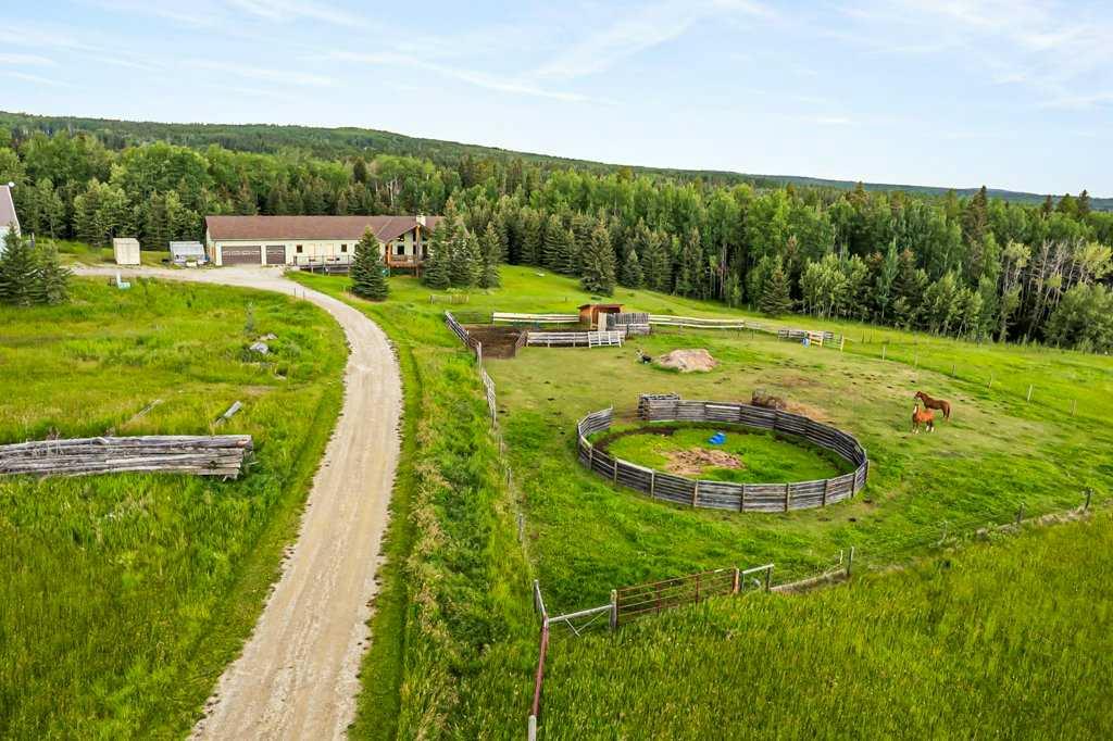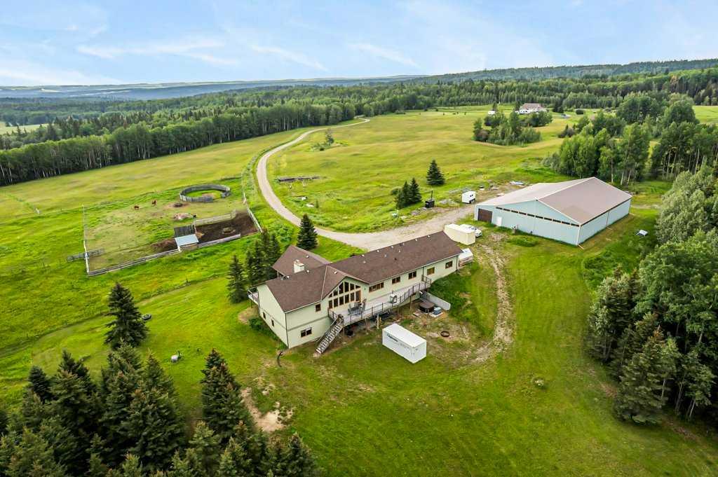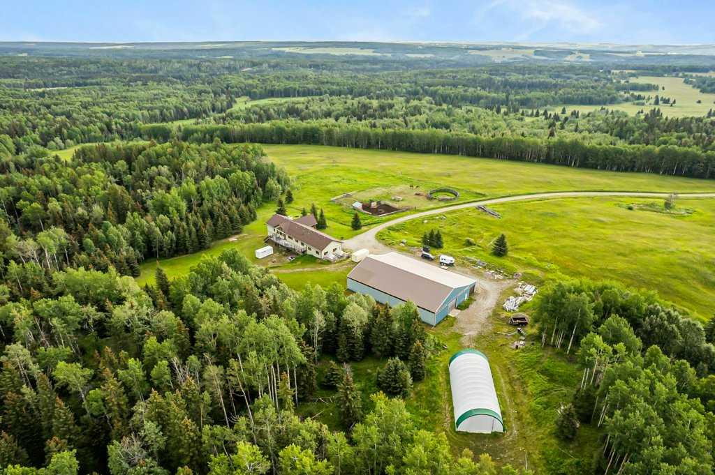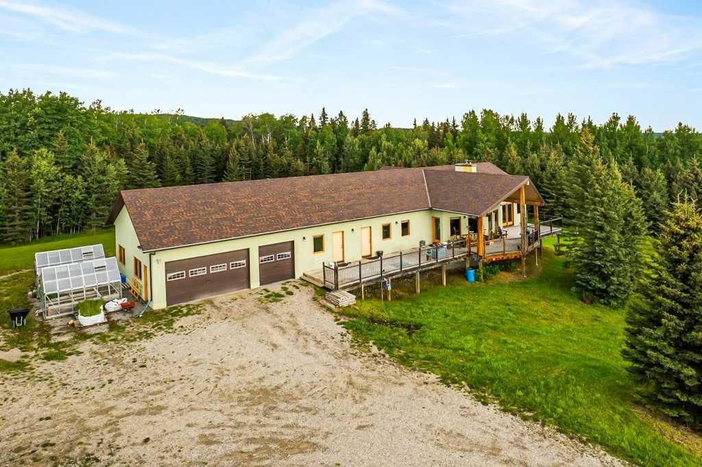 Stunning location just 10 minutes west of Water Valley. This beautiful 150-acre fenced and gated property offers a rare blend of open pasture, spacious yard, and dense forest with meandering creeks, creating an ideal setting for nature lovers, hunters and horse enthusiasts alike. The property includes a MASSIVE 100’ x 75’ INDOOR RIDING ARENA with a full-length 16’ side storage area along the east side—perfect for equipment, tack, and feed. Approximately 50 acres are dedicated to hay and pasture, while the balance is mature forest, offering privacy and recreational opportunities. North boundary is country grazing land and crown land is close by. Set up for a few horses with corrals and a round-pen. The unique 2,571 square foot walkout bungalow features vaulted ceilings and warm fir finishing throughout. The open-concept main living space includes a wood-burning stove, a huge kitchen ideal for gatherings, and a cozy family room perfect for relaxing. The spacious primary suite is located just off the living area and boasts a luxurious ensuite with a freestanding tub, dual vanities, water closet, brand new shower, wet sauna, and an expansive walk-in closet with custom cabinetry. The main floor also includes a second living area, flex space that was previously a second kitchen (see photos easily could be a second bed or office) and a convenient laundry room complete with a full bathroom, utility sink, and a shower that is also handy as a dog wash station. The bright and spacious lower walkout level includes a large living and recreation room, a full second kitchen, two generous bedrooms, a newly finished four-piece bath, another laundry station, plenty of storage, and a beautiful office with built-in cabinetry—ideal for working from home or another massive bedroom. Such a great space for multi-generational living or additional income. The centre piece of the lower level is a cast iron, top of the line HERGOM oven with a glass cooktop. Additional features include a heated triple attached garage, 30'x65' tarp storage building, BACK UP natural gas generator, two greenhouses for gardening, wood boiler system for the house in-floor heat and a massive west-facing deck to enjoy summer evenings. This exceptional property must be seen to be truly appreciated. Book your showing today!