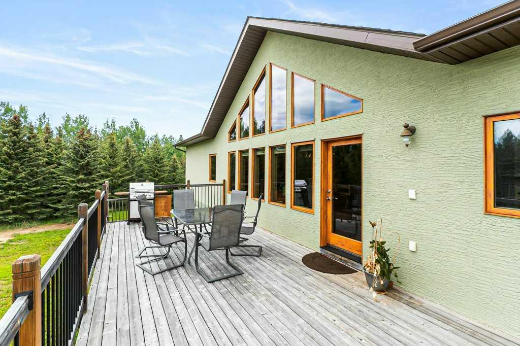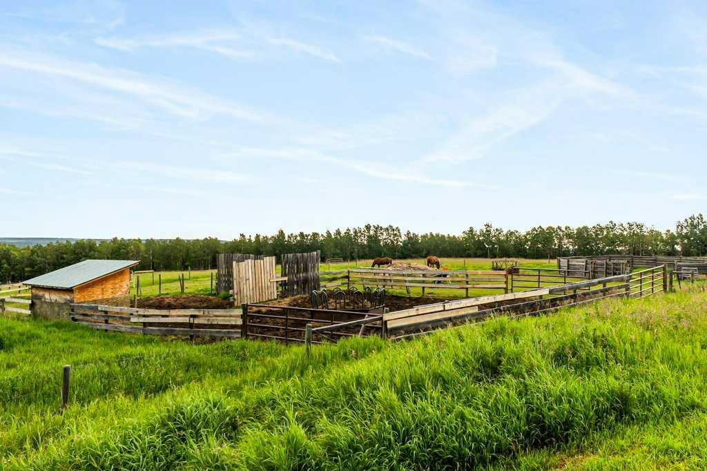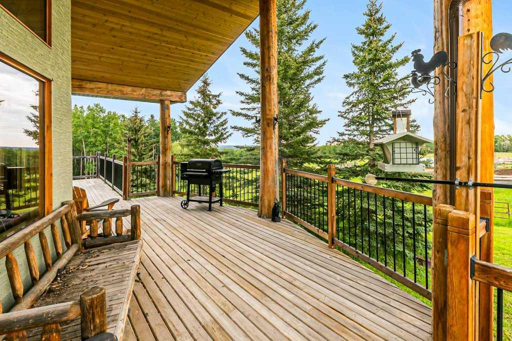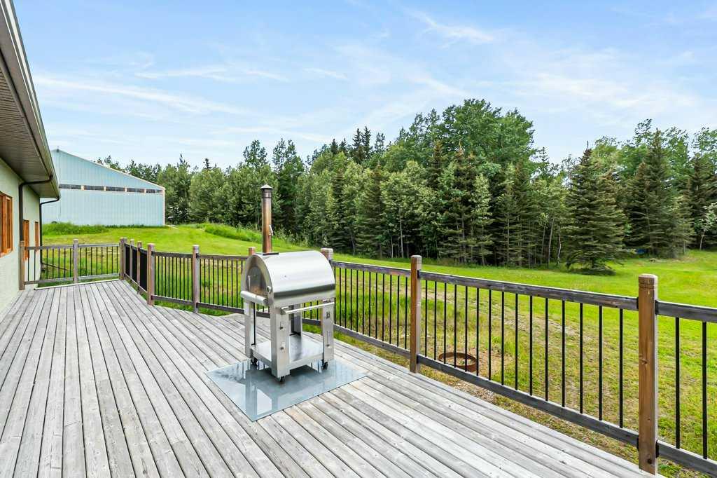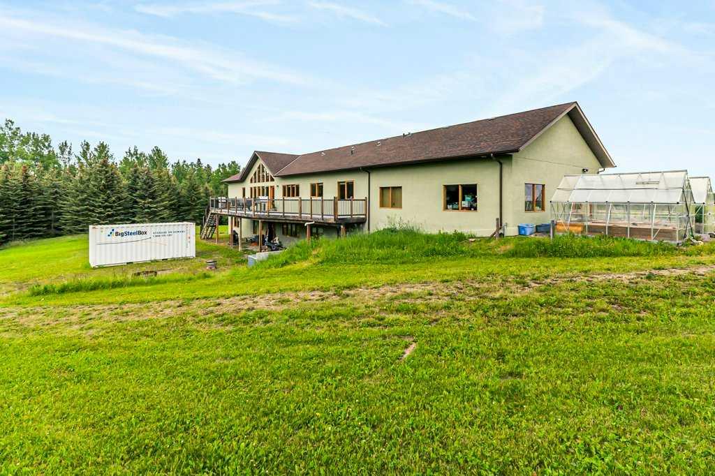 Stunning location just 10 minutes west of Water Valley. This beautiful 150-acre fenced and gated property offers a rare blend of open pasture, spacious yard, and dense forest with meandering creeks, creating an ideal setting for nature lovers, hunters and horse enthusiasts alike. The property includes a MASSIVE 100’ x 75’ INDOOR RIDING ARENA with a full-length 16’ side storage area along the east side—perfect for equipment, tack, and feed. Approximately 50 acres are dedicated to hay and pasture, while the balance is mature forest, offering privacy and recreational opportunities. North boundary is country grazing land and crown land is close by. Set up for a few horses with corrals and a round-pen. The unique 2,571 square foot walkout bungalow features vaulted ceilings and warm fir finishing throughout. The open-concept main living space includes a wood-burning stove, a huge kitchen ideal for gatherings, and a cozy family room perfect for relaxing. The spacious primary suite is located just off the living area and boasts a luxurious ensuite with a freestanding tub, dual vanities, water closet, brand new shower, wet sauna, and an expansive walk-in closet with custom cabinetry. The main floor also includes a second living area, flex space that was previously a second kitchen (see photos easily could be a second bed or office) and a convenient laundry room complete with a full bathroom, utility sink, and a shower that is also handy as a dog wash station. The bright and spacious lower walkout level includes a large living and recreation room, a full second kitchen, two generous bedrooms, a newly finished four-piece bath, another laundry station, plenty of storage, and a beautiful office with built-in cabinetry—ideal for working from home or another massive bedroom. Such a great space for multi-generational living or additional income. The centre piece of the lower level is a cast iron, top of the line HERGOM oven with a glass cooktop. Additional features include a heated triple attached garage, 30'x65' tarp storage building, BACK UP natural gas generator, two greenhouses for gardening, wood boiler system for the house in-floor heat and a massive west-facing deck to enjoy summer evenings. This exceptional property must be seen to be truly appreciated. Book your showing today!