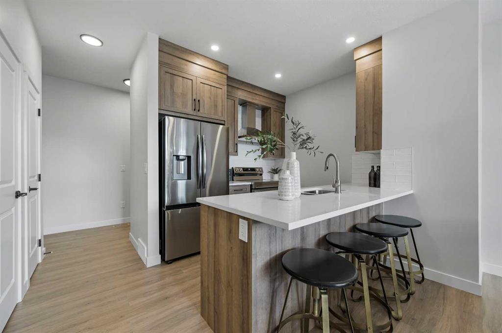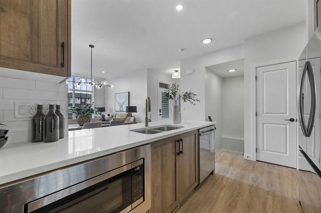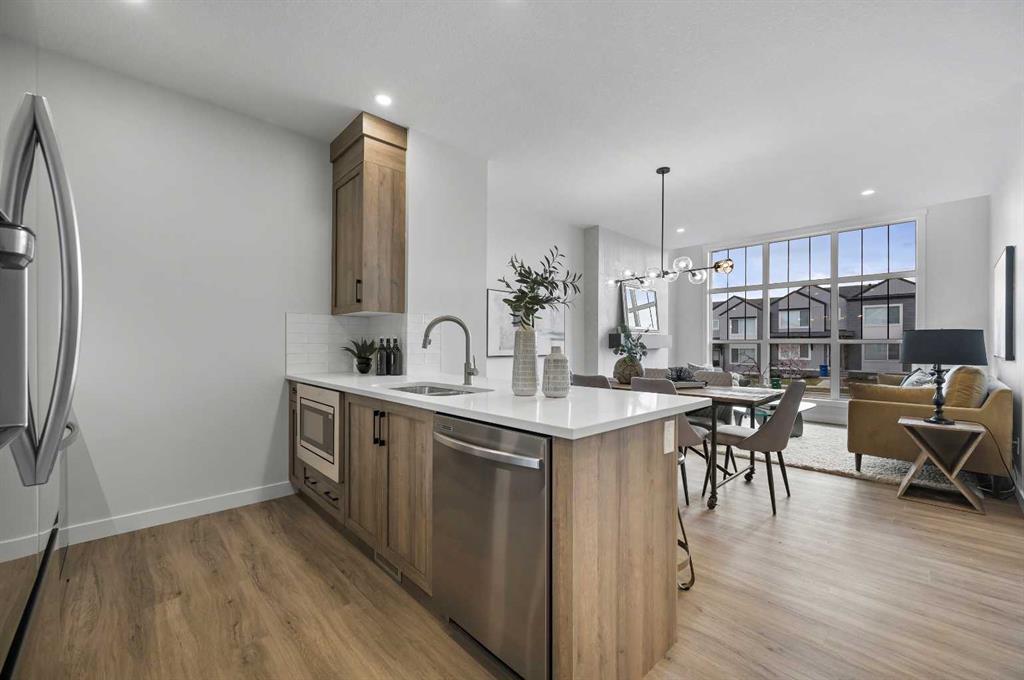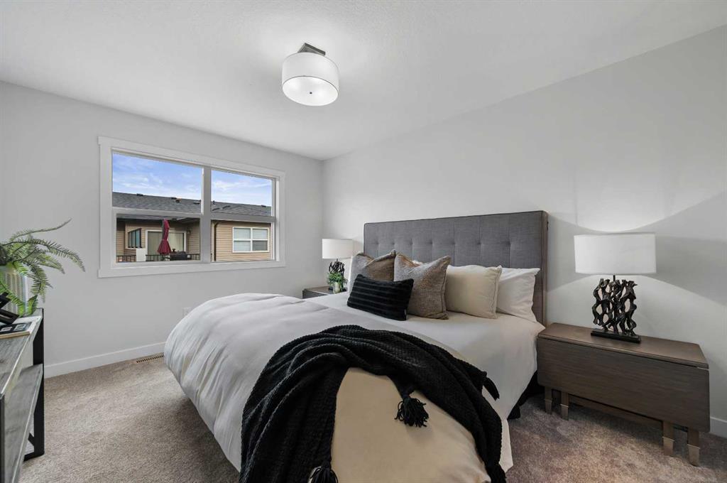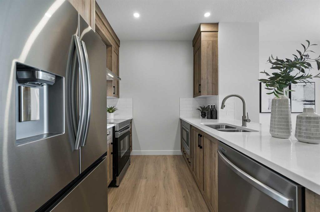 Genesis Builders introduces a new product - street-side luxury townhomes with NO CONDO FEES! The Opal spec townhome offers an attached double garage with rooftop patio and offers low-maintenance living. The thoughtfully designed home offers over 1400 sq ft. plus an unfinished basement with 9' ceilings, ready for your ideas. On the main floor, you will find soaring 10’6 ceilings in the open-concept living space and large windows allowing natural light to flow through the space. The chef-inspired kitchen offers sleek cabinetry and stone counters and is well-equipped with stainless steel appliances. The kitchen is open to the dining and living room, which is perfect for entertaining family and friends or keeping a watchful eye on the kids. Complimenting the main floor is a convenient half bath and mud room off the attached 20 x 22 garage. Venturing upstairs, you will find a spacious primary retreat with a spa-like ensuite featuring a tiled shower and a lovely walk-in closet. Two additional bedrooms, a full bath, a flex room, a 4-piece bath and laundry complete the upper level. Enjoy spending time on your upper rooftop patio, which is situated above the garage and is an excellent space for entertaining. Bayview is a beautiful community with parks, benches and pathways that meander throughout the community and along the canals. Kids and adults alike will enjoy the outdoor basketball nets, gym, amphitheatre and tennis courts that will convert into a skating rink in the winter. Come and see all the amenities that the community has to offer for yourself! Area size was calculated by applying the RMS to the blueprints provided by the builder.