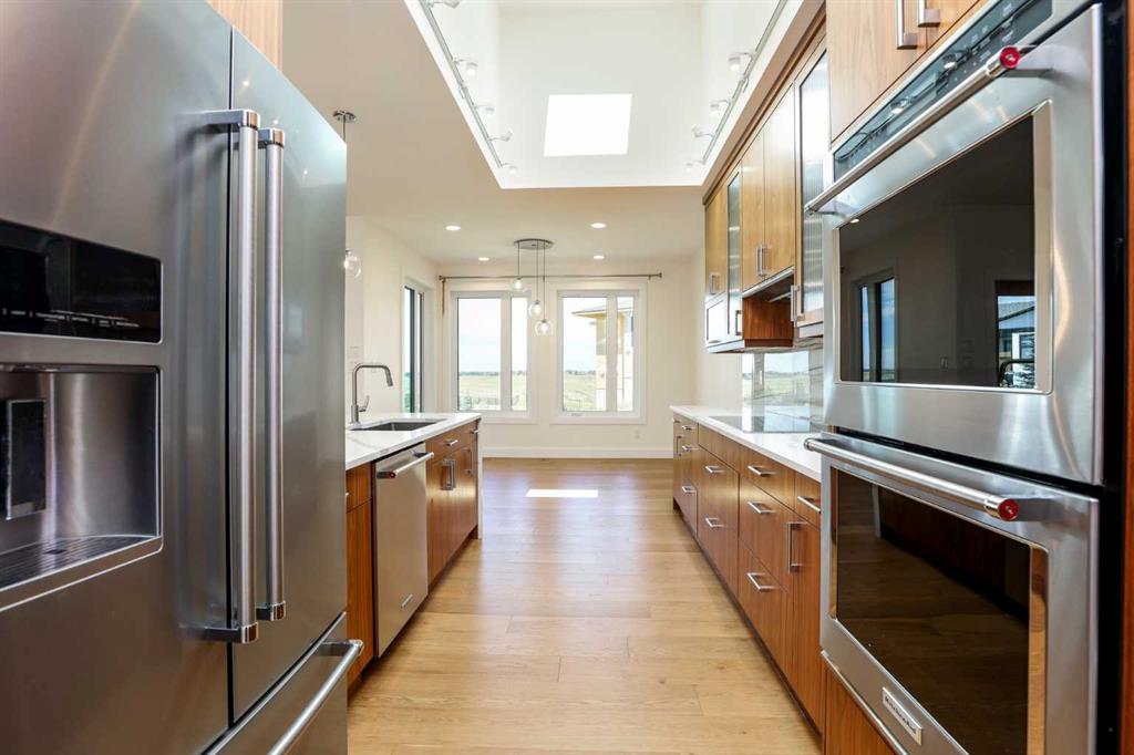Welcome to this beautifully designed executive bungalow in desirable Gold Canyon Estates. Set on a spacious lot with coulee views, this home offers an impressive blend of style, comfort, and function. Enjoy the expansive backyard, oversized triple garage, and plenty of parking space for guests or recreational vehicles. Inside, the thoughtful layout features an open, airy main floor flooded with natural light from numerous skylights. The wide hallways, no-step entryways, and seamless flow from the front door to the luxurious primary suite enhance day-to-day convenience for all residents. The basement includes generously sized bedrooms with oversized window wells that provide ample natural light. Additional highlights include a full exterior surveillance system with monitor, three wall-mounted garage door openers, and extra garage space for a workshop or additional storage. With its quality finishes and elegant design, this home is a rare find in a premier location.