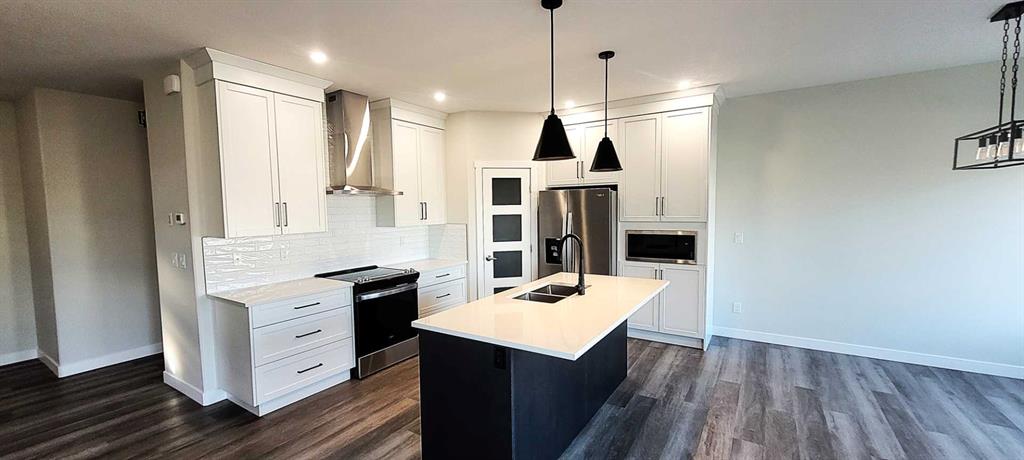 THIS NEW BUILD TWO STOREY WITH UPPER LEVEL BONUS ROOM HAS SOME EXCITING UPGRADES! A stunning home with EXCEPTIONAL CURB APPEAL situated in the much sought after SUBDIVISION OF EVERGREEN designed for peace and tranquility with a water feature and an extensive green space for trails, biking and walking! Evergreen has that country feel tucked away from hustle and bustle and surrounded by fields with just a five minute drive north to the Riverbend Golf and Recreation Center and the Red Deer River walking trails. Welcome to this GORGEOUS HOME with 9FT CEILINGS on the main level flowing through to the EAST FACING LIVING/DINING/KITCHEN with an ATTRACTIVE LIVING ROOM FIREPLACE WITH A FLOOR TO CEILING FULL STONE SURROUND! The DREAM KITCHEN features UPGRADED WHITE CABINETRY ELEVATED TO CEILING HEIGHT, Quartz Countertops, Center Island with Extended Breakfast Bar, Walk-In-Pantry and All Stainless Steel Appliances (Fridge with Water, Wall Mounted Range Hood and an Upgraded 'In-Cabinet' Installed Microwave are included)! An adjoining good sized DINING AREA with a garden door leads out to the EAST FACING DECK with metal railings! A SEPARATE LAUNDRY ROOM and a 2 PCE BATH complete the main level! Upstairs we have the BONUS ROOM, the PRIMARY BEDROOM with a MAGNIFICENT OVERSIZED WALK IN CLOSET and a 3 PCE ENSUITE with dual sinks, quartz countertops, tile floor and 5 ft shower with full tile surround. Next to that the spacious two secondary bedrooms and the main 4 pce bath with quartz countertop and tile floor. This gorgeous home has an UPGRADED GARAGE DOOR and the INSIDE OF THE GARAGE IS COMPLETELY FINISHED TO PAINT GRADE! The basement is open for development with ROUGHED IN INFLOOR HEAT! The Annual HOA Fee for 2026 is at $130 + gst $136.50).... TAXES NOT YET ASSESSED....