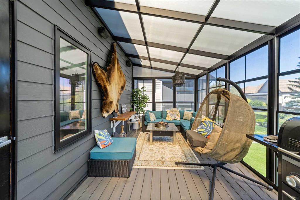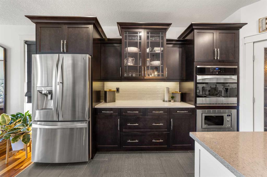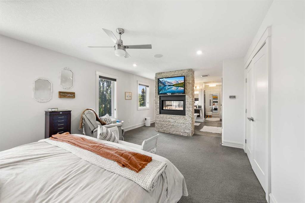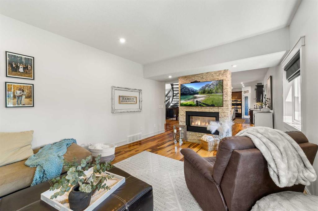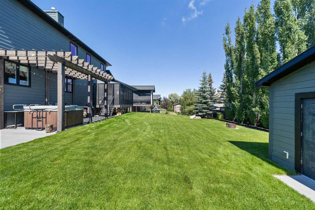 Welcome to this exceptional 5-bedroom luxury home, located on Harrison Green in the Olds Highlands. Situated on a generous lot with a beautiful central green space right out front, this property blends high-end finishes, thoughtful design, and an unbeatable location in one of Olds’ most desirable neighborhoods. From the moment you enter, you're greeted by a grand open staircase and elegant features throughout. The chef’s kitchen is the heart of the home—perfectly designed for entertaining and everyday living—with a large center island, full-size stove, wall oven and microwave, pot filler, wine fridge, and ample work space. There's also plenty of room for a large dining table, making it ideal for hosting family gatherings and dinner parties. Beside the dining area, a cozy, tucked-away family/TV room offers a perfect spot to unwind, separated by a double-sided fireplace that adds warmth and ambiance to both spaces. Enjoy total comfort in the 3-season east-facing enclosed patio room, perfect for morning coffee or evening relaxation. Step outside to a beautifully landscaped yard with a hot tub, rear shed with power, and a full irrigation system keeping the lawn green and lush. All five bedrooms feature walk-in closets, and the primary suite is a true retreat with a spa-inspired ensuite, including a freestanding tub and a double-sided fireplace shared with the bedroom—offering the perfect blend of comfort and luxury. The fully finished basement features in-floor heating, wet bar, a home theatre, and two large bedrooms—perfect for teenage children, guests, or visiting grandchildren needing space and privacy. Car lovers and hobbyists will appreciate the heated 4-car garage, complete with in-floor heat, a car hoist, air compressor with air lines throughout, and plenty of space for vehicles, tools, and toys. Additional highlights include a reverse osmosis water system, upgraded lighting, and premium finishes throughout. Don’t miss out on this incredible property that offers luxury, comfort, and room to grow in a prime location.