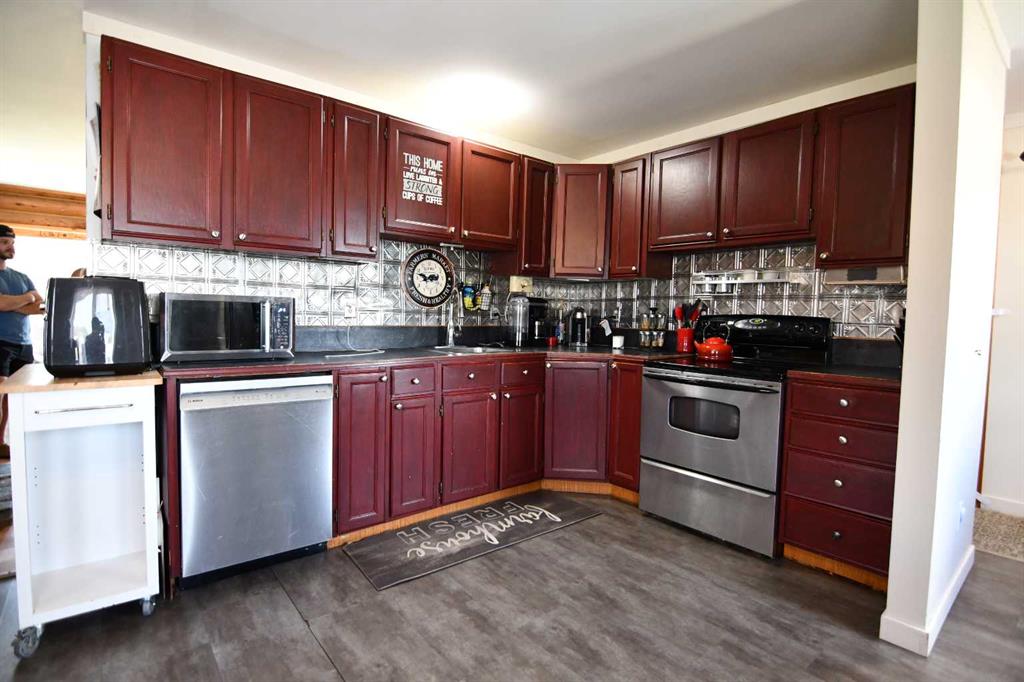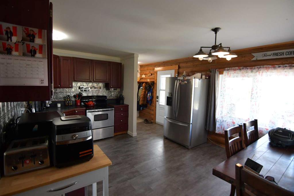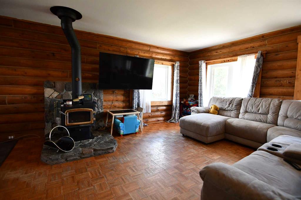 Welcome Home! This property with a 4-bedroom log home located just a few miles from the friendly town of Veteran offers a peaceful and rural lifestyle. This home has seen many upgrades over the years, the latest being new windows and shingles. The yard is well sheltered and with the wood stove, this home screams COZY (Especially at Christmas) Two bedrooms up, large kitchen, two bedrooms down with a large living room makes this home an ideal family home and provides rural living on a friendly budget.