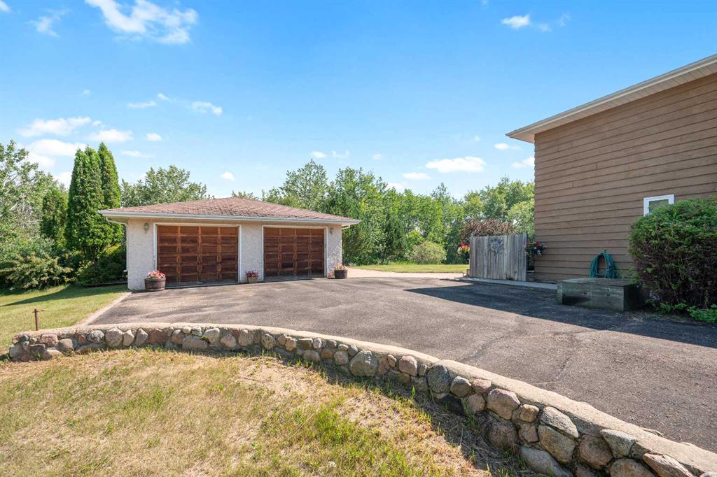 THIS IS THE ONE YOU HAVE BEEN WAITING FOR.... Super clean home with a lot of space or your family, and tucked within one of the nicest acreage subdivisions near Lloydminster- Huge added benefit with a double attached garage and an detached oversized 28' by 28' garage. No gravel to drive getting to this acreage- pavement and hard surface roads all the way. This mature yard gives privacy where some newer acreages may lack- you will love the space, you will love the lifestyle and the mature tree lined property. If you desire a quiet, relaxing place to raise your family, then you will want to visit this property. There is no deferred maintenance here, there are three bedrooms on the upper level and 2 bathrooms and 2 bedrooms on the lower level. There is a 1/2 bath on the second level and a walk-through access to the outside. The main floor has a wood burning fireplace in the living room, breakfast eating area that leads to a deck, nice kitchen and a formal dining room...The Shingles on the home are approx. 8 years old, the home features an upgraded railing, some newer windows, newer furnace and a Rinnai on demand hot water system. You will not find a better acreage in this price range!!