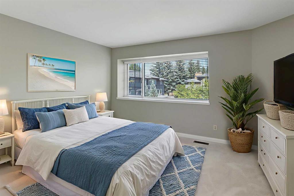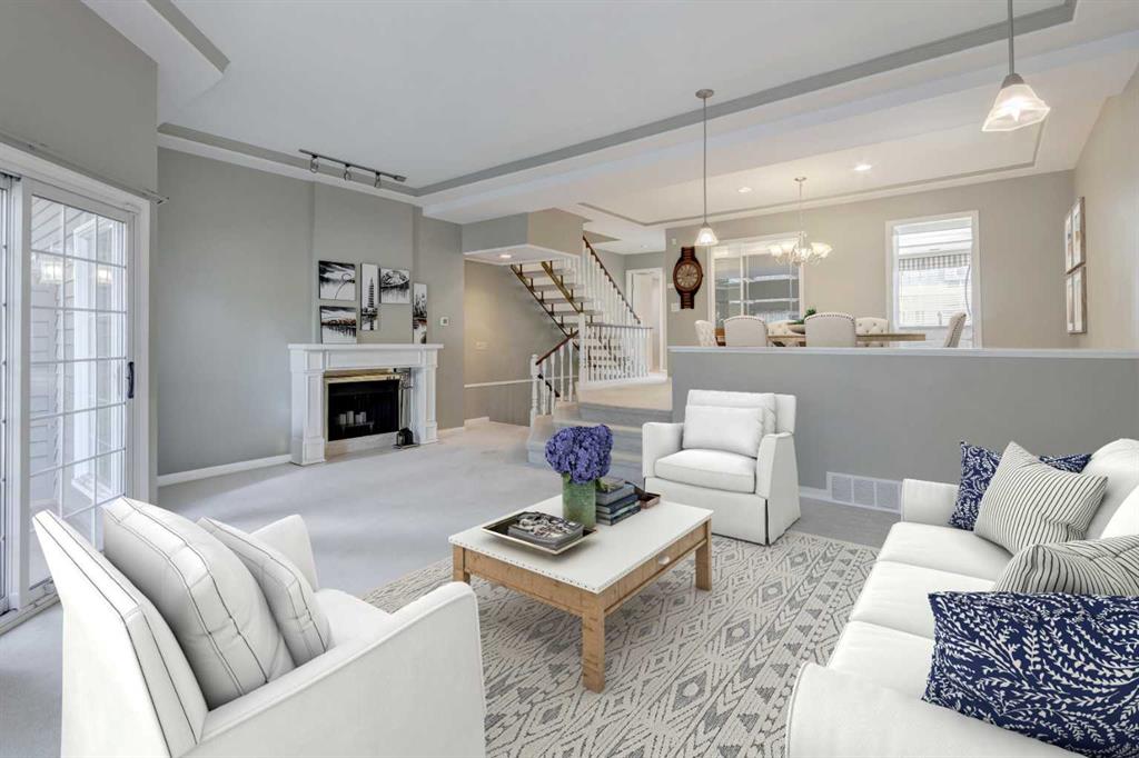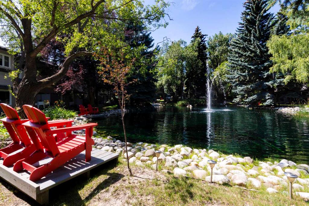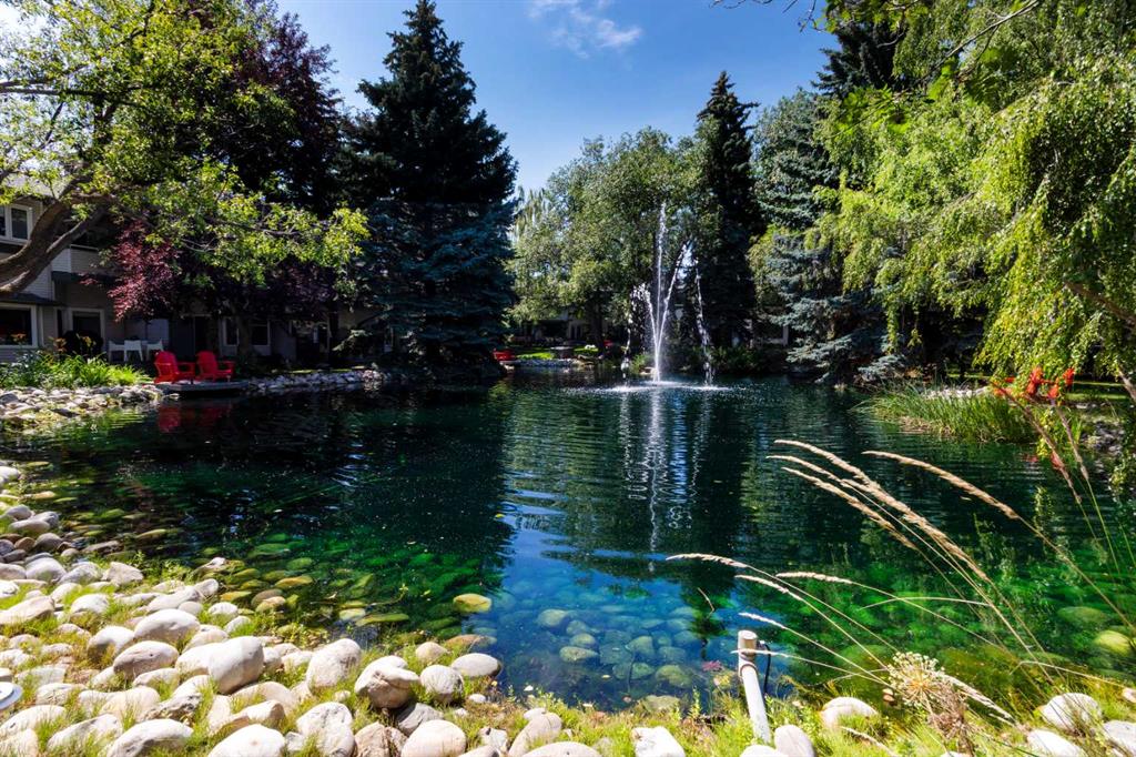 REVISED PRICE TO SELL - END unit with a POND location - this updated charming townhouse features close to 2000sq ft on 3 levels, plus 2 generously sized bedrooms. As you enter the home, you are greeted by an open foyer that leads you to the main level. Main level floor plan impresses - spacious living room with elegant wood burning fireplace, 10ft ceilings, large windows and access to the NEW deck - fully fenced it provides an idyllic outdoor entertainment area backing onto the pond with fountains. The living room is open plan to the dining area that features a built-in buffet area with wood slab countertop and sink. The kitchen was upgraded by the previous owner and includes Wolf appliances, new dishwasher, lots of storage and a bright breakfast nook area. A upgraded 1/2 bath completes this level. The Upper floor features new carpet, a loft/flex/office space with balcony that overlooks the pond area, a generous Primary suite with two closets and spacious ensuite complete with newer Toto toilet. A second bedroom offers a generous space and a full bathroom with skylight completes this level. Walkout basement features utility room with newer washing/dryer, storage and is connected to the Tandem heated attached garage (fits 2 cars). Situated in the desirable community of Varsity, this townhouse not only offers a comfortable living space but also provides access to a wealth of amenities including nearby shopping and parks, University District, U of C, Children's & Foothills Hospitals, LRT plus walking distance to Market Mall.