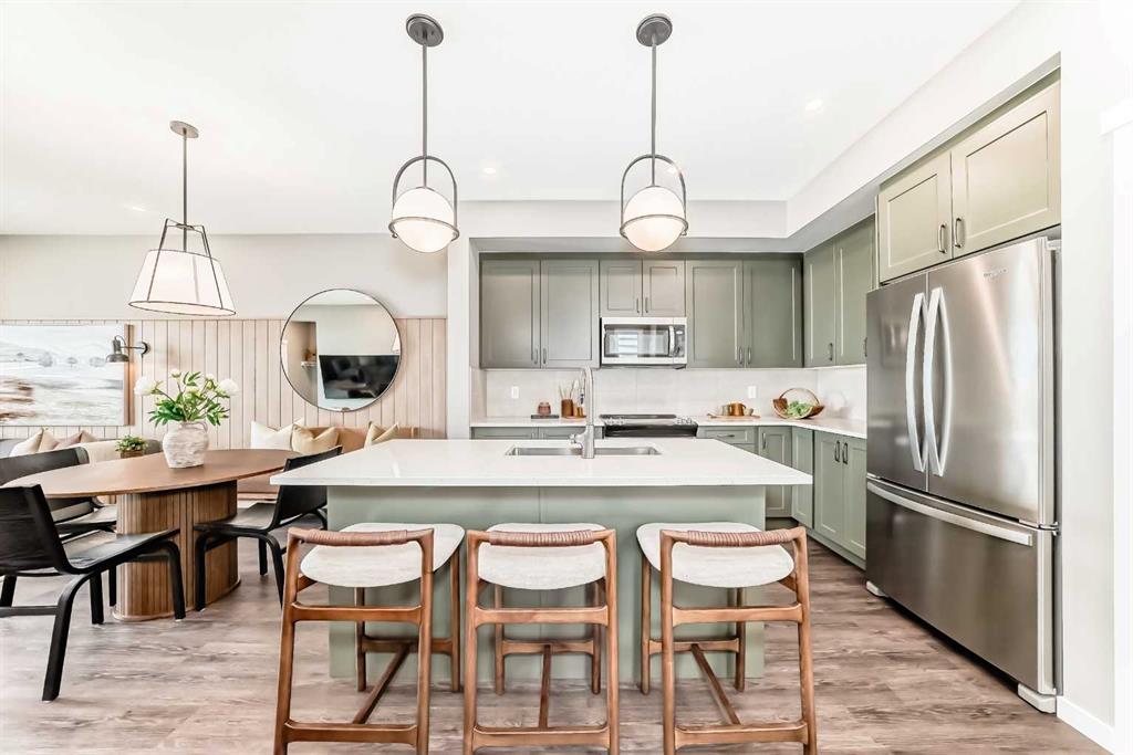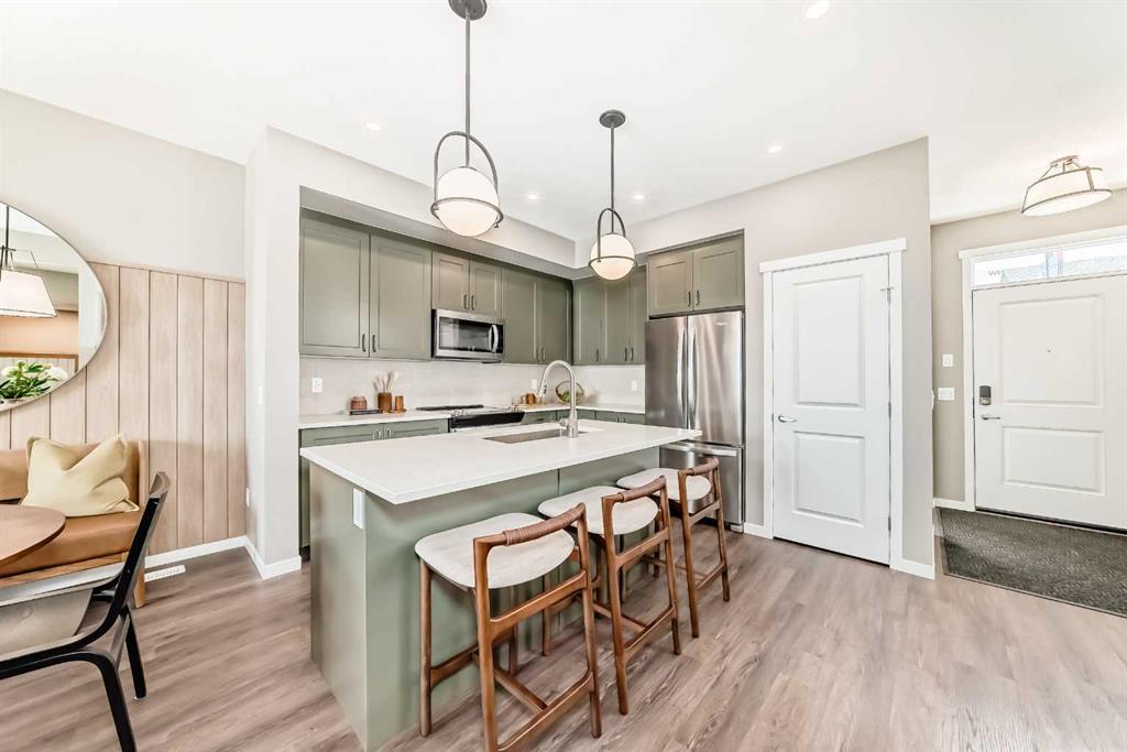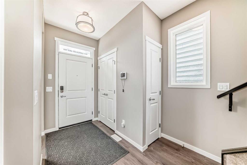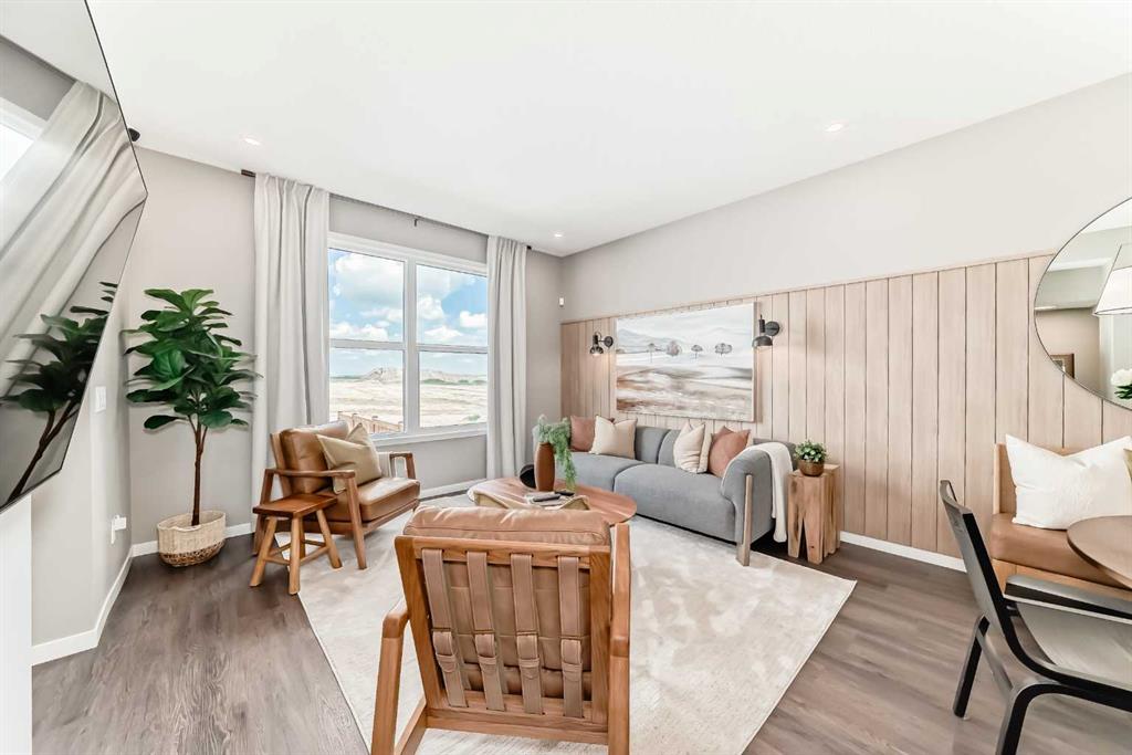 Welcome to this beautifully designed showhome in Airdrie’s sought-after Sawgrass Park community. This leaseback opportunity not only offers a smart investment but a home loaded with premium upgrades and thoughtful finishes throughout. The main floor features an open-concept layout anchored by an elegant L-shaped kitchen complete with quartz countertops, stainless steel appliances, an over-the-range microwave, and rich cabinetry. A cozy dining area and stylish living space offer the perfect place to gather, while the dedicated pocket office provides a quiet nook for remote work or organization. Upstairs, you’ll find three spacious bedrooms including a serene primary retreat with a walk-in closet and a luxurious 4-piece ensuite featuring dual vanities and a walk-in shower. The upper-level laundry adds everyday convenience, while the stained spindle railing adds a classic touch to the staircase. Additional upgrades include luxury vinyl plank flooring throughout the main level, upgraded carpet on the upper level, triple pane windows, air conditioning, knockdown ceilings, and a 9' foundation in the basement with developed stairs and a separate exterior entrance. The unfinished basement offers future development potential with plumbing rough-ins already in place. Outside, enjoy the curb appeal of durable Hardie board siding, low-maintenance landscaping, gemstone soffit lighting, a 20’ x 21’ garage-ready concrete parking pad, an 8’ x 10’ wood deck, and an exterior gas line ready for your future BBQ setup. Whether you’re looking for a stunning place to call home down the road or a turnkey investment today, this Hopewell Residential showhome leaseback is an opportunity not to be missed.