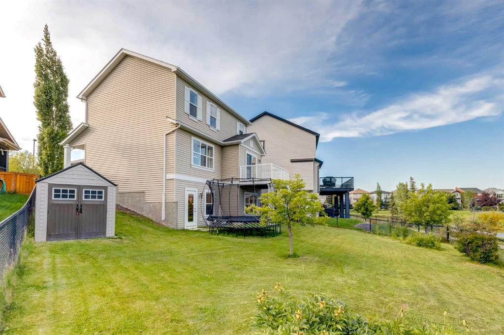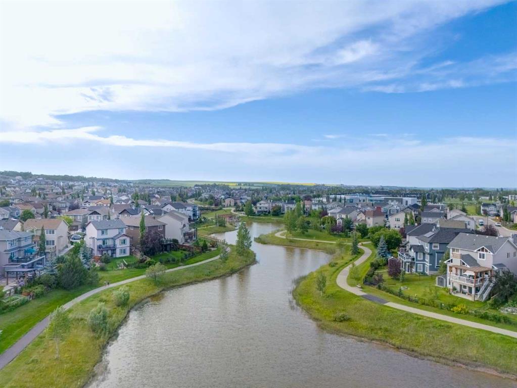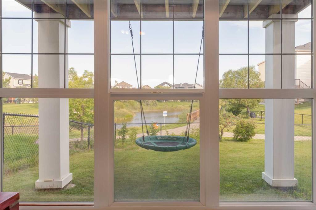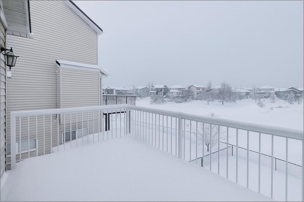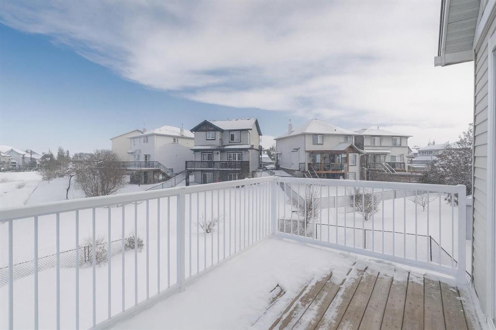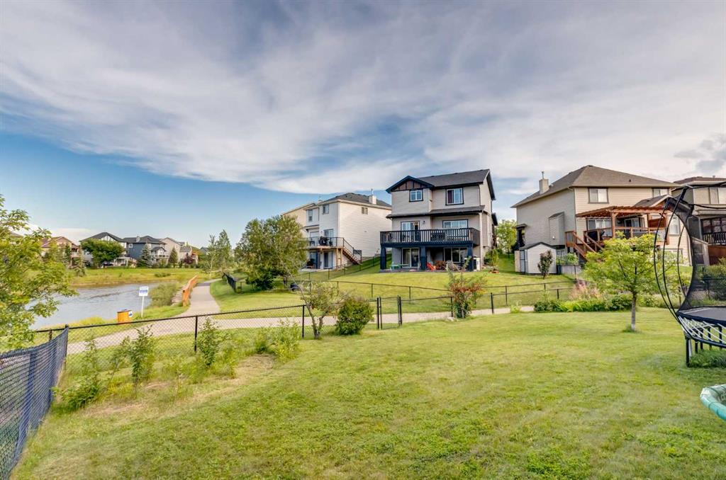 **Walkout Home Backing onto Pond & Pathways | Almost 2,300 Sq Ft of Living Space ** Welcome to this beautifully situated 2-storey walkout home, tucked away in a quiet cul-de-sac in Airdrie. Set on a spacious pie-shaped lot, this property backs onto serene walking paths and a picturesque pond—perfect for those who love peaceful views and easy outdoor access. With almost 2,300 sq ft of well-designed living space, the main floor features an open-concept layout. The family room offers a large picture window that perfectly frames the pond view. The kitchen provides ample cabinetry, generous counter space, and a sunny dining nook. Step outside to the upper deck where you’ll enjoy tranquil morning sunrises over the water. The main floor also has a convenient home office OR could be a guest bedroom and a 2-piece bathroom completes the main level. Upstairs, you’ll find three well-sized bedrooms, including a spacious primary suite with a walk-in closet and a 3-piece ensuite featuring a relaxing soaker tub. A full 4-piece bath serves the two additional bedrooms. The fully developed walkout basement expands your living space with a large rec room/family area complete with a cozy fireplace, a 3-piece bathroom, and a designated laundry room. This home offers incredible value in a sought-after location—ideal for families, nature lovers, and anyone seeking a blend of comfort and convenience. Don’t miss your opportunity to view this gem. Book your showing today!