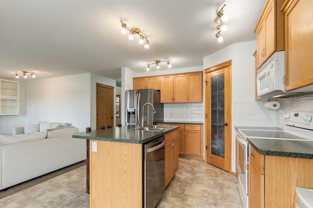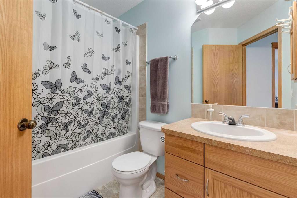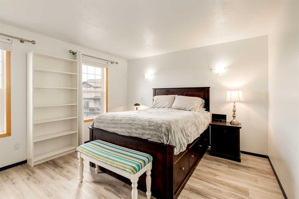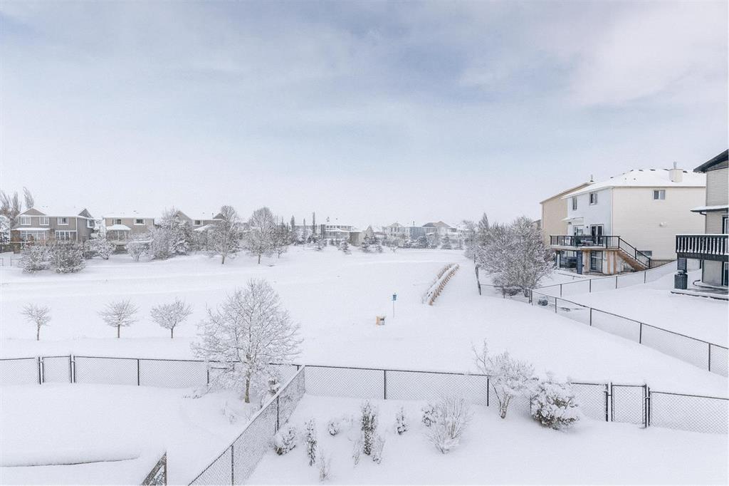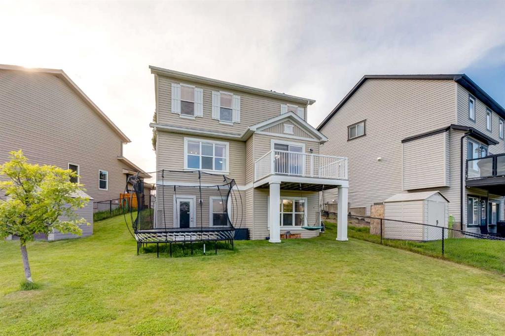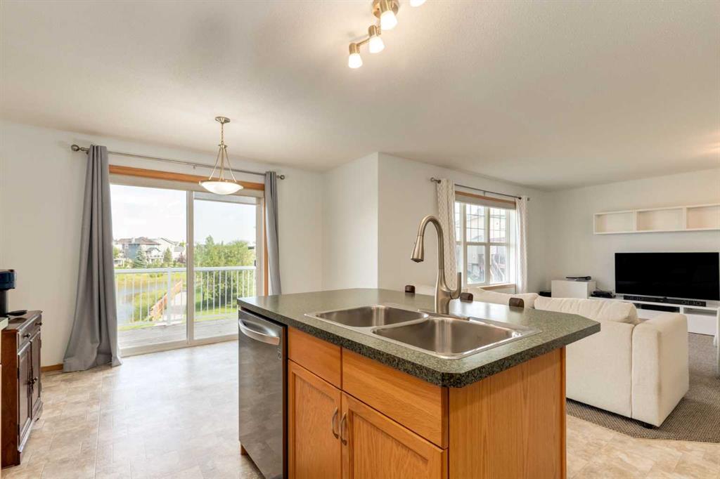 **Walkout Home Backing onto Pond & Pathways | Almost 2,300 Sq Ft of Living Space ** Welcome to this beautifully situated 2-storey walkout home, tucked away in a quiet cul-de-sac in Airdrie. Set on a spacious pie-shaped lot, this property backs onto serene walking paths and a picturesque pond—perfect for those who love peaceful views and easy outdoor access. With almost 2,300 sq ft of well-designed living space, the main floor features an open-concept layout. The family room offers a large picture window that perfectly frames the pond view. The kitchen provides ample cabinetry, generous counter space, and a sunny dining nook. Step outside to the upper deck where you’ll enjoy tranquil morning sunrises over the water. The main floor also has a convenient home office OR could be a guest bedroom and a 2-piece bathroom completes the main level. Upstairs, you’ll find three well-sized bedrooms, including a spacious primary suite with a walk-in closet and a 3-piece ensuite featuring a relaxing soaker tub. A full 4-piece bath serves the two additional bedrooms. The fully developed walkout basement expands your living space with a large rec room/family area complete with a cozy fireplace, a 3-piece bathroom, and a designated laundry room. This home offers incredible value in a sought-after location—ideal for families, nature lovers, and anyone seeking a blend of comfort and convenience. Don’t miss your opportunity to view this gem. Book your showing today!