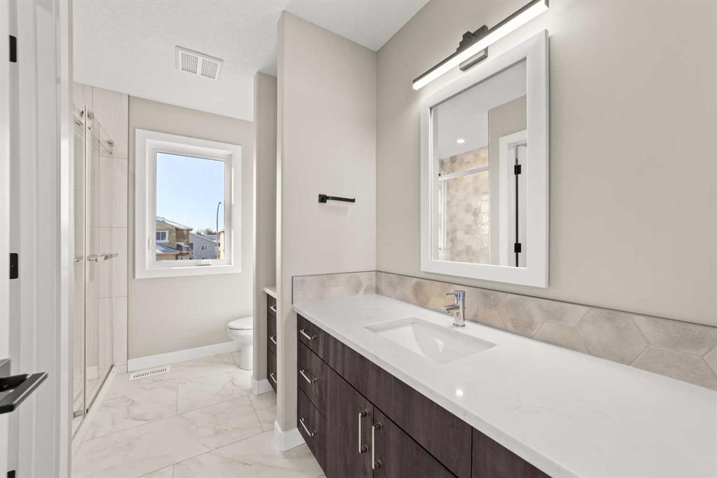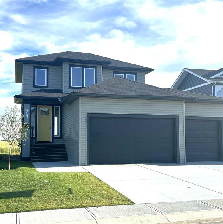 Welcome to this stunning new build, a thoughtfully designed two-storey home offering modern finishes and functional spaces. With three bedrooms, three bathrooms, and an unfinished basement ready for your personal touch, this home is perfect for families or those looking to customize their space. Step inside to find a bright and inviting kitchen featuring quartz countertops, a large pantry, and stainless-steel appliances—including a fridge, stove, microwave, and dishwasher. A convenient two-piece bathroom is located just off the living room, perfect for guests. The home is finished with luxury vinyl plank, ceramic tile, and plush carpet throughout for a stylish and comfortable feel. The mudroom/laundry room, located just off the garage entrance, adds functionality and storage, making everyday life easier. Upstairs, the primary suite boasts a spacious walk-in closet and a private three-piece ensuite. Two additional bedrooms, along with a four-piece bathroom, complete the upper level. The triple attached garage is a standout feature, offering plenty of space for vehicles and storage, with overhead heat for added comfort. The unfinished basement, with 9-foot ceilings and in-floor heat roughed in, is ready for your vision—whether it’s a recreation room, extra bedrooms, or a home gym. Outside, the front yard is landscaped with a tree, while the backyard is graded with black dirt and backs onto a proposed school site , offering a great future location for families.