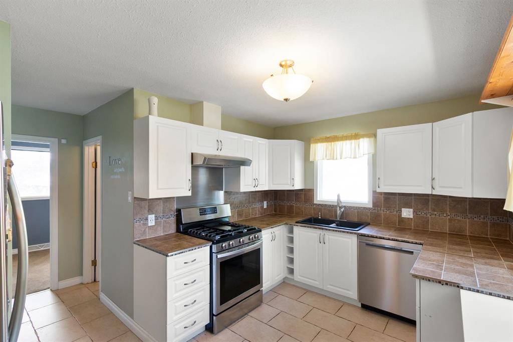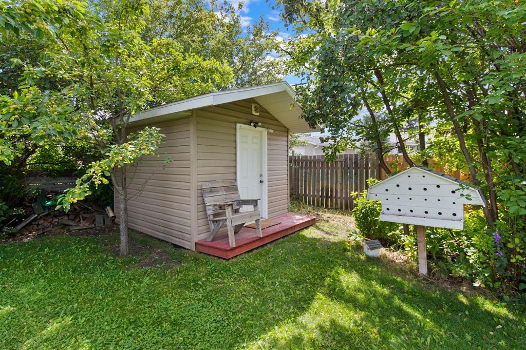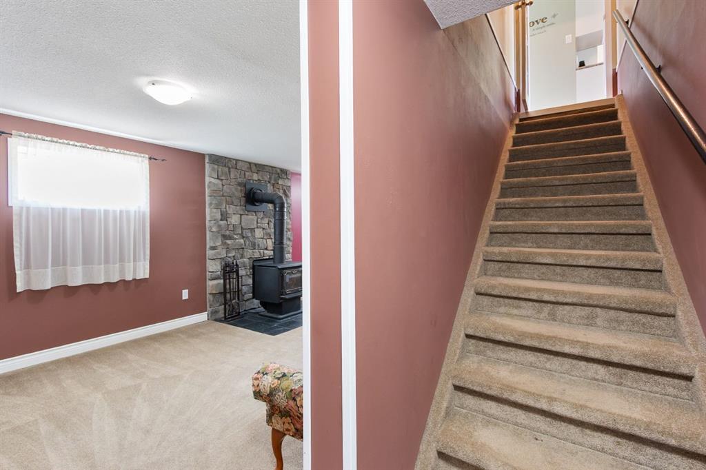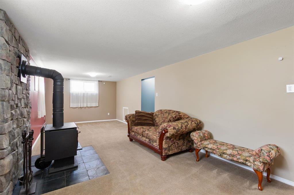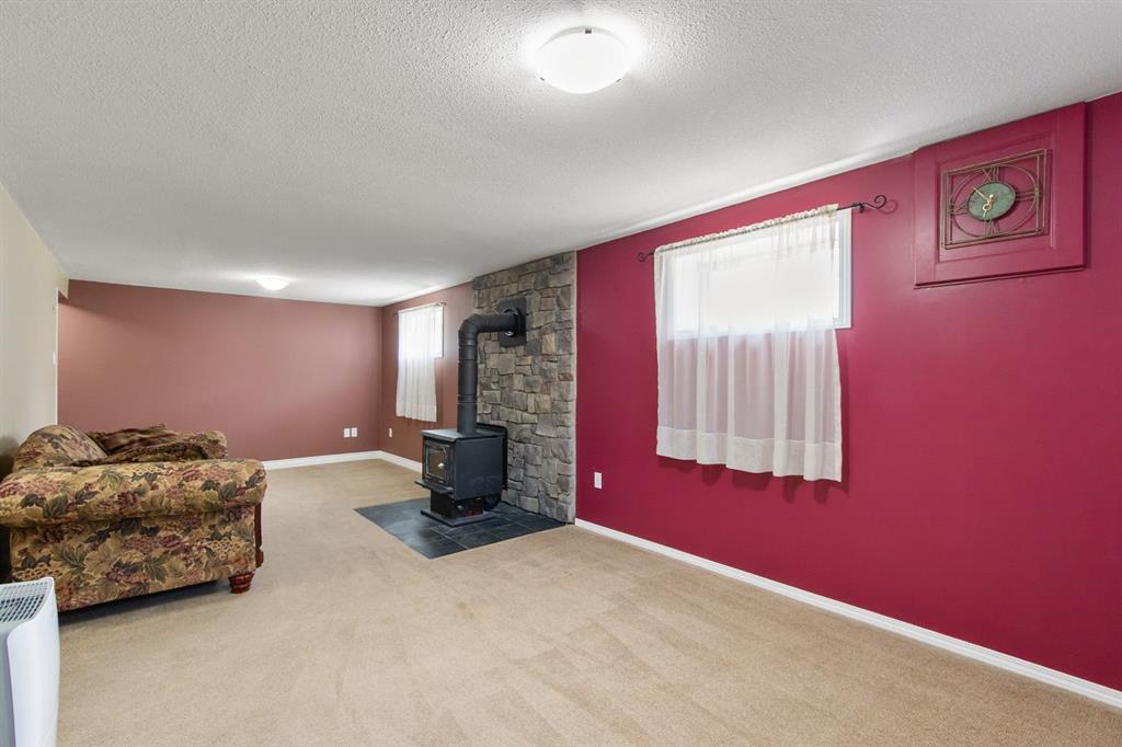 Beautifully Updated 2+2 Bedroom Bungalow in Prime Location! Well-maintained bungalow featuring numerous upgrades over the past 12 years, including a new kitchen, updated flooring, countertops, paint, and some new windows. Bright and functional main floor with two bedrooms and a modern kitchen with a gas stove. Fully developed basement includes a large family room featuring a wood burning stove, one bedroom, 3 pc bathroom with a huge shower, and windows that meet egress requirements. 4th bedroom in the basement - currently set up as walk-in closet. Furnace, hot water on demand, sump pump are also updated. Fenced rear yard is private and includes room for an RV. Double detached garage is heated (propane - which could easily be converted to gas) Additional updates include 2024 garage shingles replaced and shed added for extra storage. Situated on a quiet street, close to schools and amenities, this home offers excellent value for families or investors. Call your favourite realtor for a private showing today.