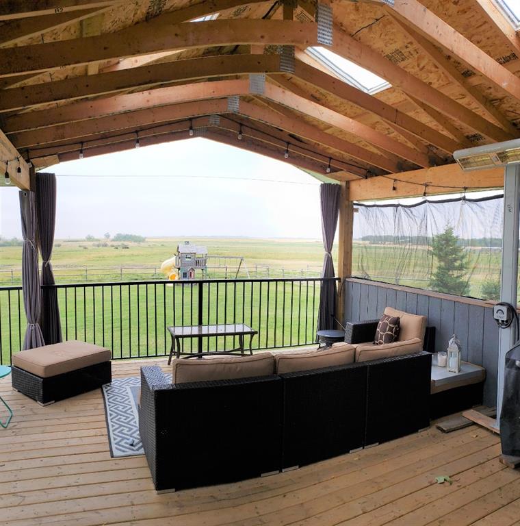 40 Acres on pavement INSIDE northeast Airdrie City Limits, north of the East Points Area Structure Plan and across from 185 acre Airdrie Regional Park and Croxford Estates. Permitted uses, Dwelling Garden Suite and other Permitted + Discretionary uses. Opportunity knocks! Panoramic West Views! 660 foot frontage onto paved Range Road 291 (future Airdrie main route). Ideal for home business (by permit), mini ranch or variety of permitted Garden Suite and discretionary uses. Features a 1,505 sq.ft. fully developed bungalow with heated oversize attached garage. Bright open plan with a spacious great room with vaulted ceiling and fireplace, formal dining area, and roomy kitchen with nook and covered deck access. Lower level is fully developed with bedroom, full bath, large den, and spacious living area. Includes major appliances and window coverings. Ideal for animals or home business with detached heated 28' x 30' shop with box stalls and 10' x 25' storage shop. Highway 2 north, east on Highway 567, north on paved Range Road 291. Cabin in back trees also for sale. GST may be applicable.