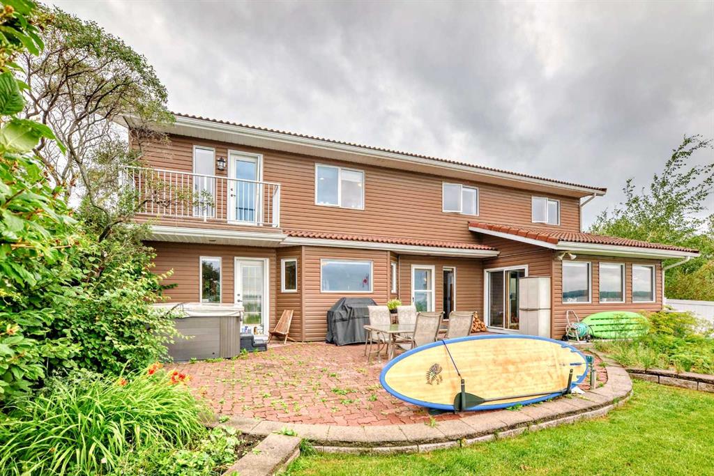 Lakefront living at its finest! This 2 owner home is on a large pie shaped lot with 62 ft of lake frontage in the beautiful SV of Norglenwold. It has unparalleled 180 degree stunning views of the lake with spectacular sunrises. The gentle slope to the water provides easy access for kids and the elderly, and also for all of your lake activities. Situated on a huge lot( 62 x 195 x 107 x 195), there is plenty of room for entertaining, gardening, and your favorite outdoor games like volleyball, badminton and cornhole. This well built home features clay tile roof, brick driveway and patio, lakeview hot tub, upper floor laundry, bonus room and flex room above the garage, granite countertops, solid oak doors, and a huge primary bedroom with 2 walk-in closets. With 5 large bedrooms, there is plenty of room for family and friends to visit. Cozy up to the wood burning stove in the winter after you spend the day ice fishing, snowmobiling, or skating on the lake. The main floor plan offers a huge 2nd family room with the flexibility to offer a games room, music room, home office, and is awesome for Christmas or family gatherings! This property is on its own well with ample water. It is tied into the Town of Sylvan wastewater with the affordable cost of $450/year! You will also find the taxes much less than in the town itself but this home offers walking and biking into the amenities of Sylvan Lake. The large heated garage is 39 ft wide and offers plenty of room inside for all your toys!