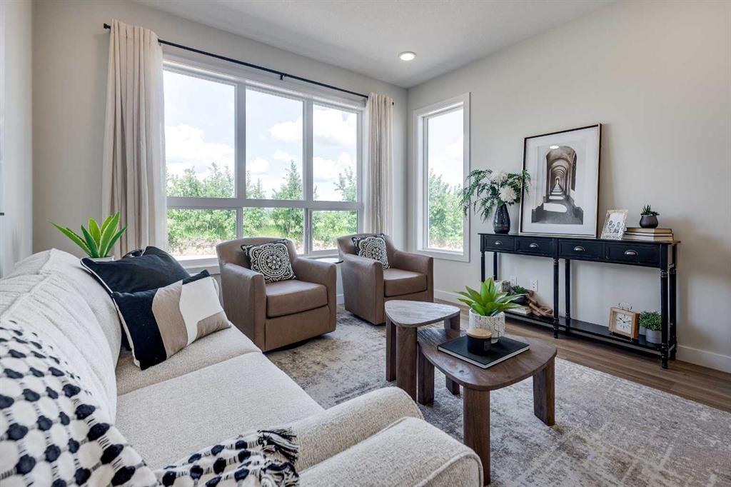 Start planning now, ready for a spring 2026 possession, brand new fully finished bungalow in Sylvan Lake's sought-after Grayhawk community! This 3 bedroom/3 bathroom home with attached garage offers effortless luxury and comfort, ideal for downsizers. Featuring an open-concept layout with 9-foot ceilings and stylish vinyl plank flooring throughout living room, dining room and hallway. It boasts a light-filled living room with views to the west, overlooking greenspace/future school site. The chef-inspired kitchen includes a center island, corner pantry, soft-close cabinets, under-cabinet lighting, a granite sink, and upgraded stainless steel appliances. The serene primary bedroom offers plush carpeting, a walk-in closet, and a spa-like ensuite with double sinks and a luxurious shower with glass door. Main floor laundry and handy powder room for guests. The basement with 9-foot ceilings offers a family room, 2 bedrooms, 4piece bathroom, lots of storage space. Additional features include a high-efficiency furnace, hot water tank, concrete front driveway and sidewalk, black dirt rear yard are included. Located in Grayhawk near all Sylvan Lake's amenities, this home offers easy access to recreation and nature trails. GST is included with a rebate to the builder, and a comprehensive new home warranty adds peace of mind. Taxes to be assessed. ****Under construction completion Spring 2026**Photos are from previous showhome similar but may not be exactly the same**