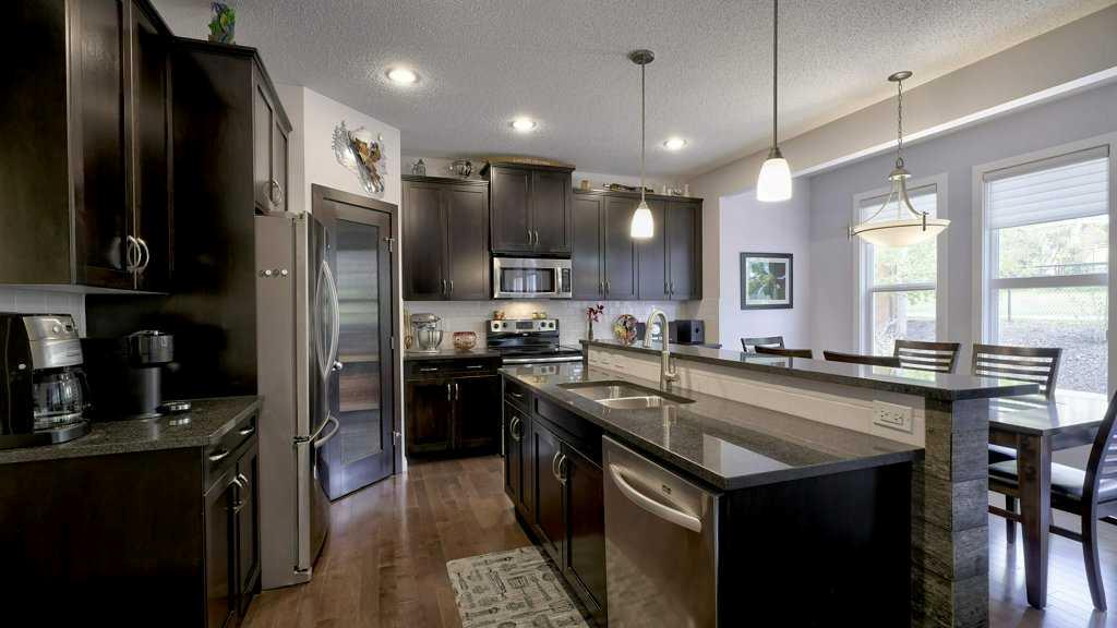 Discover the perfect blend of comfort, quality, and convenience with this remarkable family home designed to meet the dynamic needs of modern living. Meticulously maintained and move-in ready, this property showcases an outstanding level of care and attention to detail throughout. Situated in one of Cochrane’s most desirable neighborhoods, Heritage Hills, it enjoys a prime location in a charming keyhole cul-de-sac and backs onto interconnected walking paths, green spaces, and playground areas. The curb appeal of this home is undeniable, with a southwest-facing balcony perfectly positioned to offer breathtaking mountain views upon arrival. Boasting a large pie-shaped lot, the home provides over 1875 square feet of superb finishing above grade. Elegant hardwood flooring flows throughout the open-concept main floor, which features a sophisticated living room highlighted by huge windows and the elegant fireplace. The adjoining breakfast nook opens to a stunning Chef’s Kitchen, complete with extended cabinetry, a corner pantry, gleaming granite countertops, and a generously sized kitchen island that facilitates both food preparation and entertaining with ease. Stainless steel appliances further enhance the kitchen’s functionality and appeal. The thoughtful design continues to impress upstairs with three spacious bedrooms, a large bonus room that serves as an ideal additional family gathering space, and a second-floor balcony that offers unparalleled views of the surrounding mountains. The Primary bedroom is a private retreat with luxurious features such as a separate soaker tub, an oversized shower, and a substantial walk-in closet. The oversized heated double garage is fully insulated, drywalled, and thoughtfully equipped with built-in storage in the rafters. Professionally landscaped and featuring a gorgeous back deck, this home is perfectly suited for evening BBQs and gatherings with friends and family. The backyard, fully fenced and overlooking the green space, walking path, and nearby playground, completes the idyllic setting. Don’t miss this incredible opportunity to secure a family home that combines exceptional design, prime location, and move-in-ready convenience.